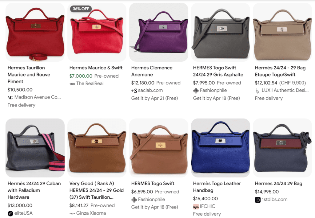 That said, like many other Hermès bags, the 24/24 has grown in popularity over the past few years, which has made it harder to get. So if you’re after a specific size or color, it might still take some patience.