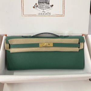 Before the Kelly Cut was introduced, Hermès released the Kelly Longue. It had a similar design concept but was taller and larger, which made it a bit bulky as a clutch.