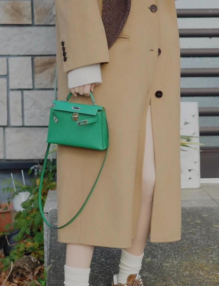 No physical hardware design: Elements like the clasp and lock are embossed into the leather, making the bag appear almost like a “shadow,” with Kelly’s classic outline defined only by subtle lines.