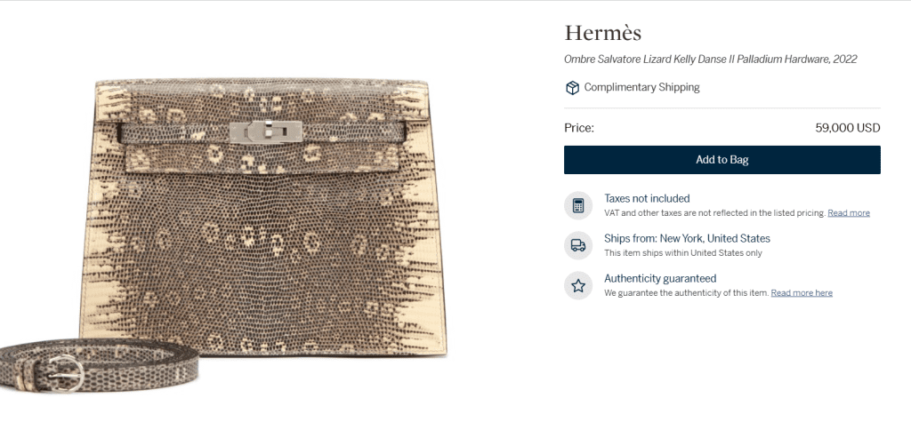 Prices can be 30% to 60% above retail for popular colors or exotic leathers like Ombre Lizard.