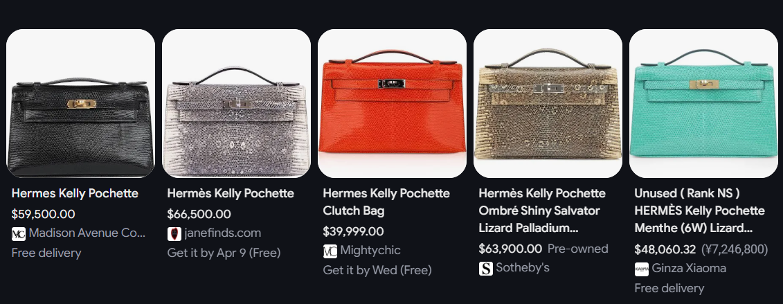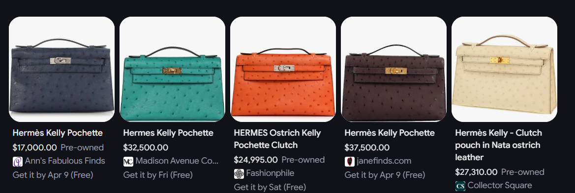 For Kelly Pochettes with minor wear, resale prices are usually around one to two times the retail price.