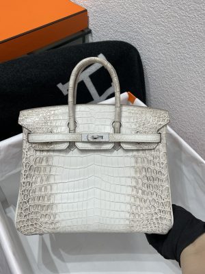 The Himalayan Birkin, a name that instantly evokes exclusivity, rarity, and luxury. This legendary Hermès bag is crafted from Niloticus crocodile skin, sourced from the Nile River region. Among all the exotic skins Hermès uses, Niloticus is prized for its larger, more symmetrical scales. More luxurious appearance than alligator or saltwater crocodile.