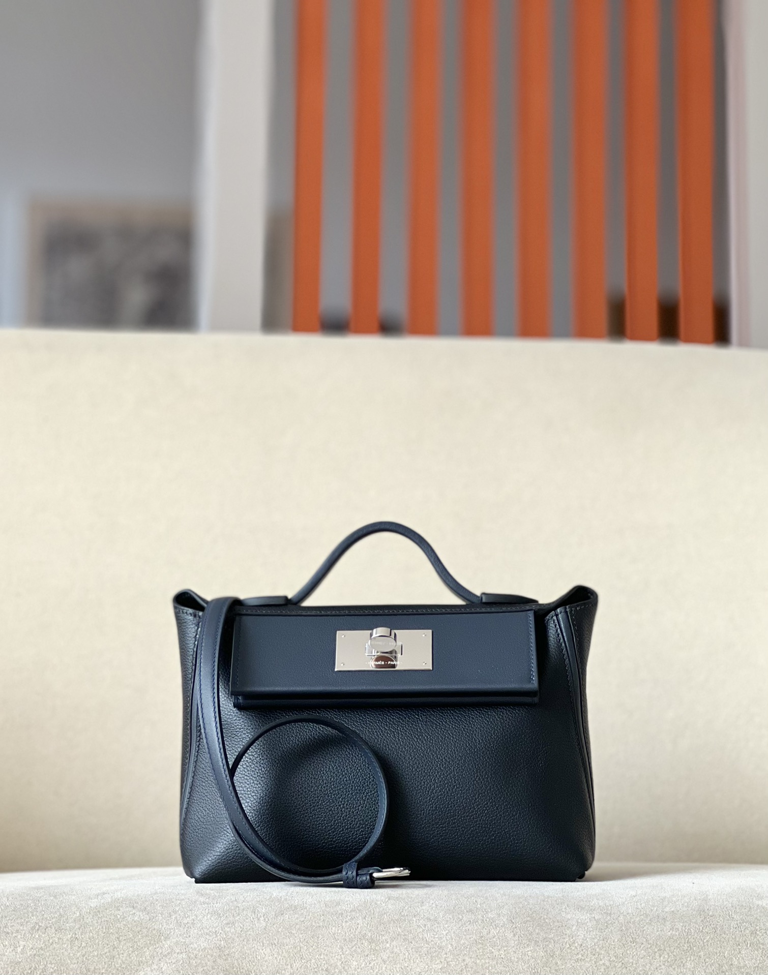 Includes ribbon, care booklet, , dust bag, paper bag and box.