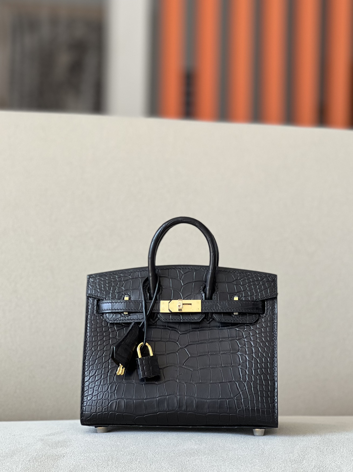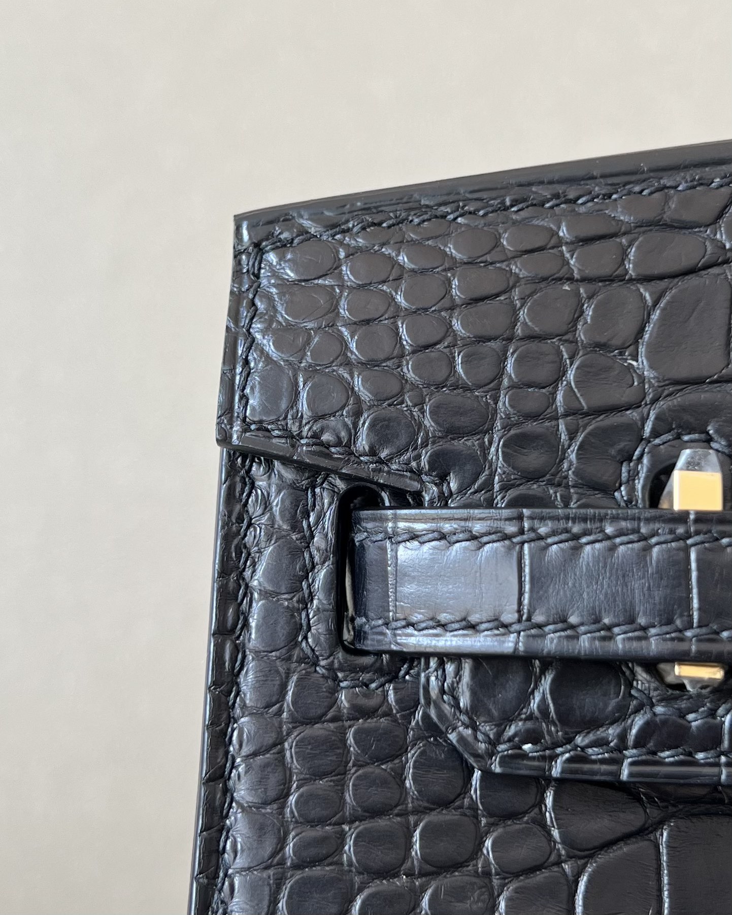 Birkin 20 Matte Alligator Crocodile Black Gold Hardware CK89