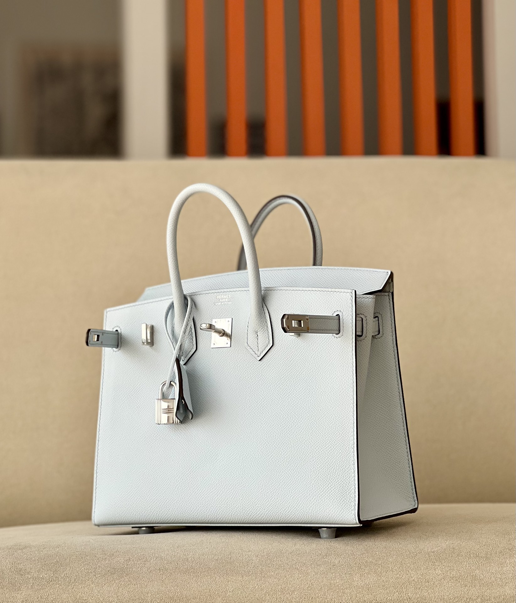 Birkin 25 Epsom Bleu Brume (T0) Palladium Hardware Sellier