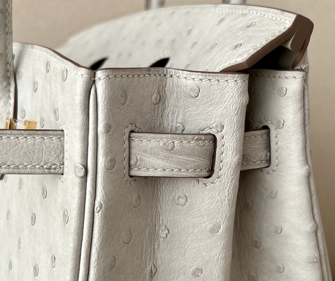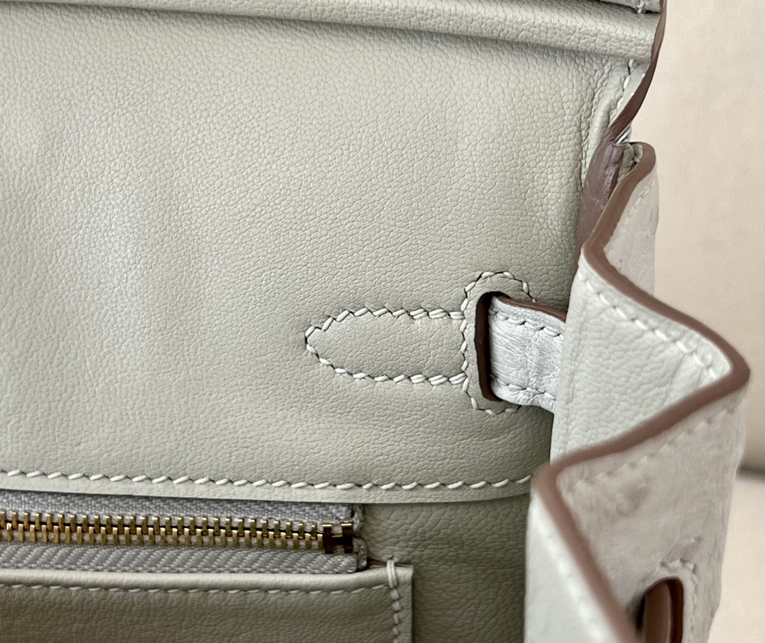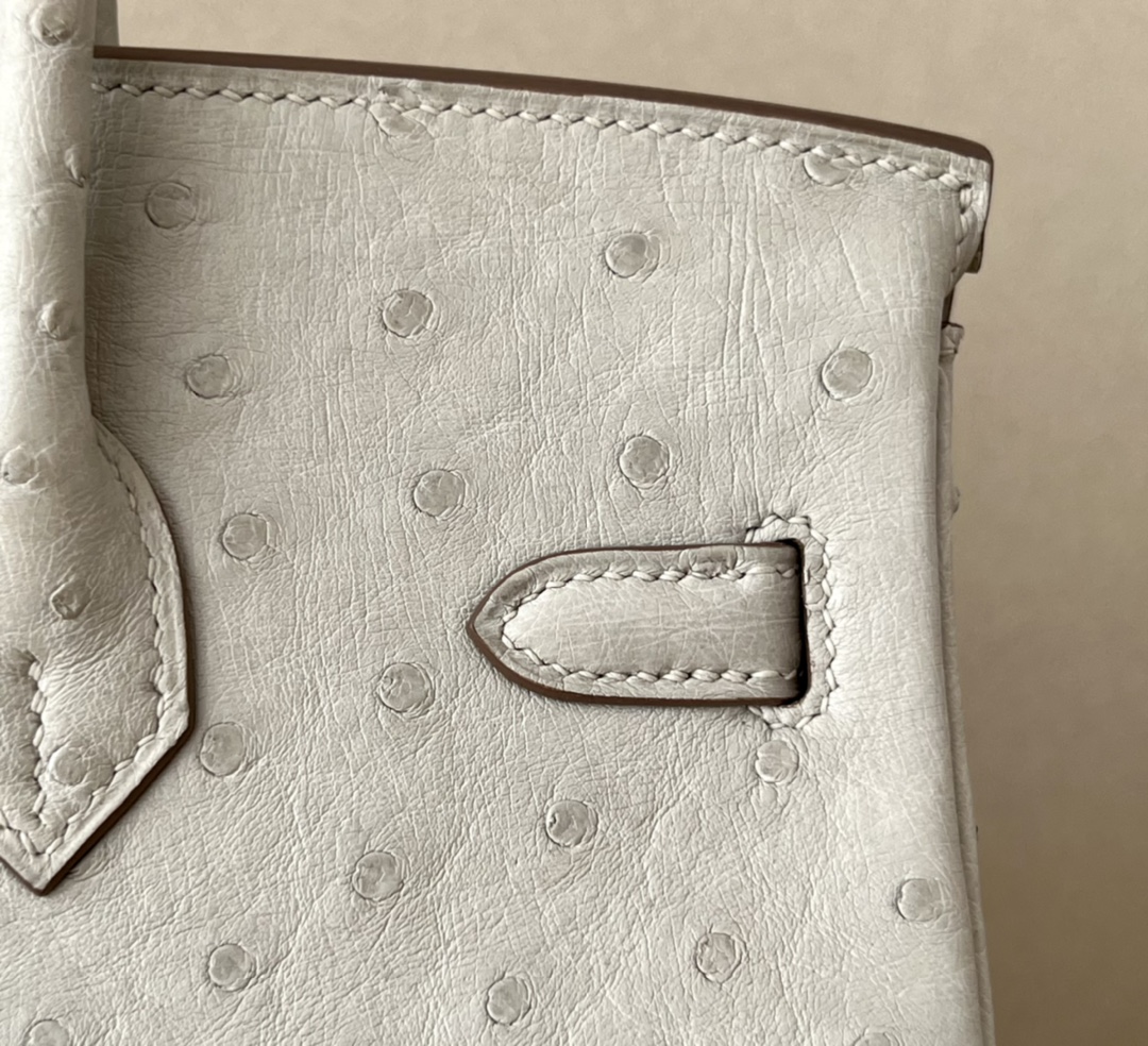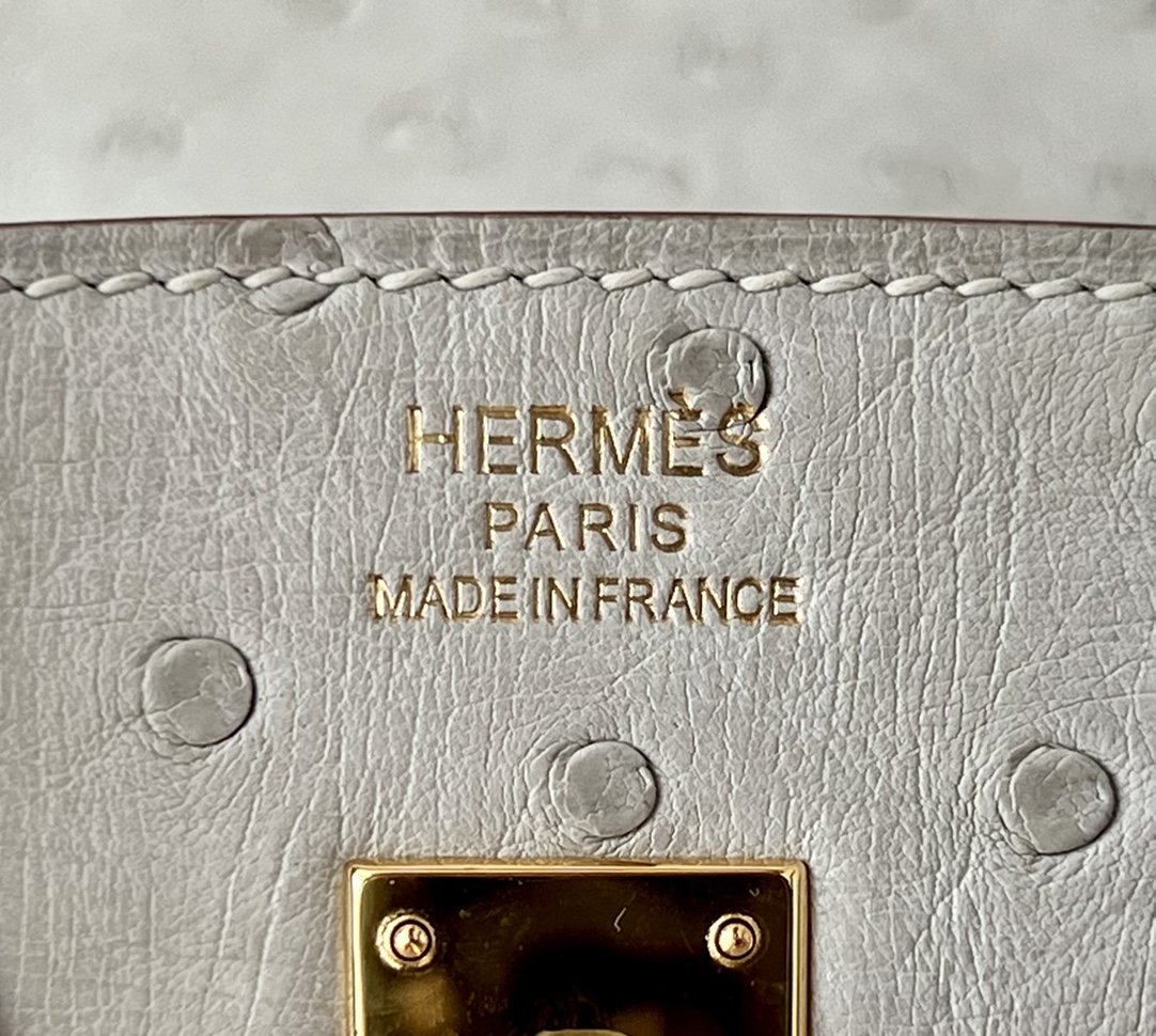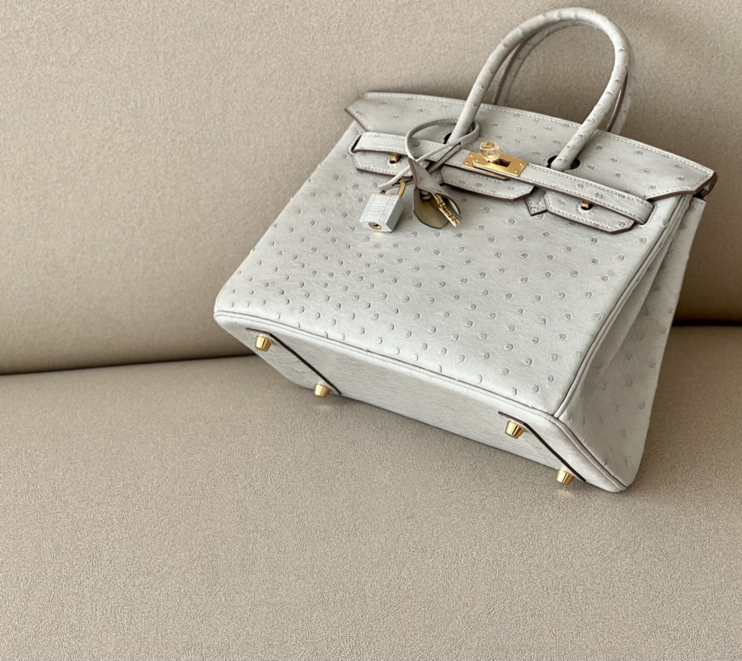 Birkin 25 Ostrich Gris Perle(80) Gold Hardware