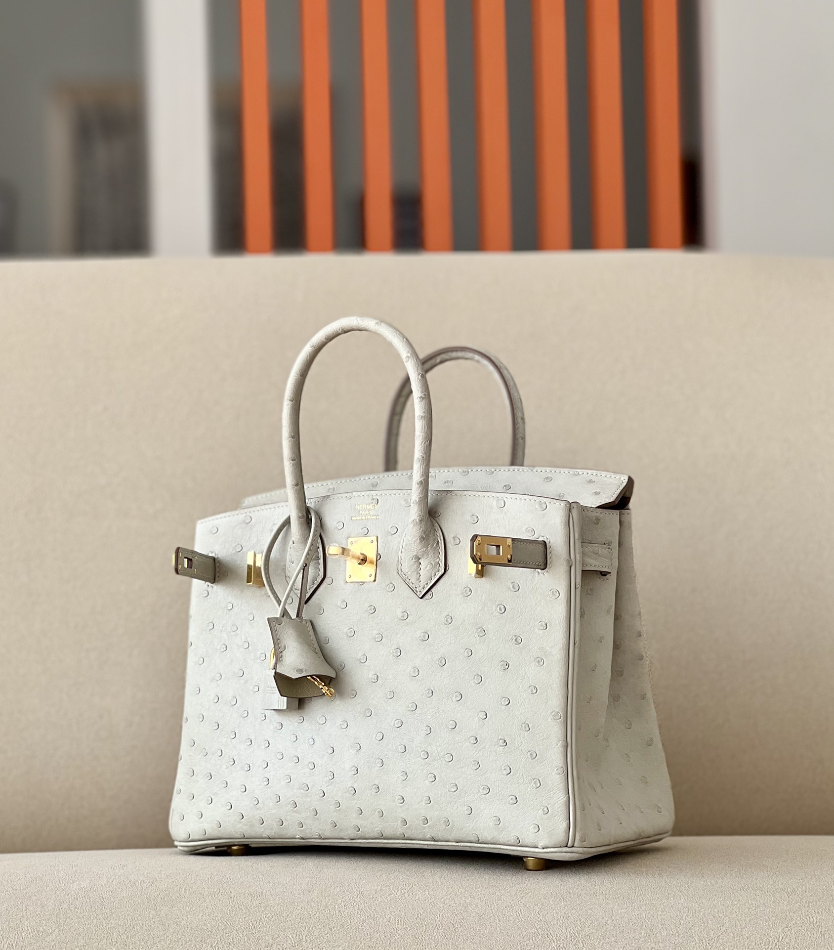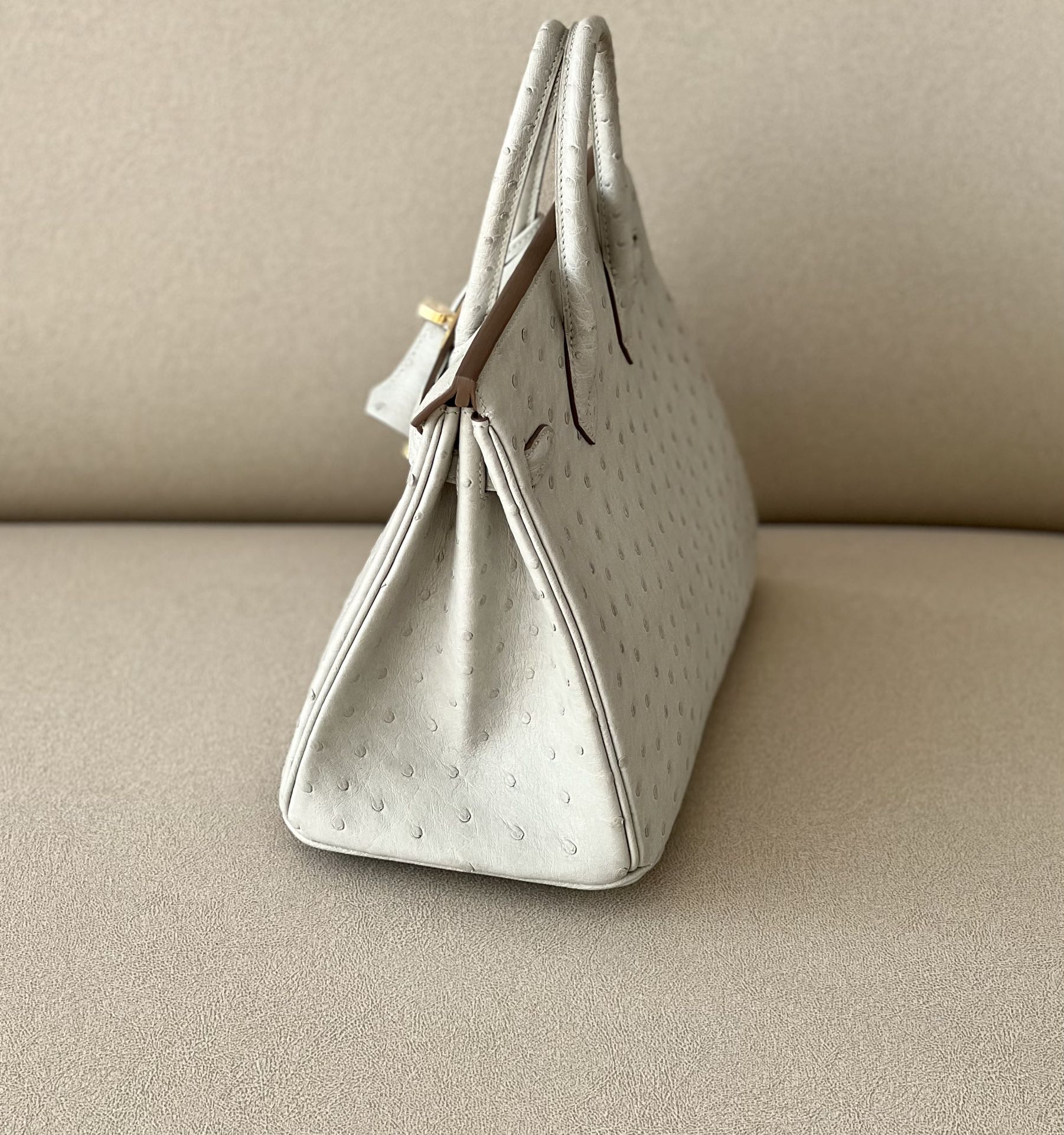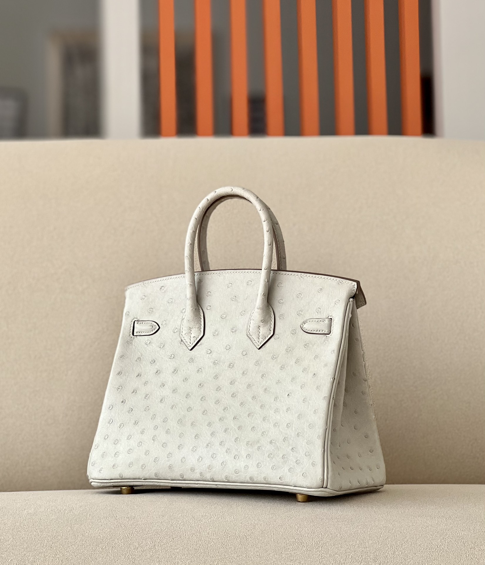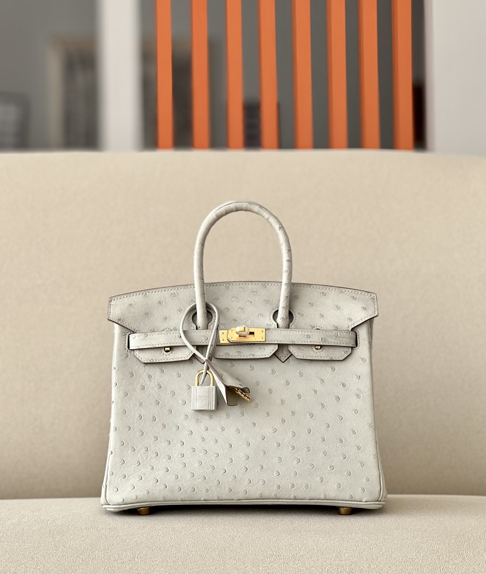 Birkin 25 Ostrich Gris Perle(80) Gold Hardware