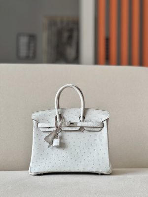 Birkin 25 Ostrich Gris Perle(80) Gold Hardware