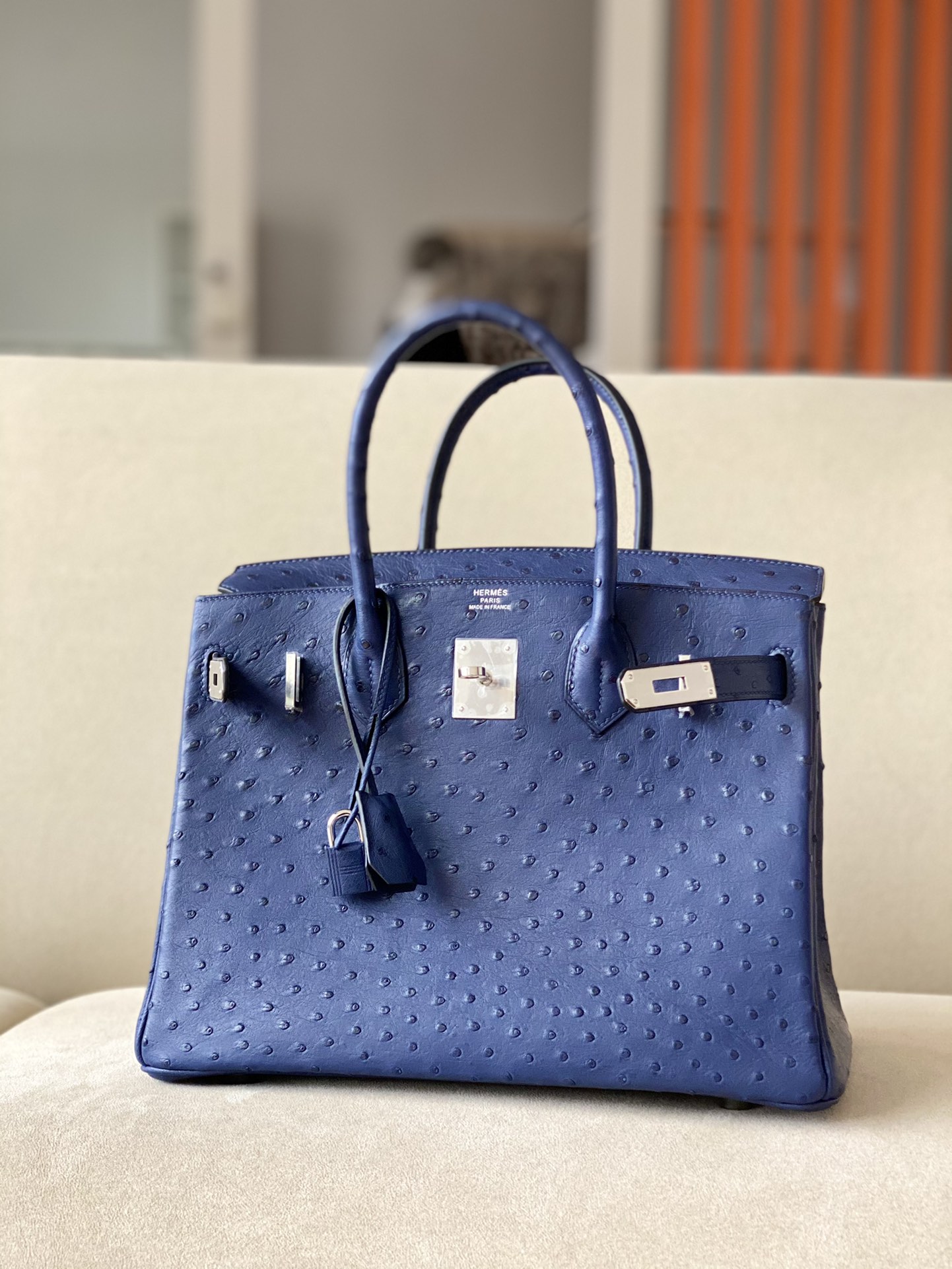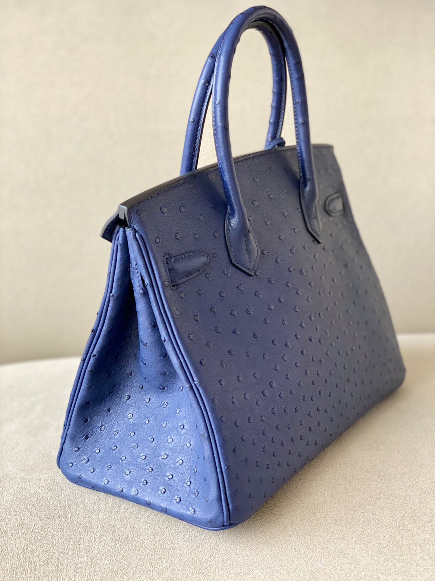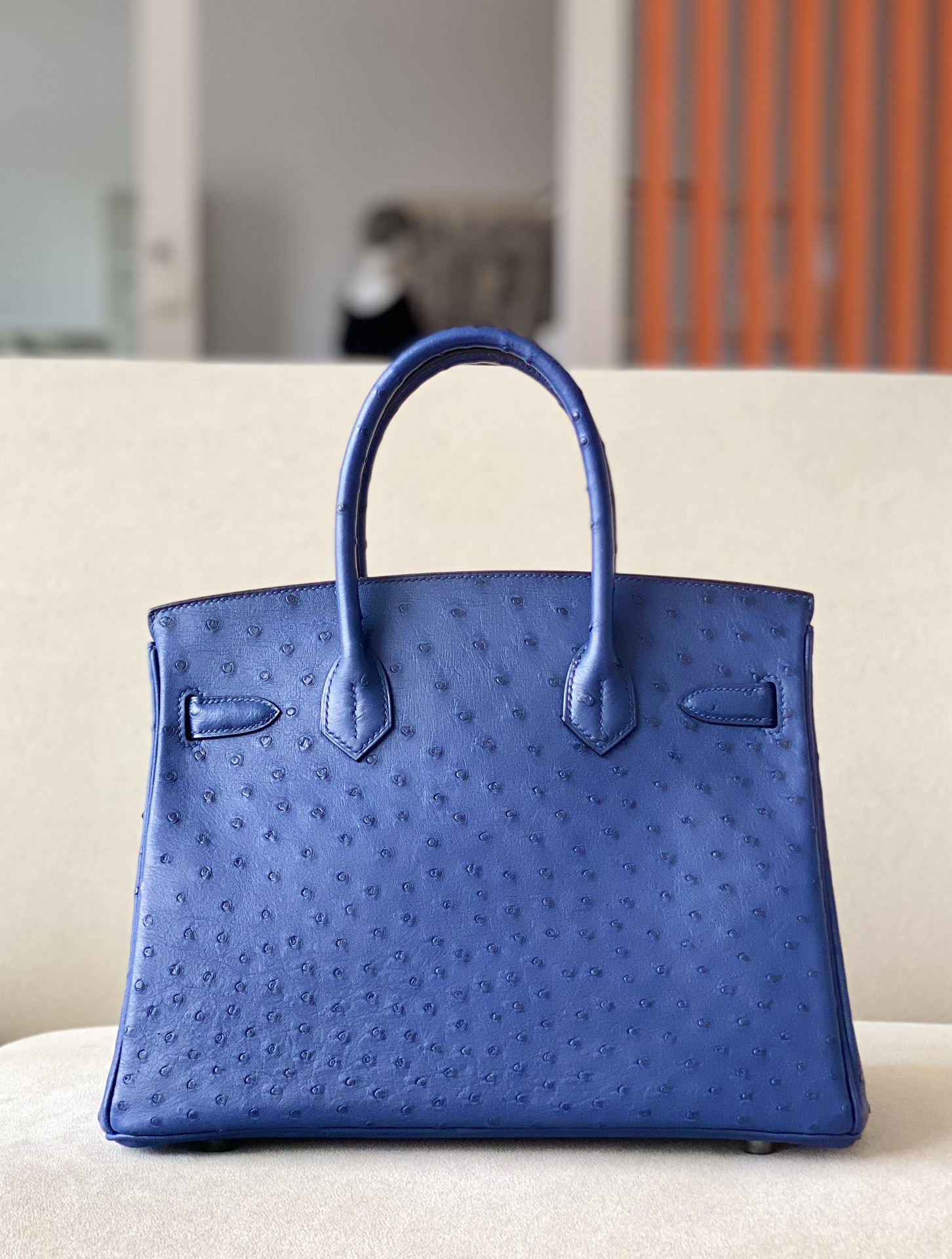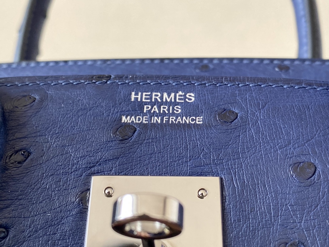Birkin 30 Ostrich Blue Iris (77) Palladium Hardware