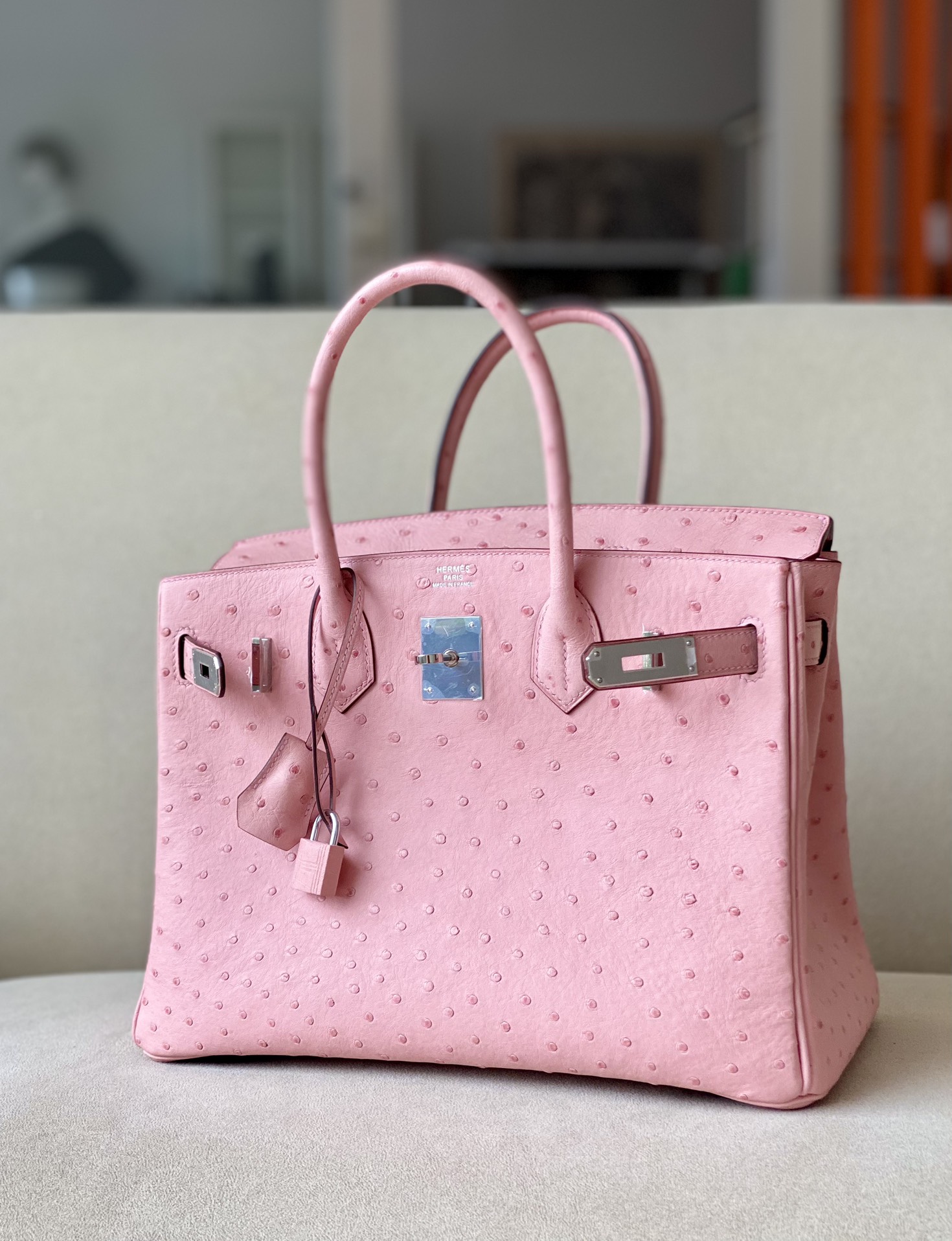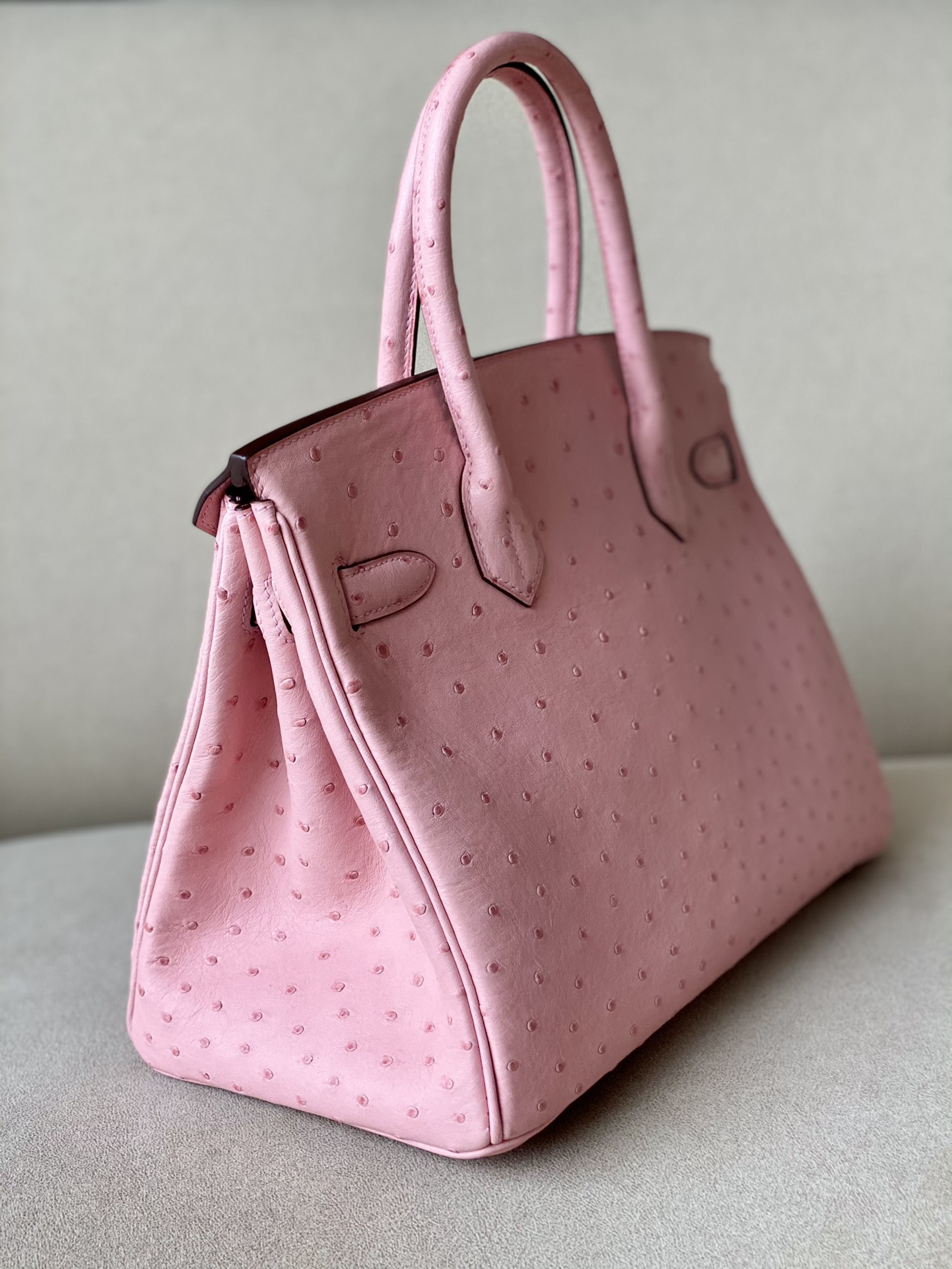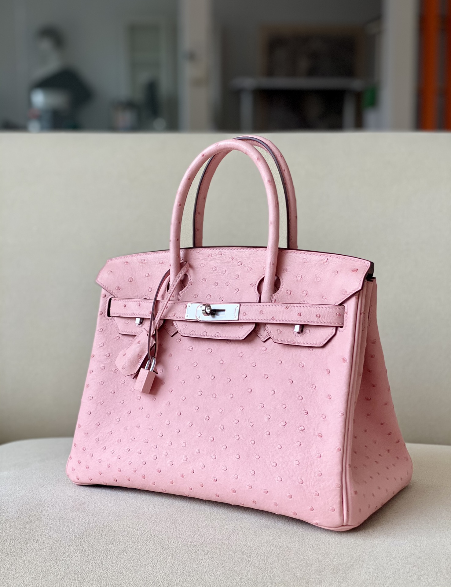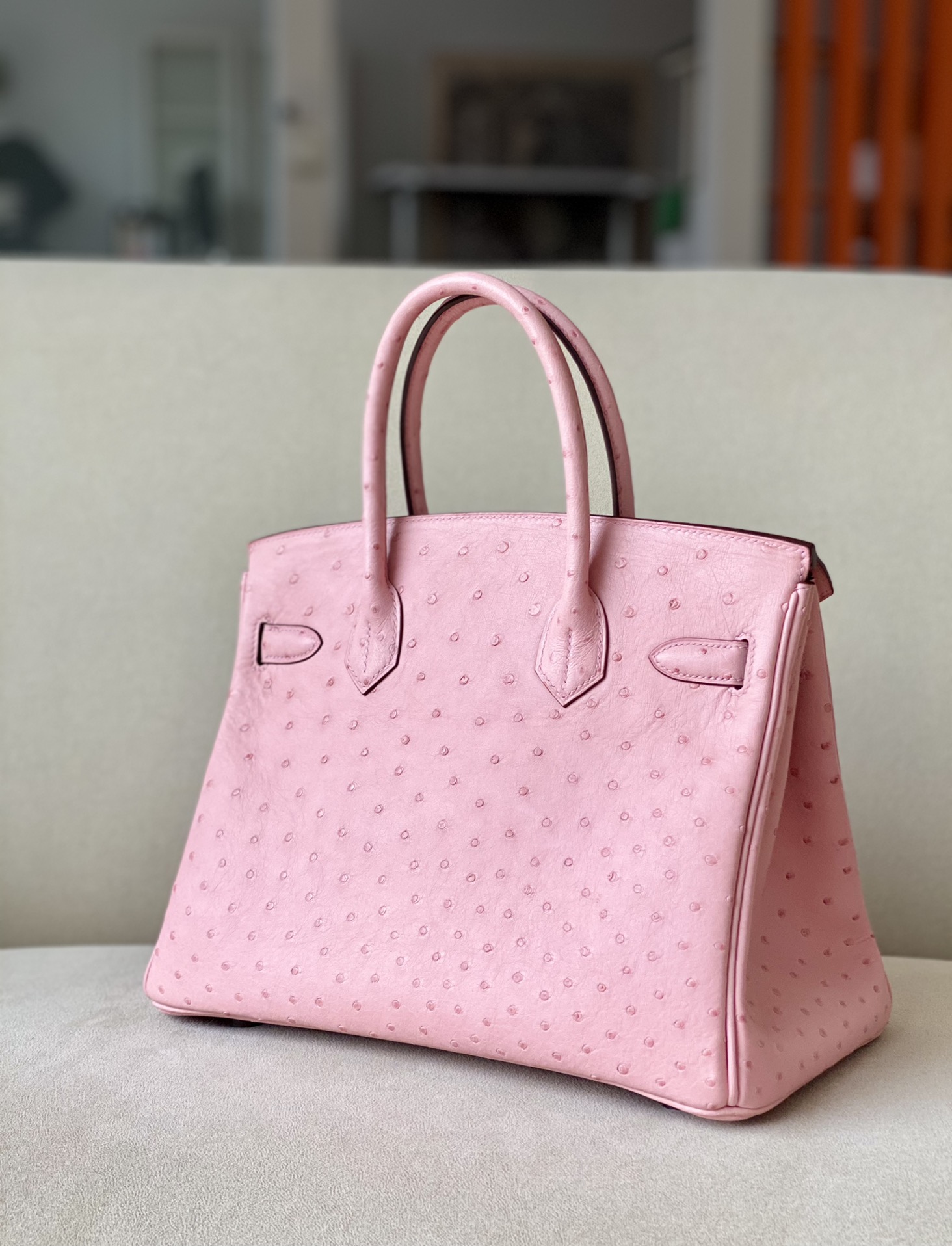 Birkin 30 Ostrich Rose Saiura(3Q) Palladium Hardware