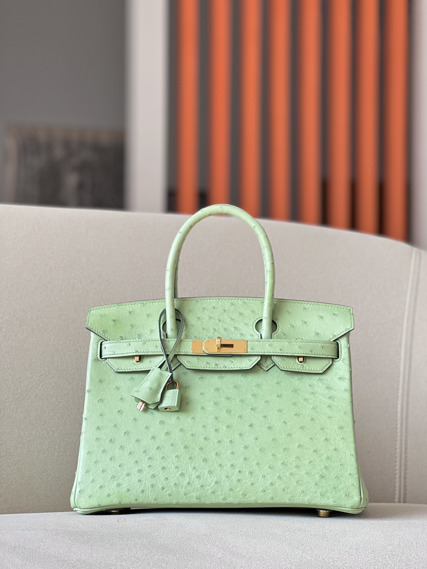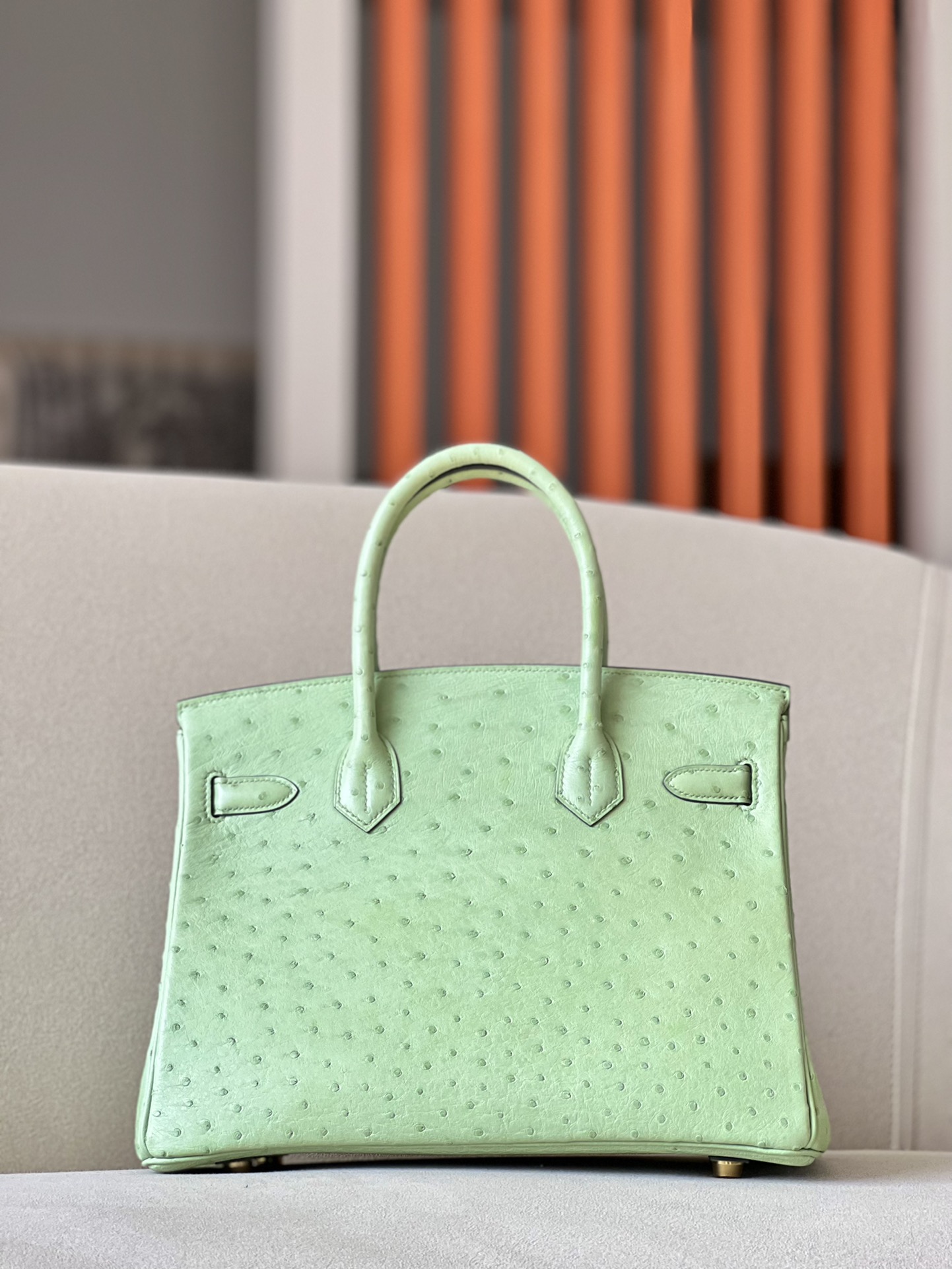 Birkin 30 Ostrich Vert Criquet (3I) Gold Hardware