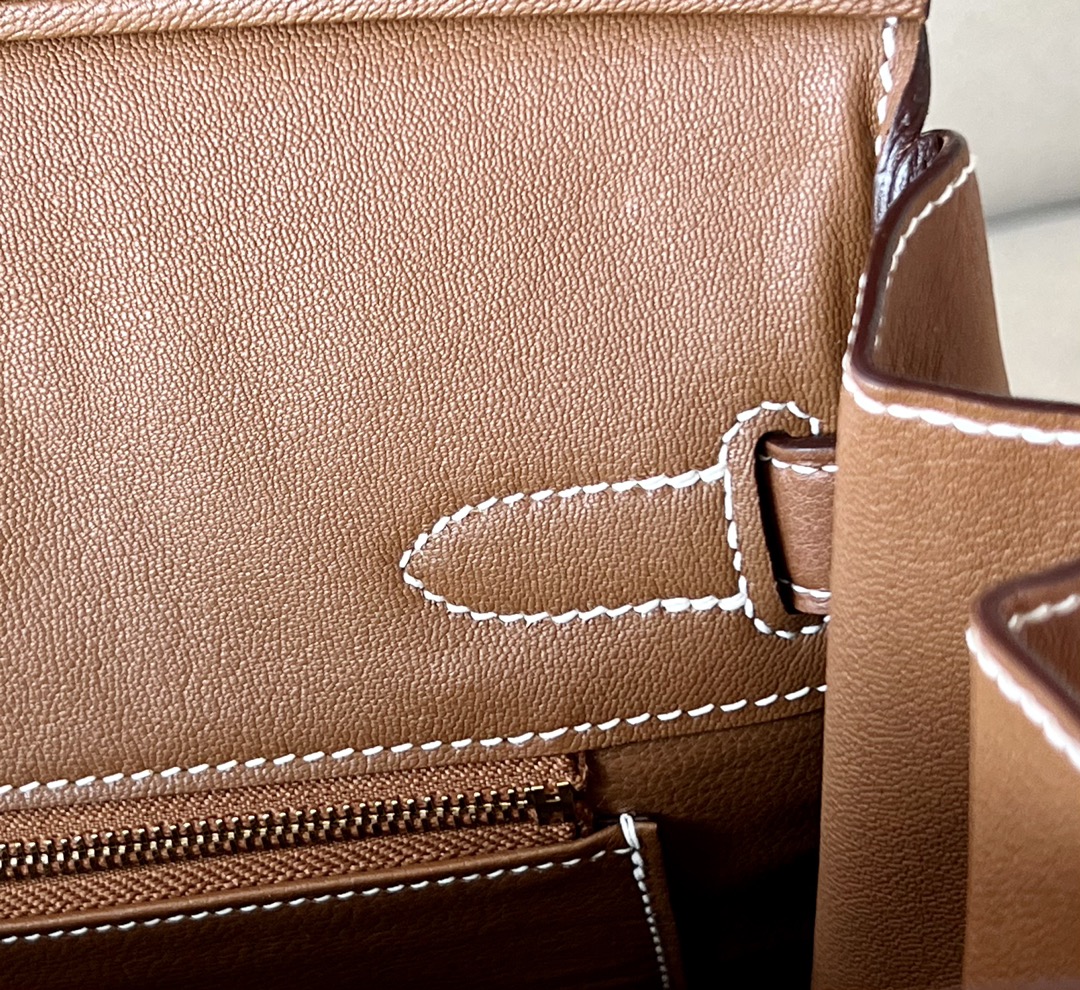 Includes lock, two keys, clochette, clochette dust bag, ribbon, care booklet, raincoat, felt protector, dust bag, and box