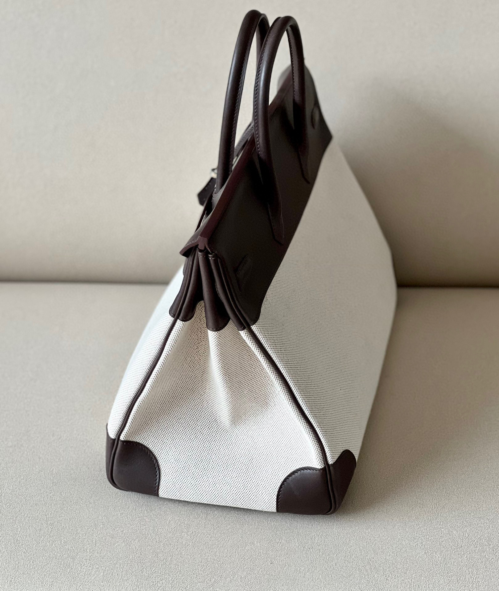Birkin HSS 40 Barenia and Canvas in Noir(89) Palladium hardware