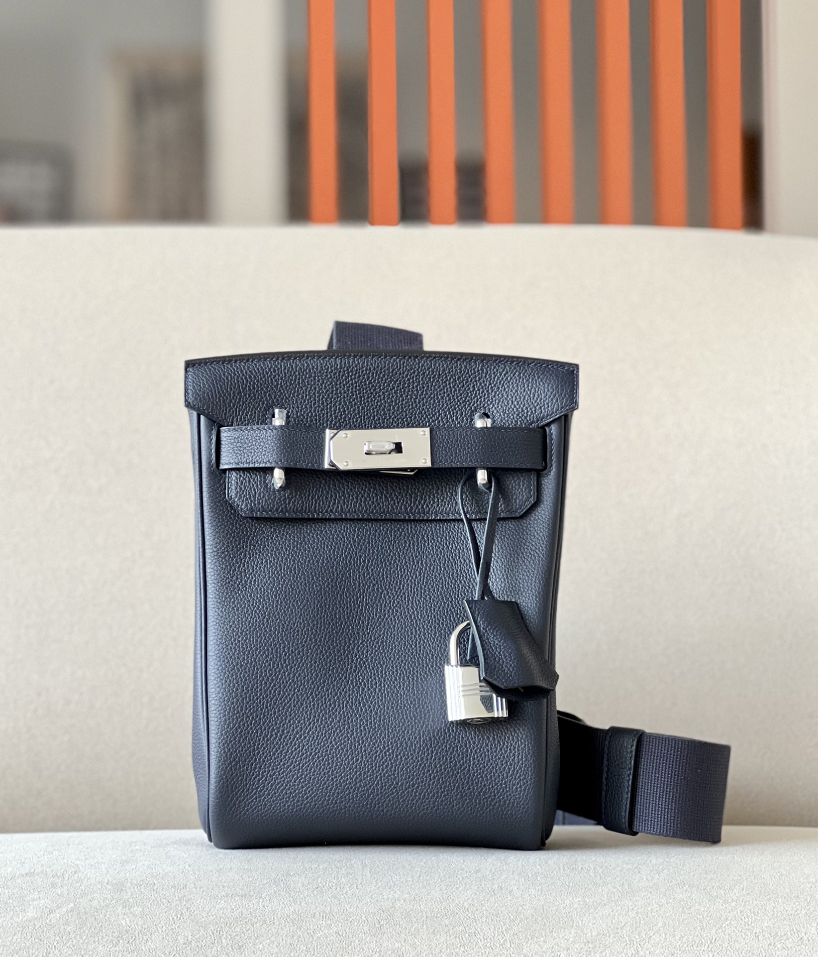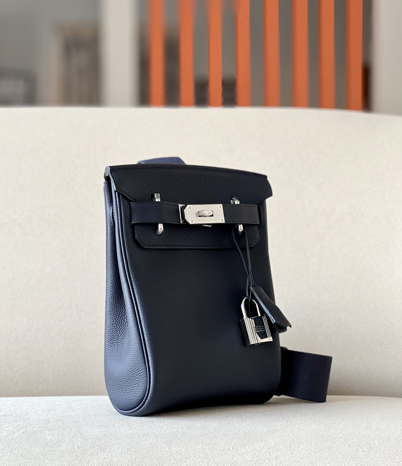 Includes ribbon, care booklet, dust bag, paper bag and box.