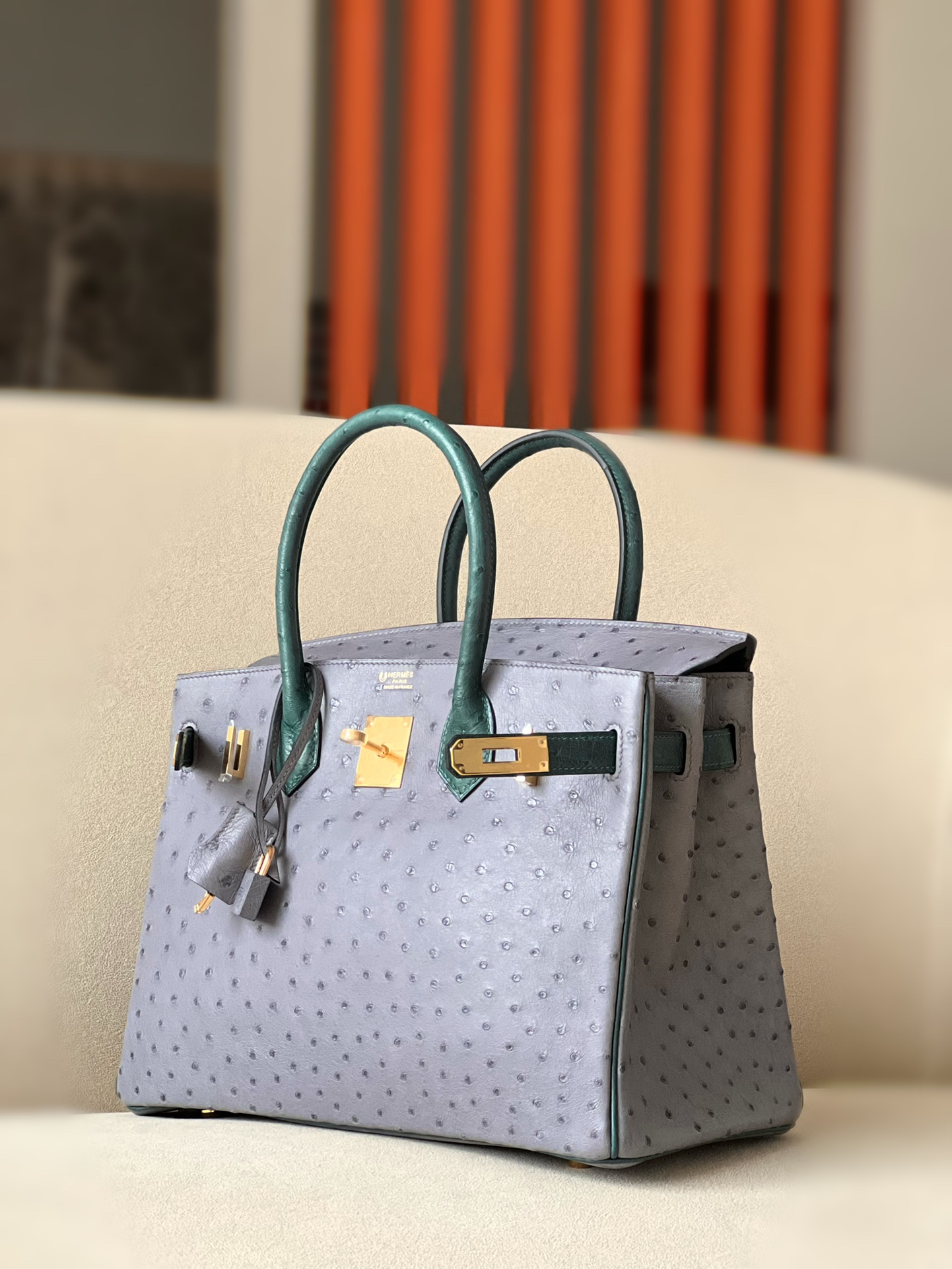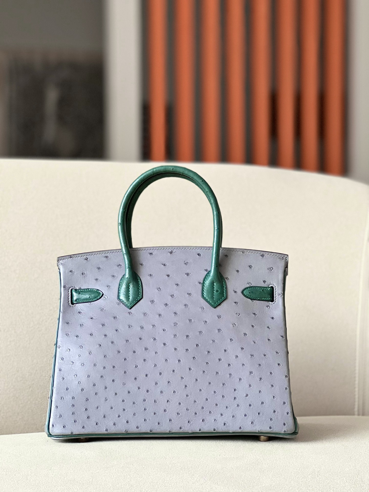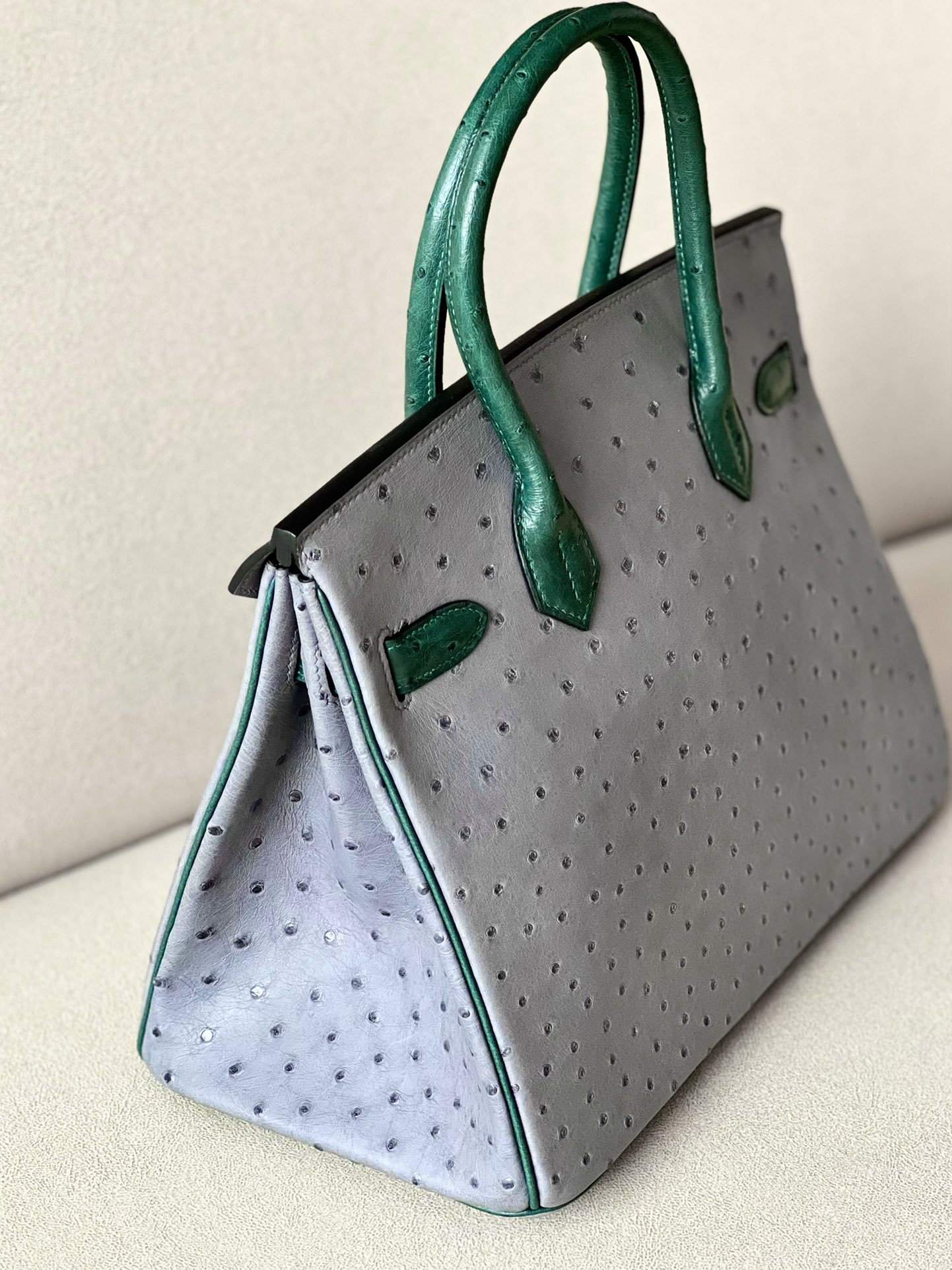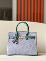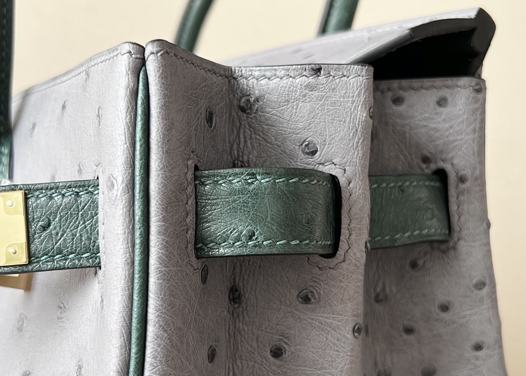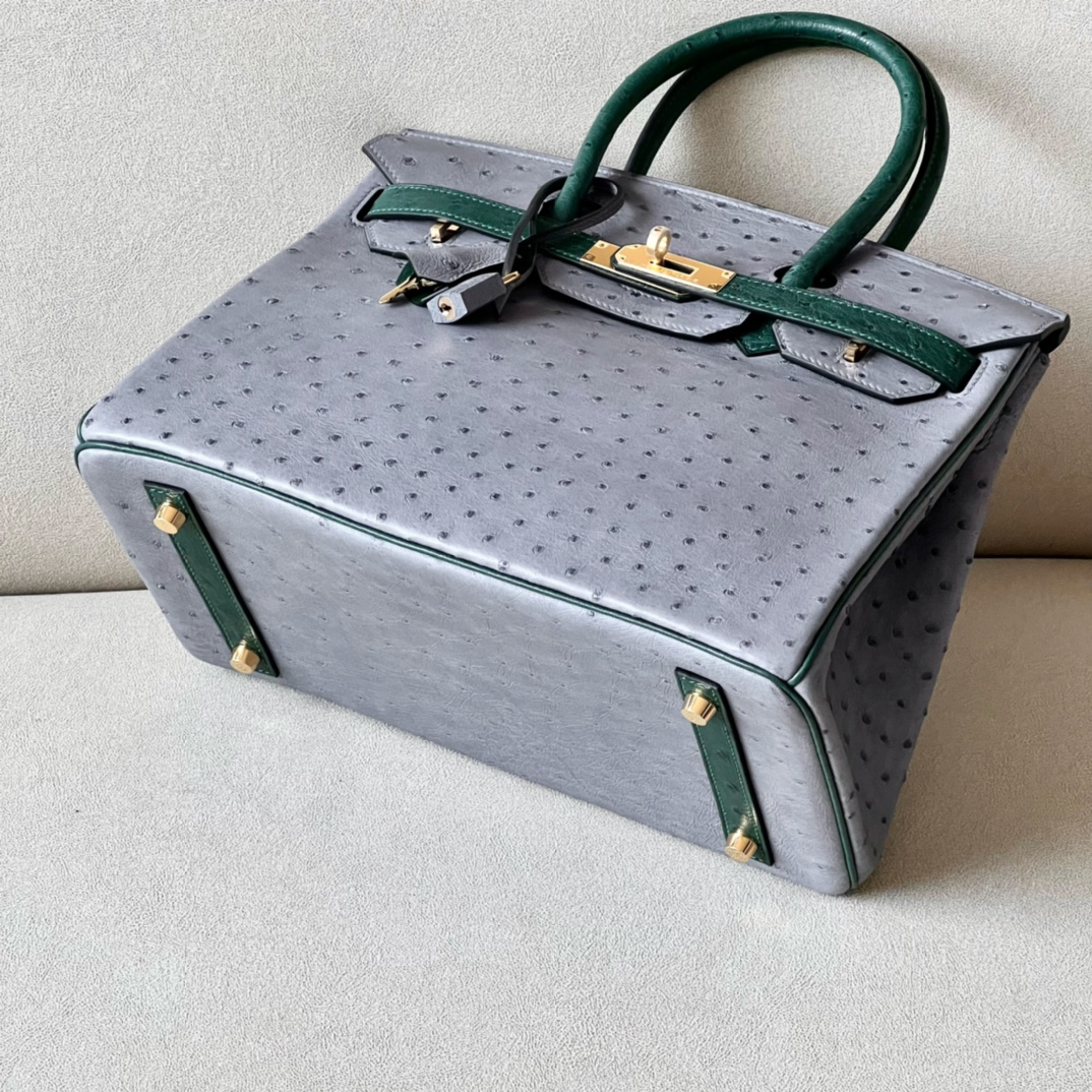 Birkin HSS 30 Ostrich Gris Agate(82) and Vert Titlen (1T) Gold Hardware