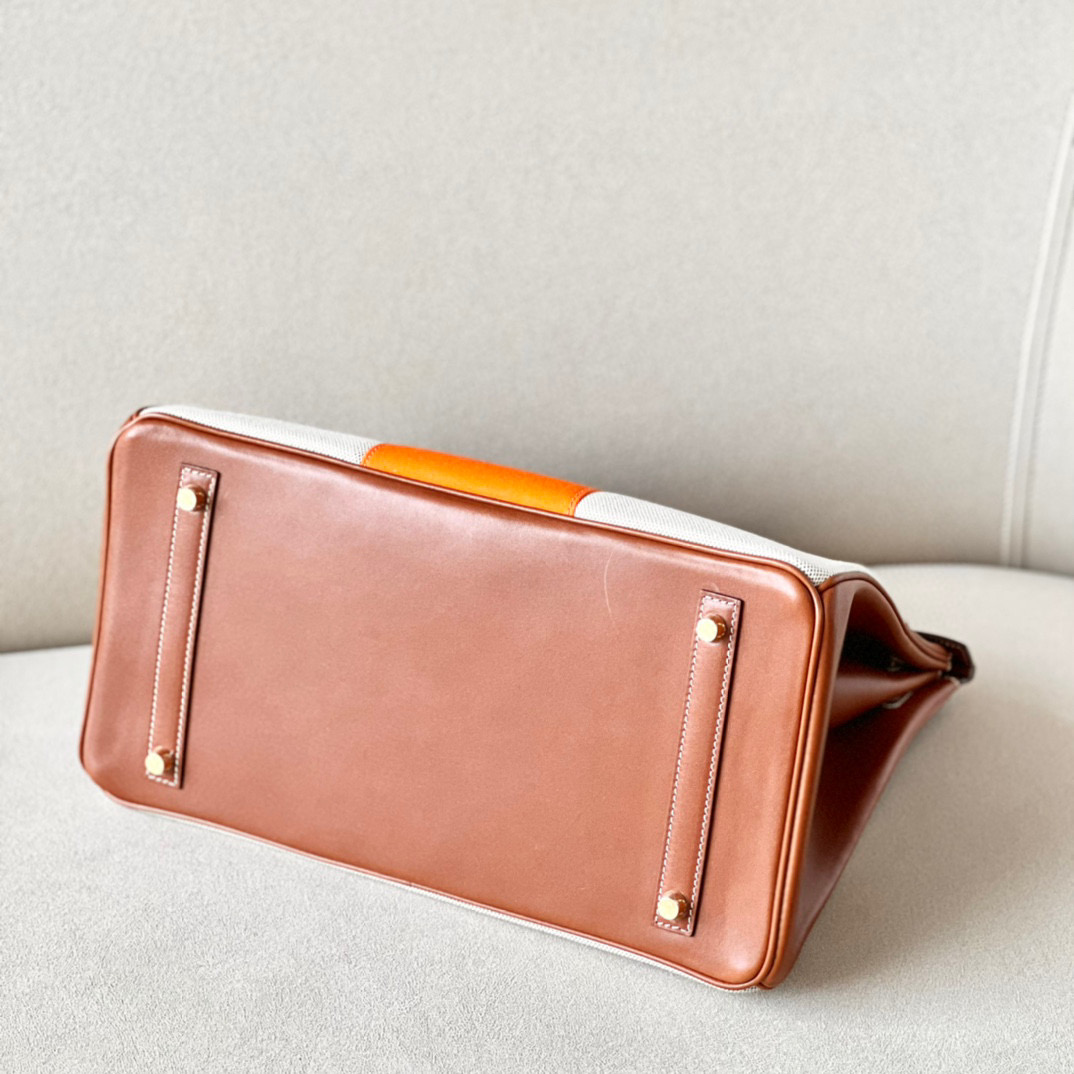 Birkin HSS 35 Barenia and Canvas Gold(37) Gold Hardware
