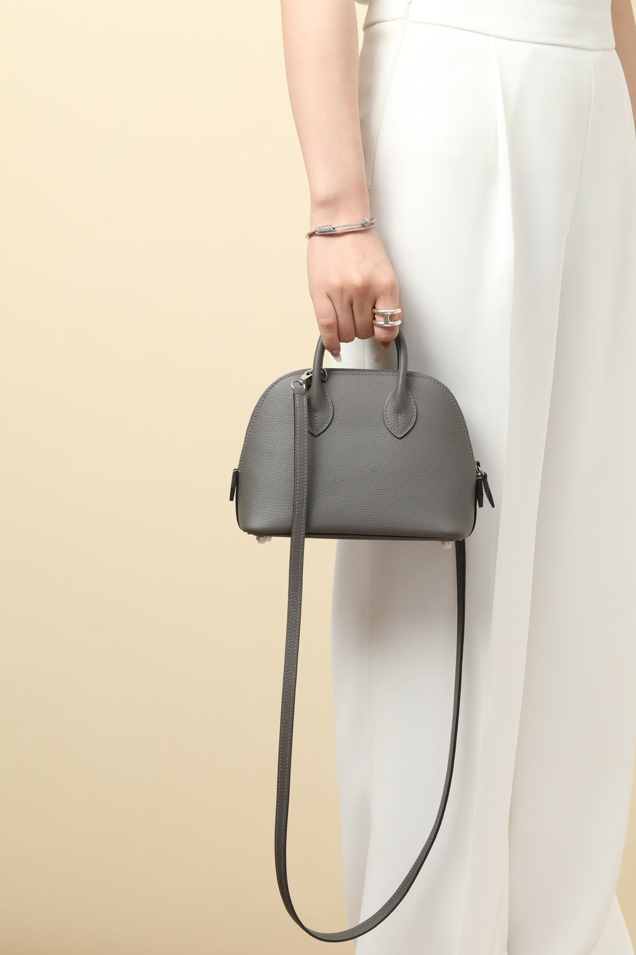 Includes strap, lock, two keys, clochette, clochette dust bag, ribbon, care booklet, felt protector, dust bag, and box.