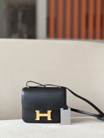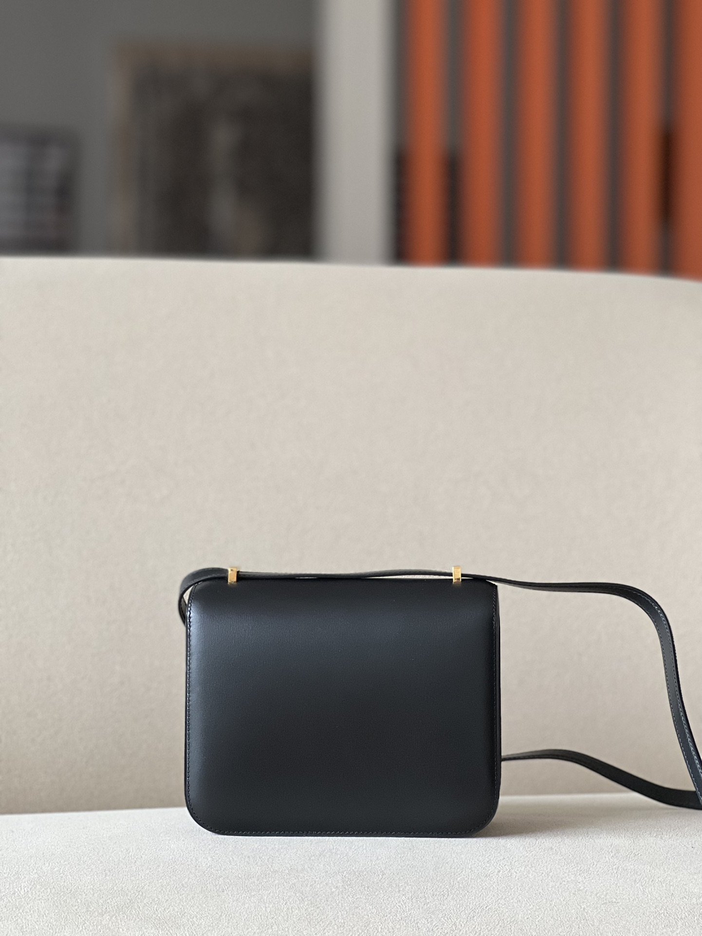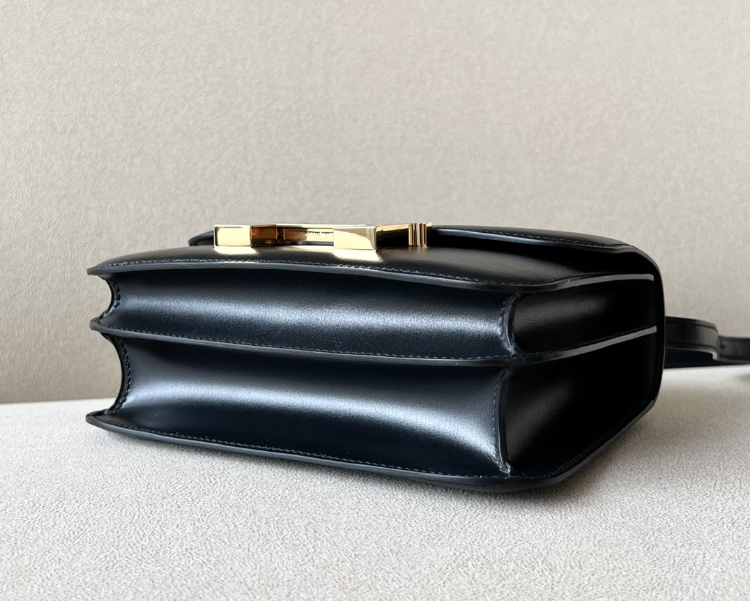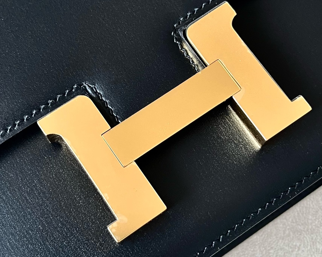 “The bag features a long shoulder strap , including an H buckle on the flap.