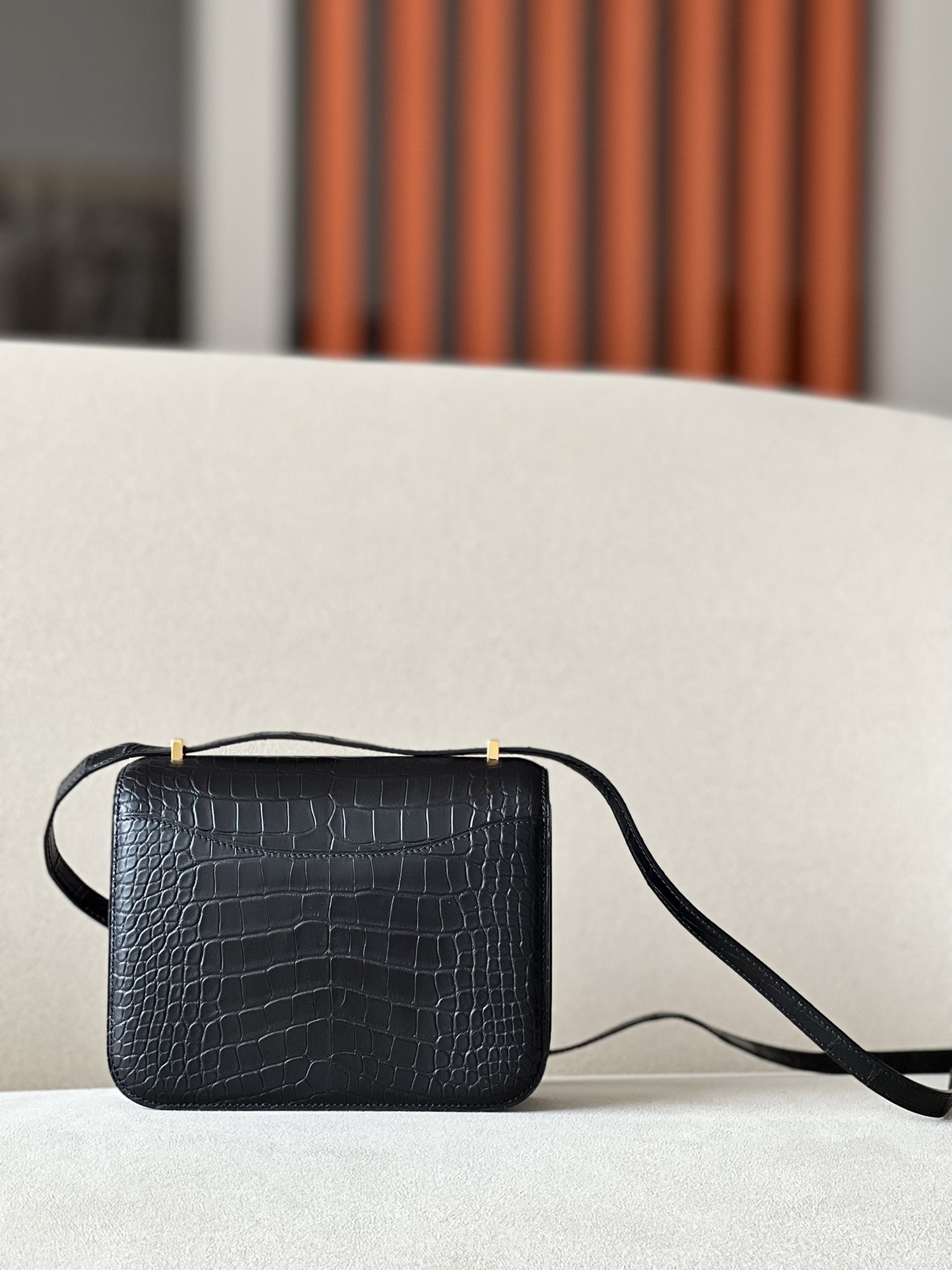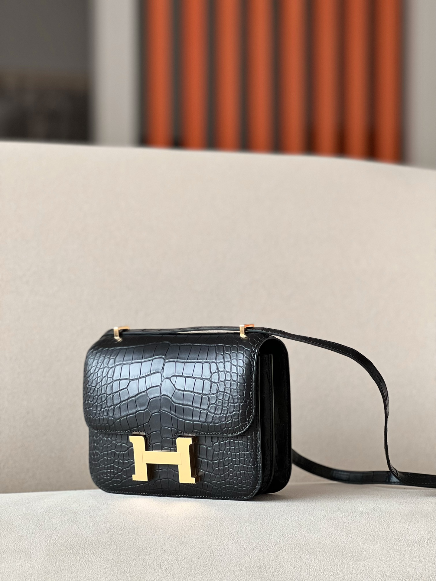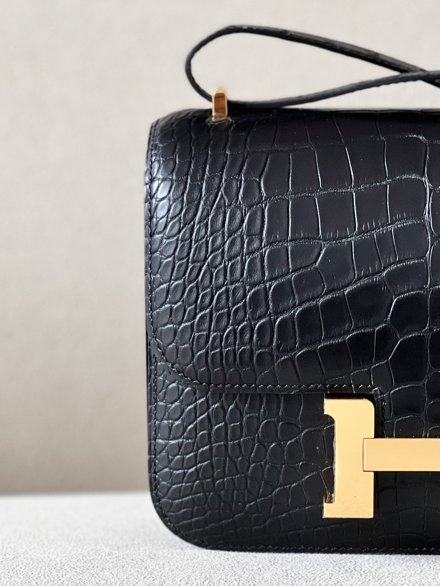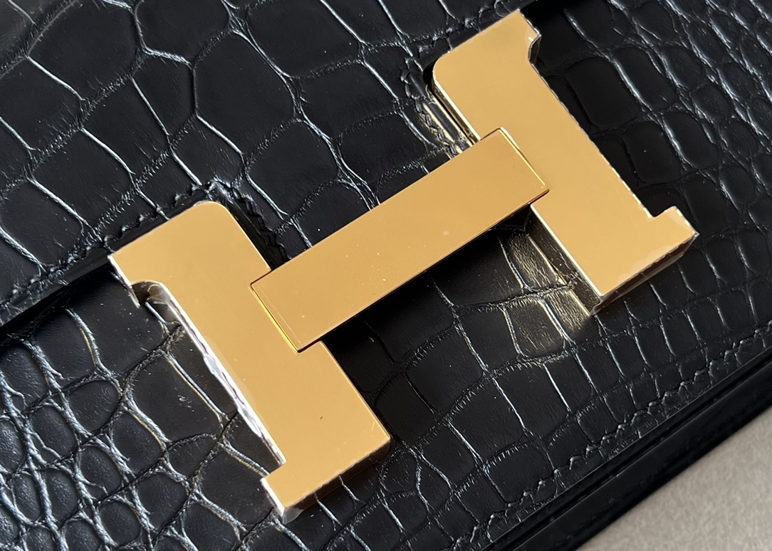 Constance 19 Shiny Alligator Gris Tourterelle (81) Gold Hardware