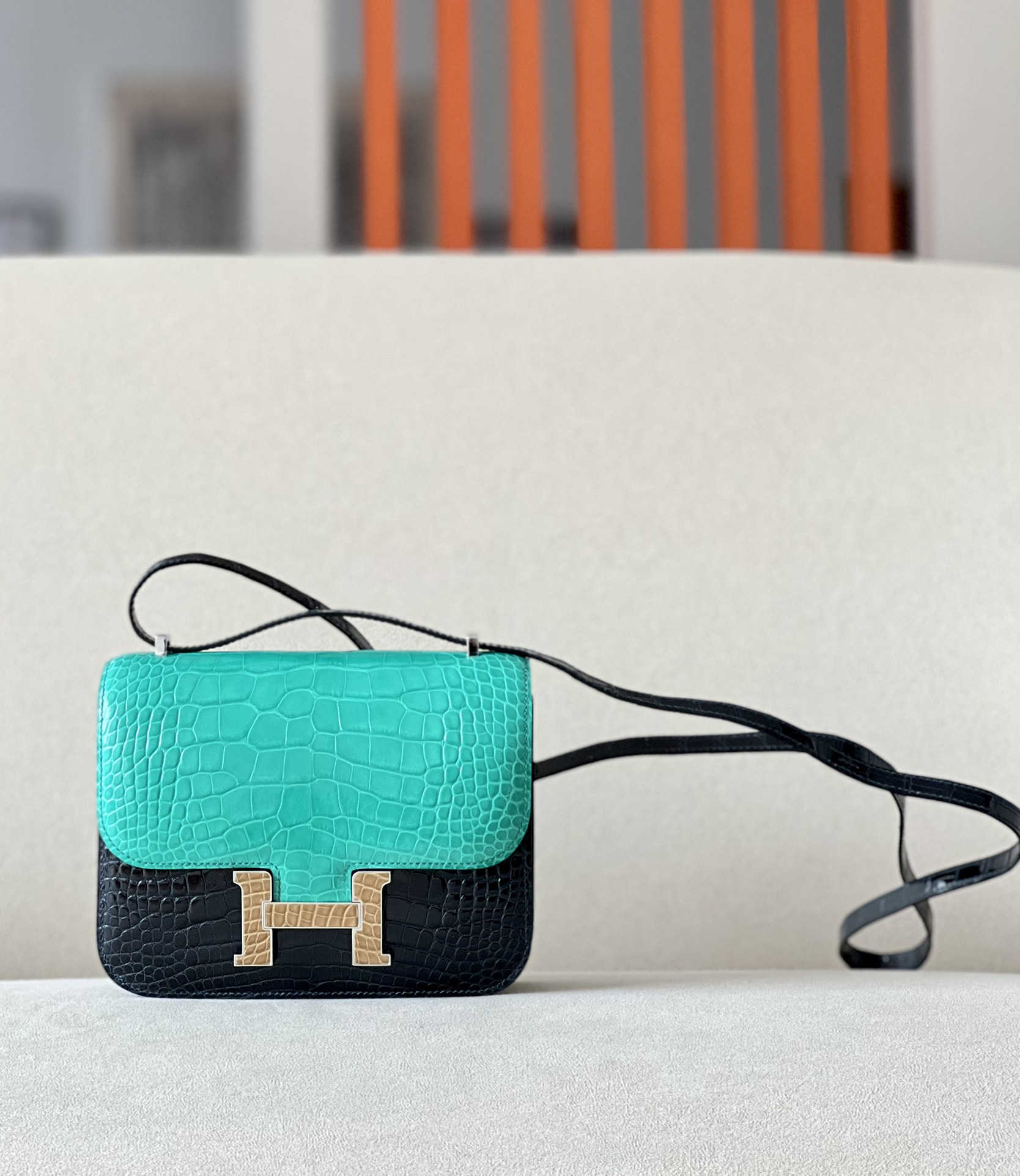 Constance 19 HSS Matte Alligator Blue Encre (M3) ,Cassis(N5) And Beige Sable(1I) Crocs Hardware