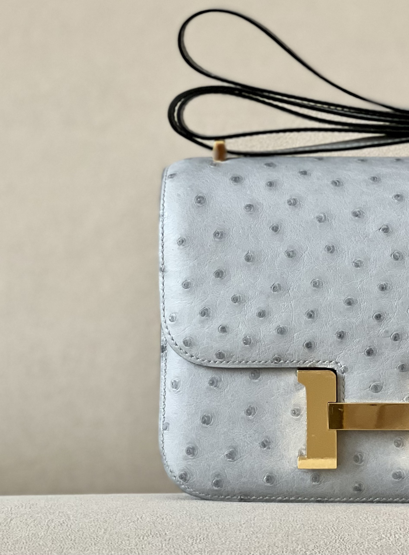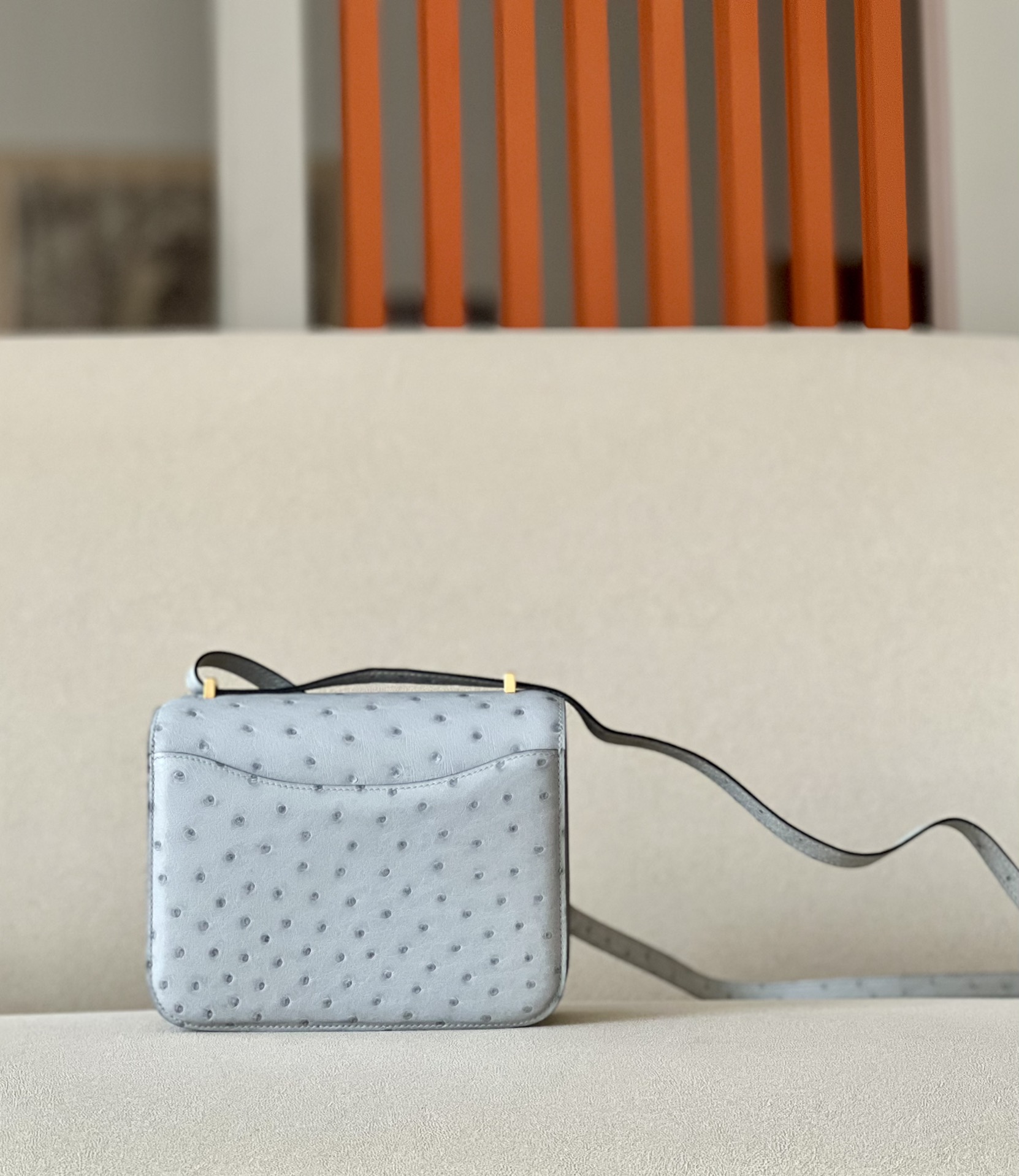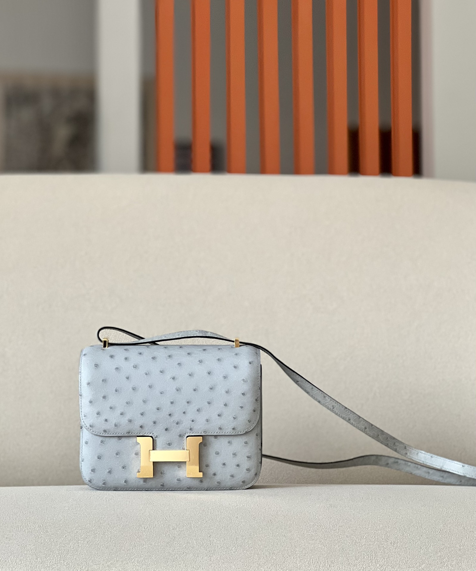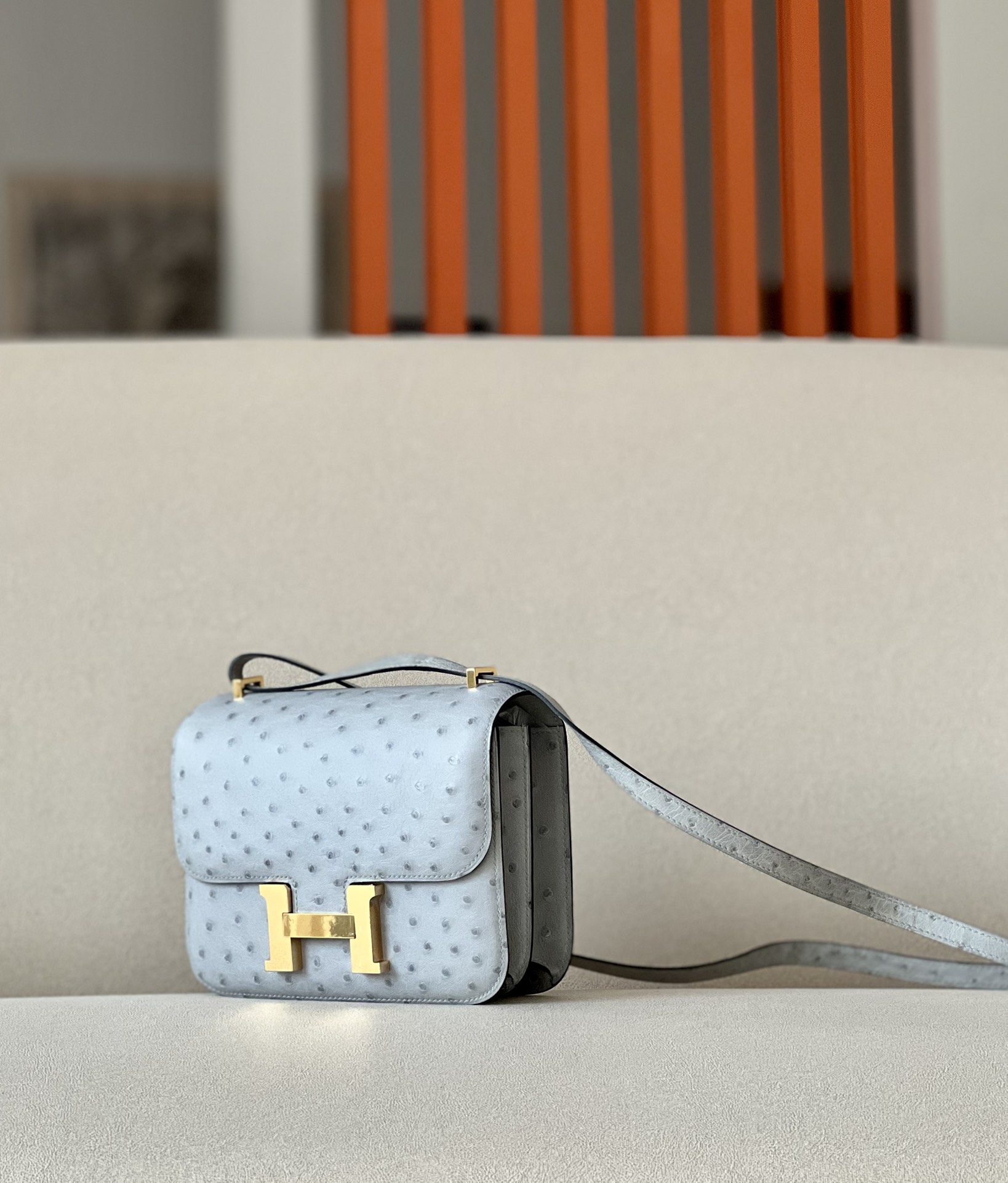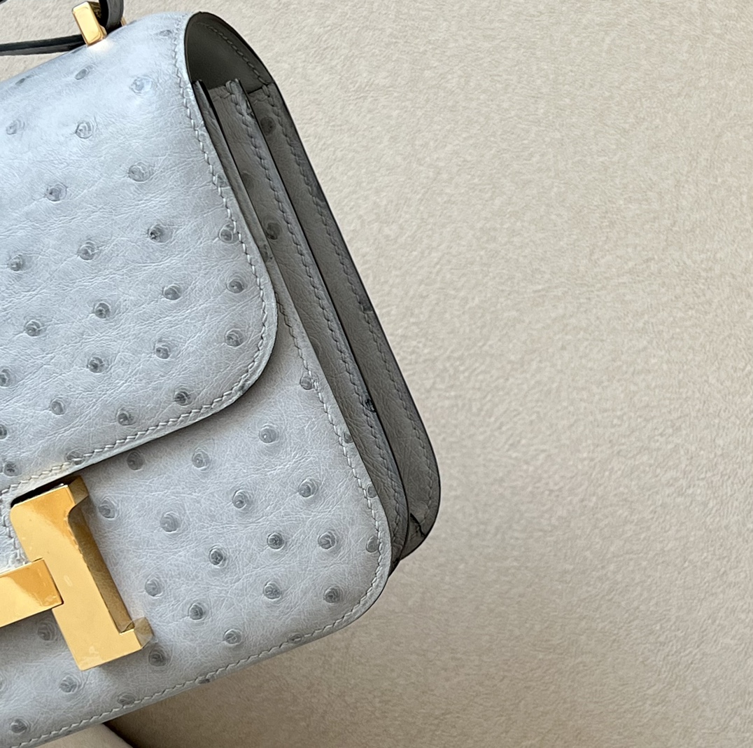 Constance 19 Ostrich Blue Glacier (8U) Gold Hardware