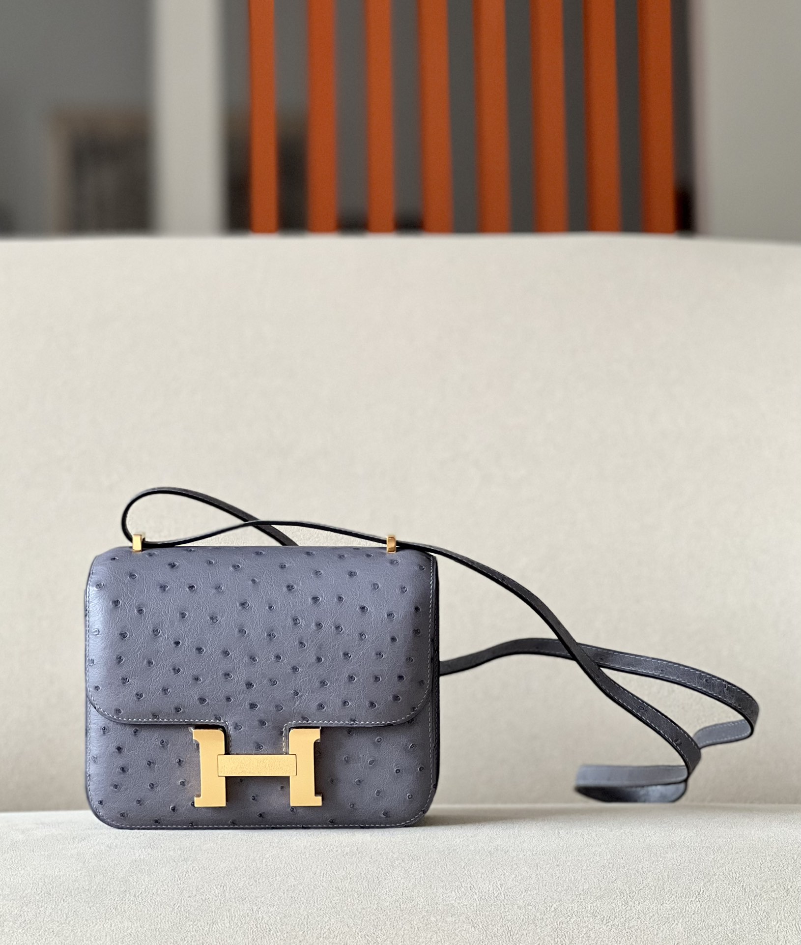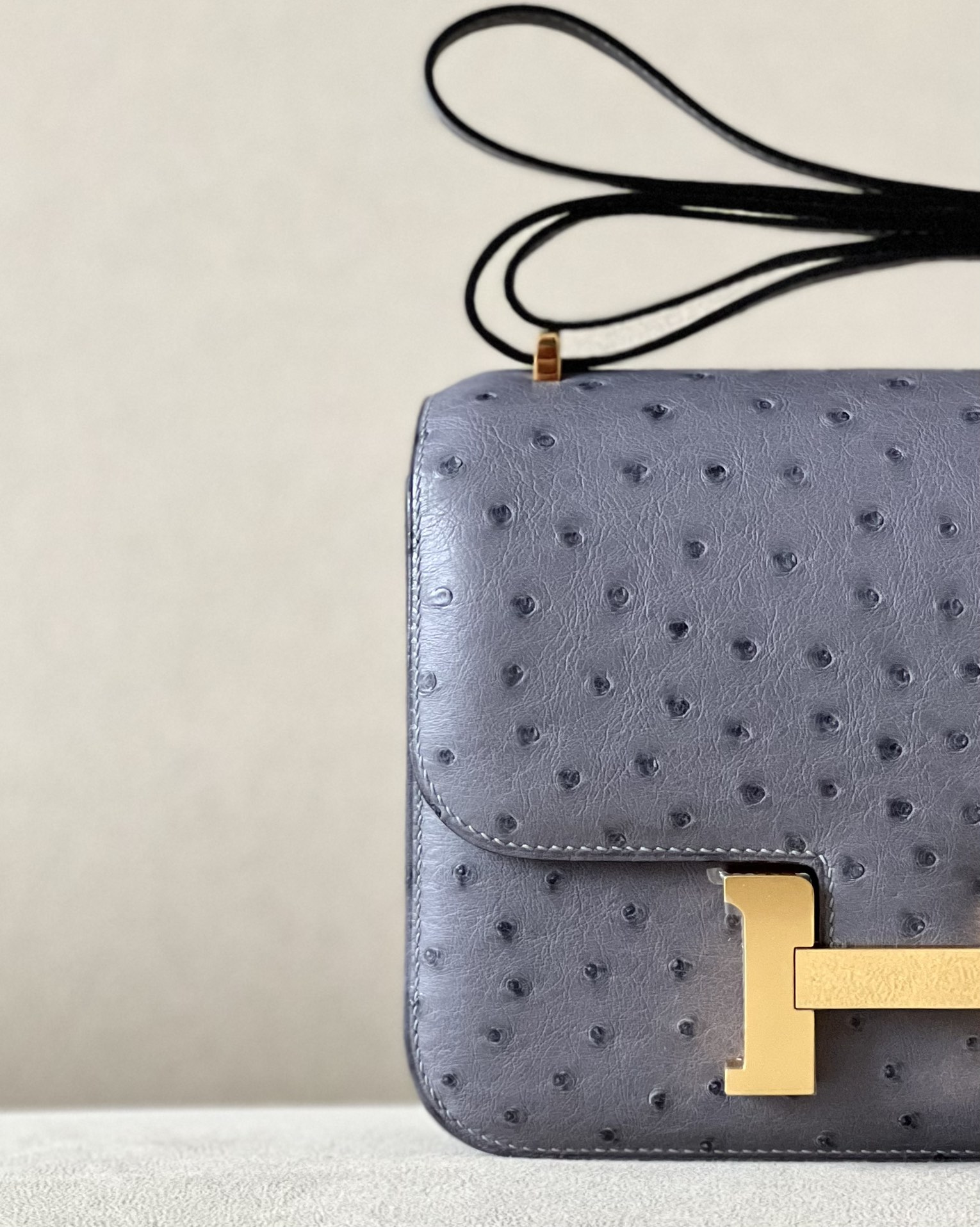Constance 19 Ostrich Gris Agate (82) Gold Hardware
