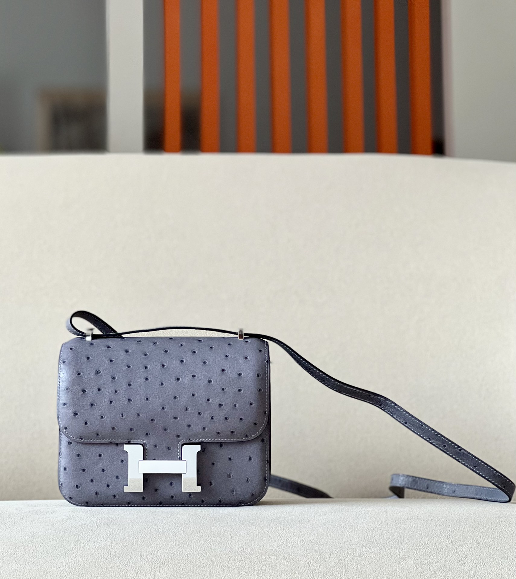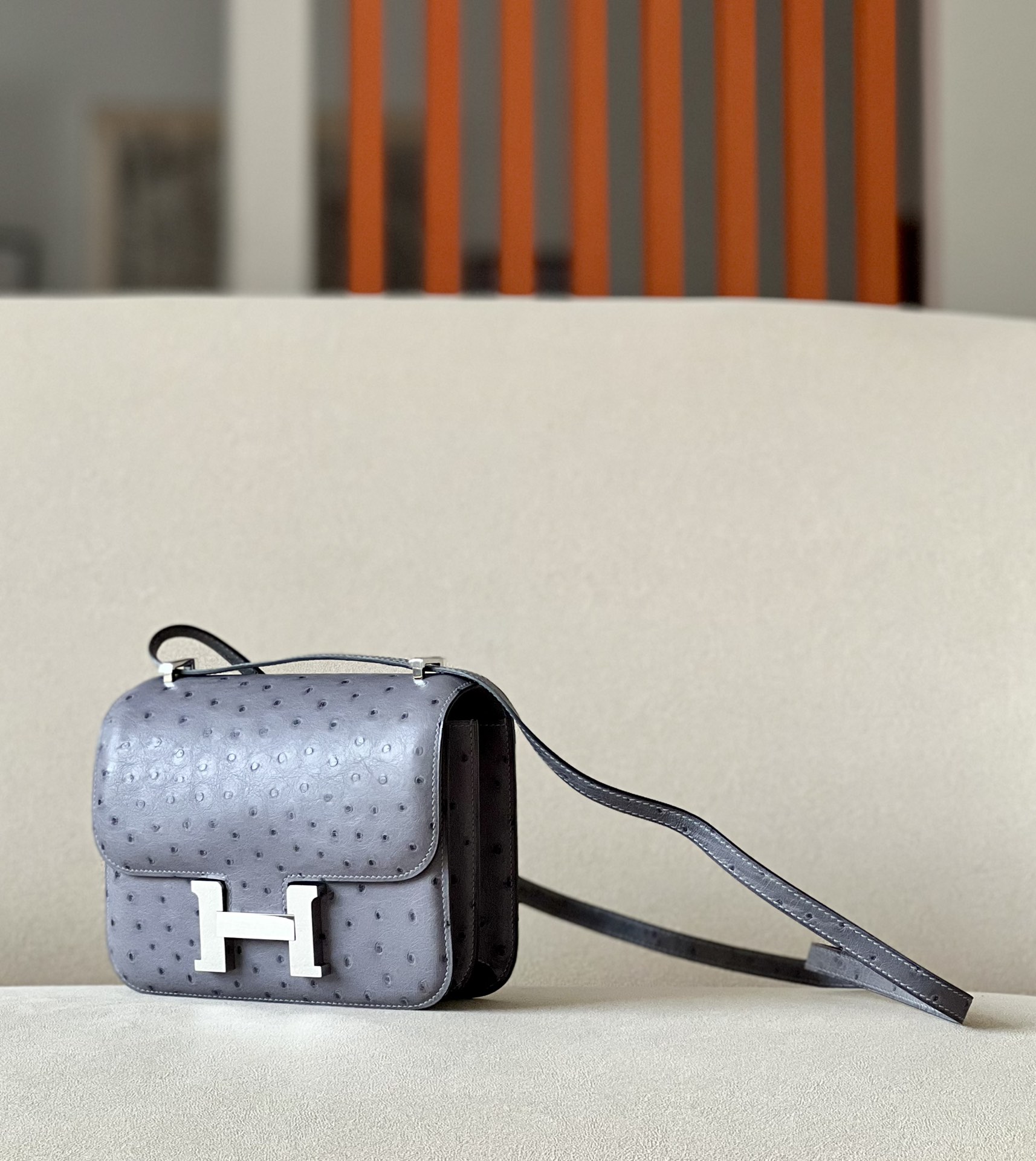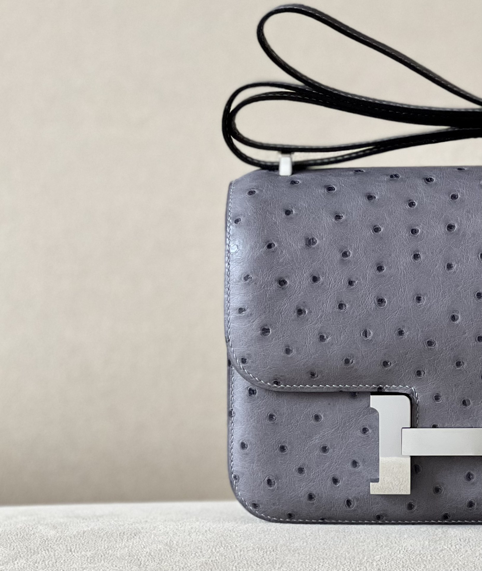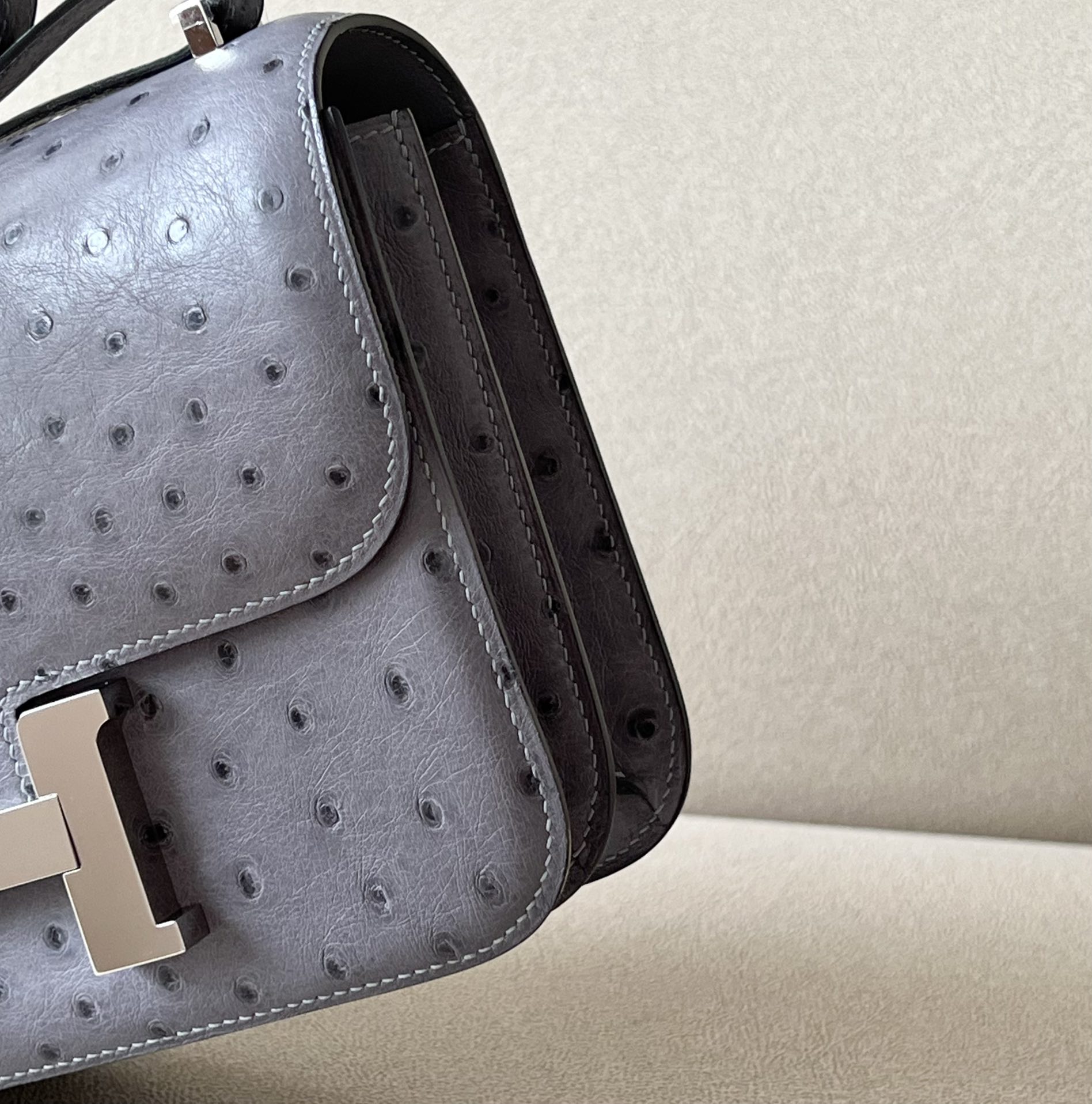 Constance 19 Ostrich Gris Agate (82) Palladium Hardware