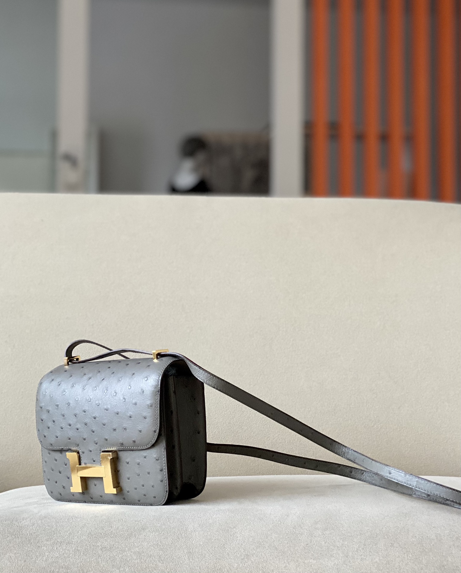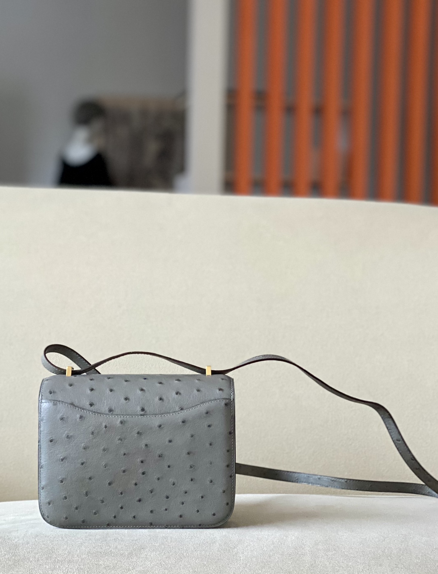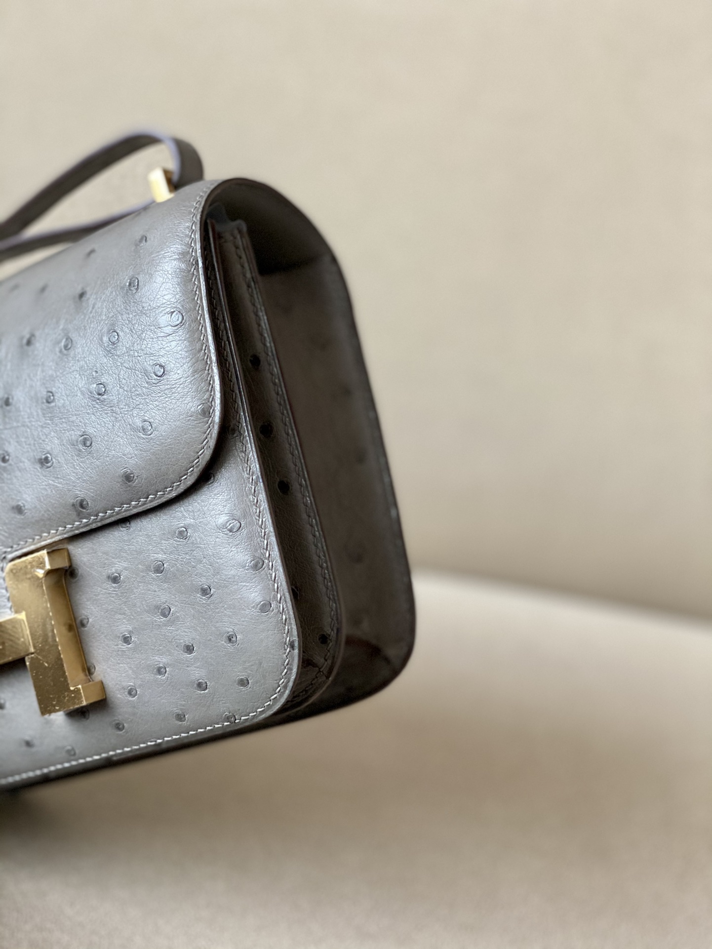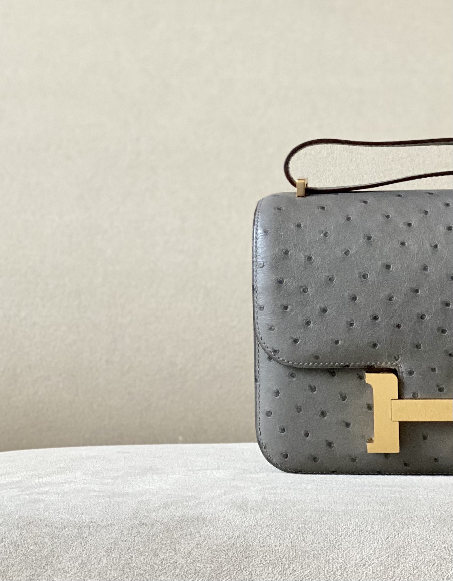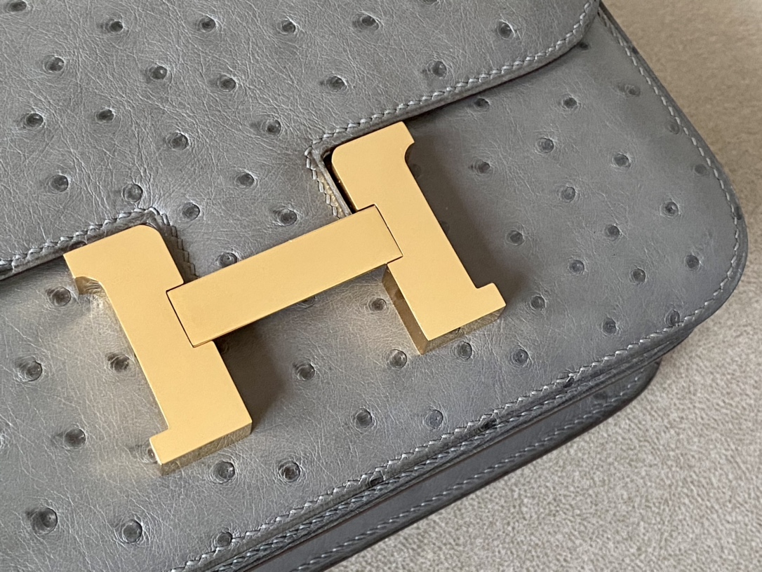 Constance 19 Ostrich Gris Asphalte (M8) Gold Hardware