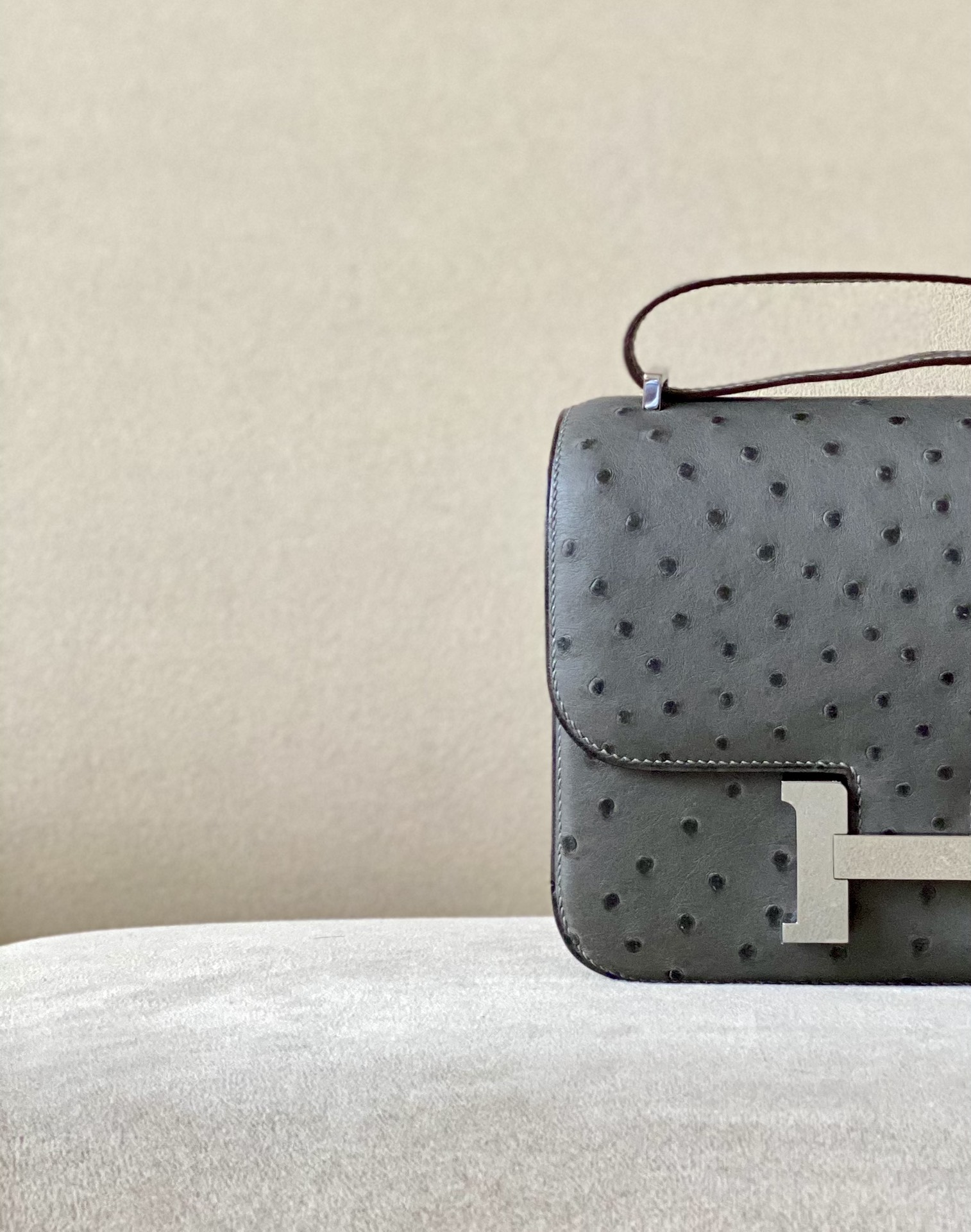 Constance 19 Ostrich Gris Asphalte (M8) Palladium Hardware