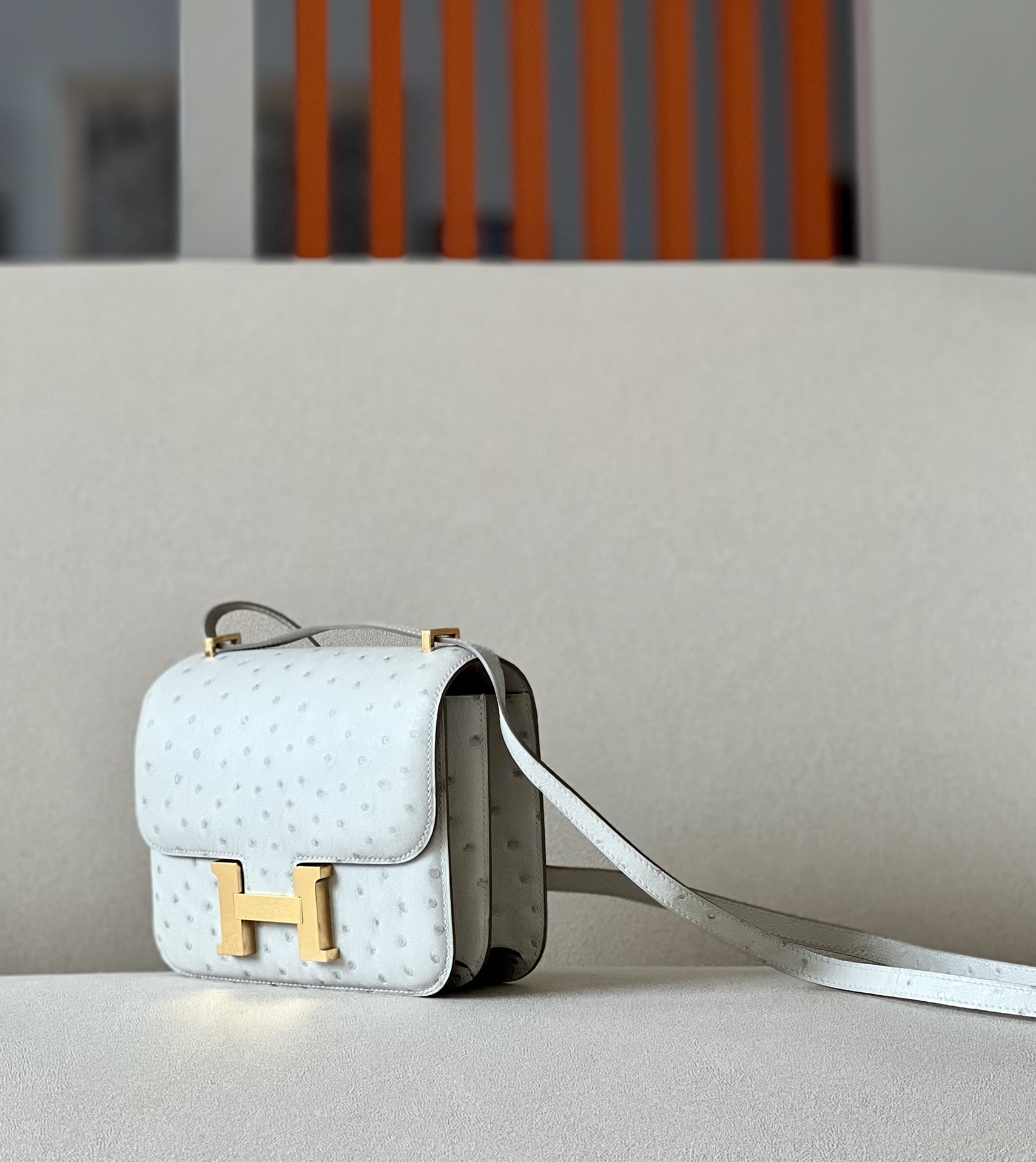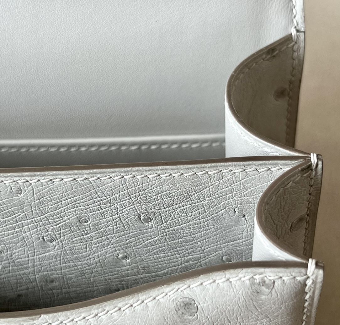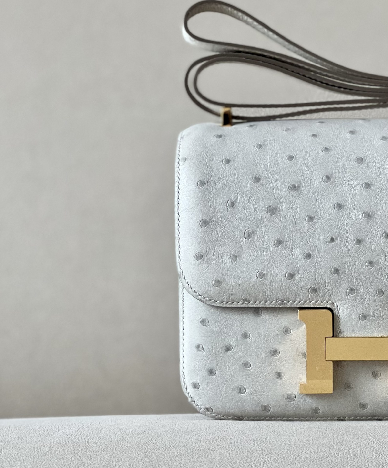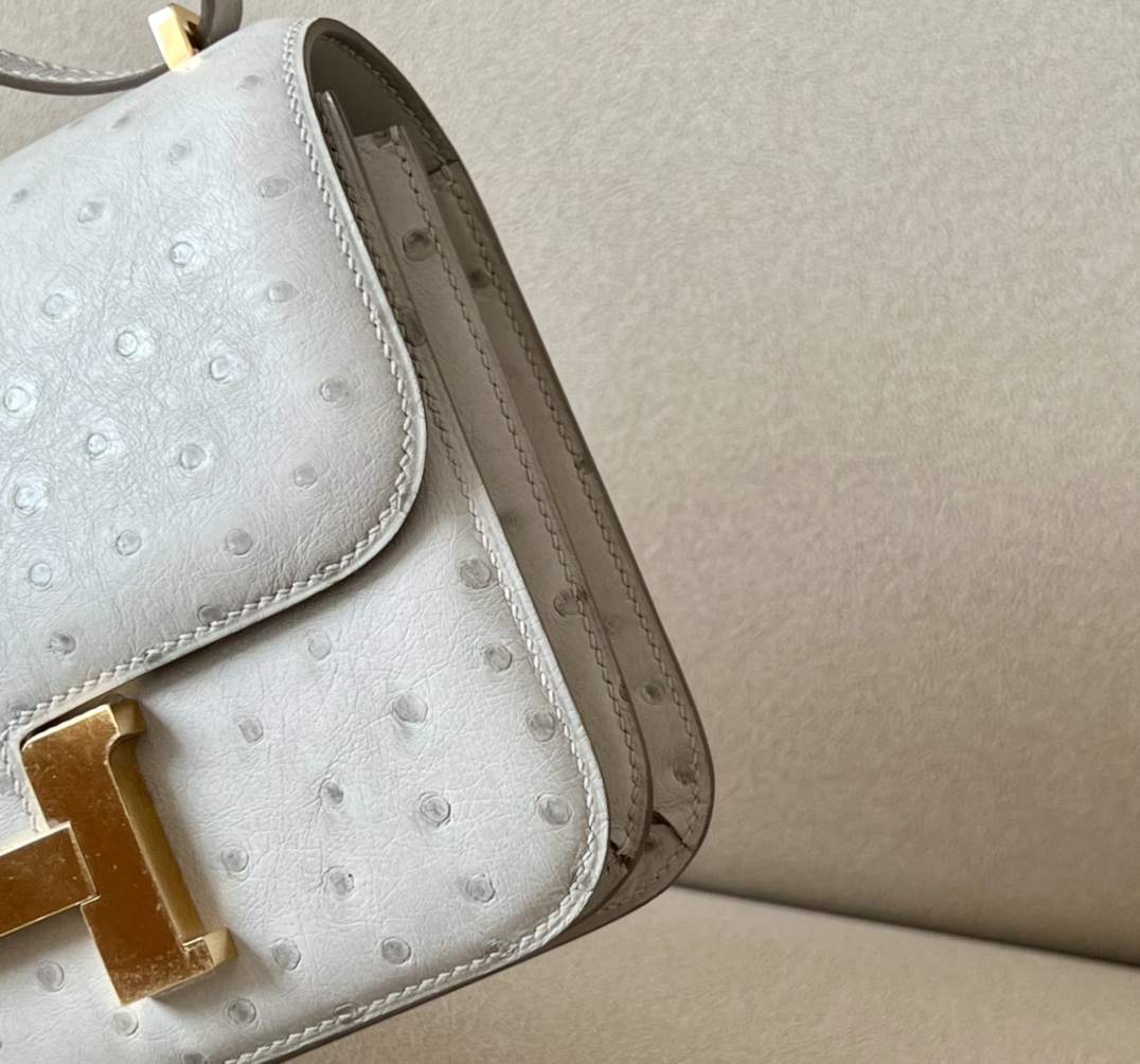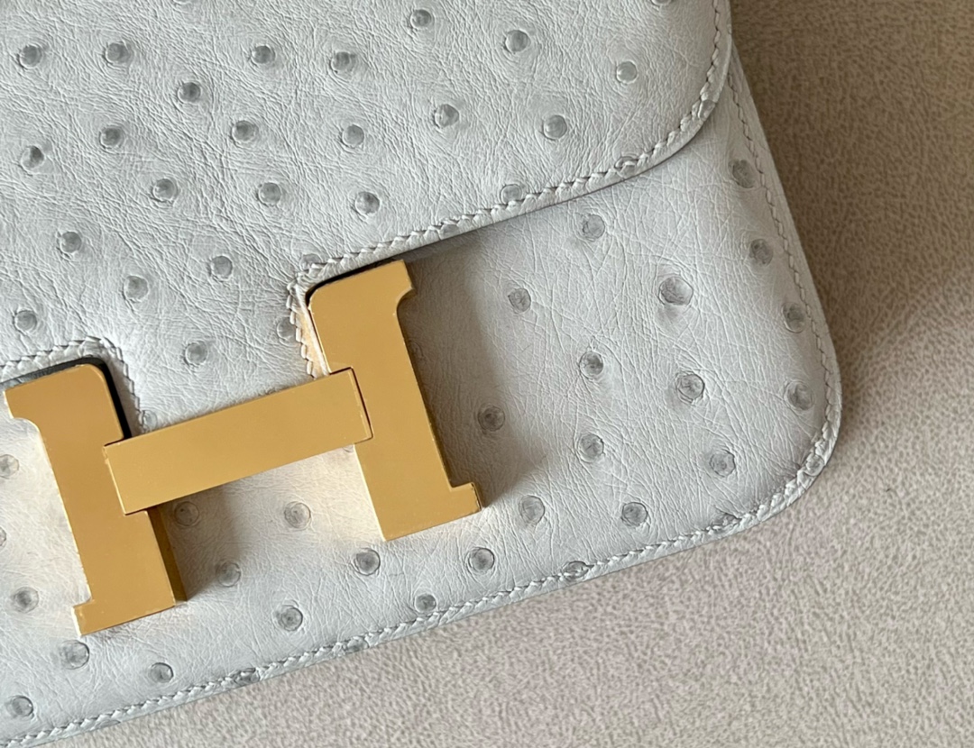 Constance 19 Ostrich Gris Perle (80) Gold Hardware
