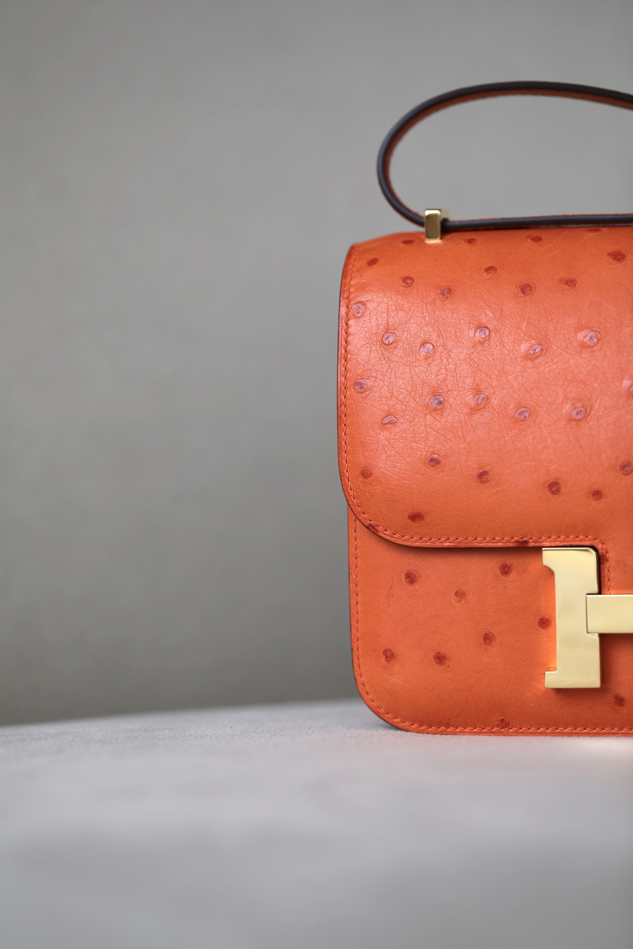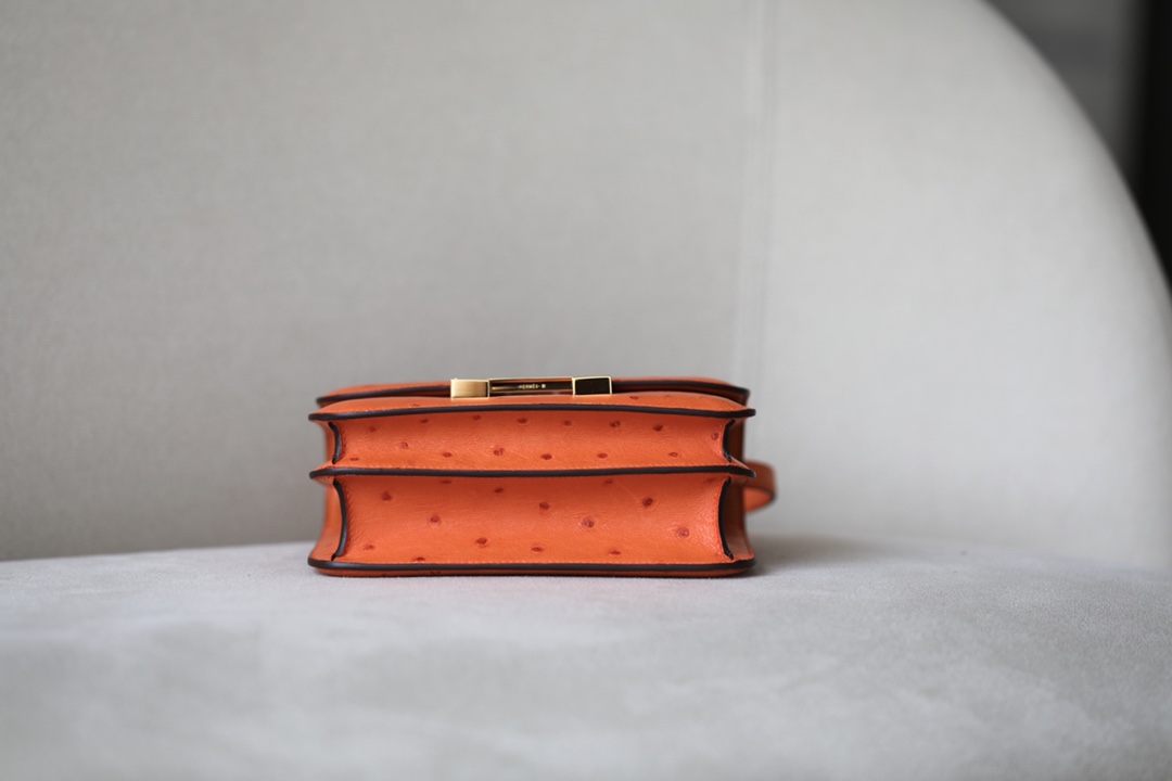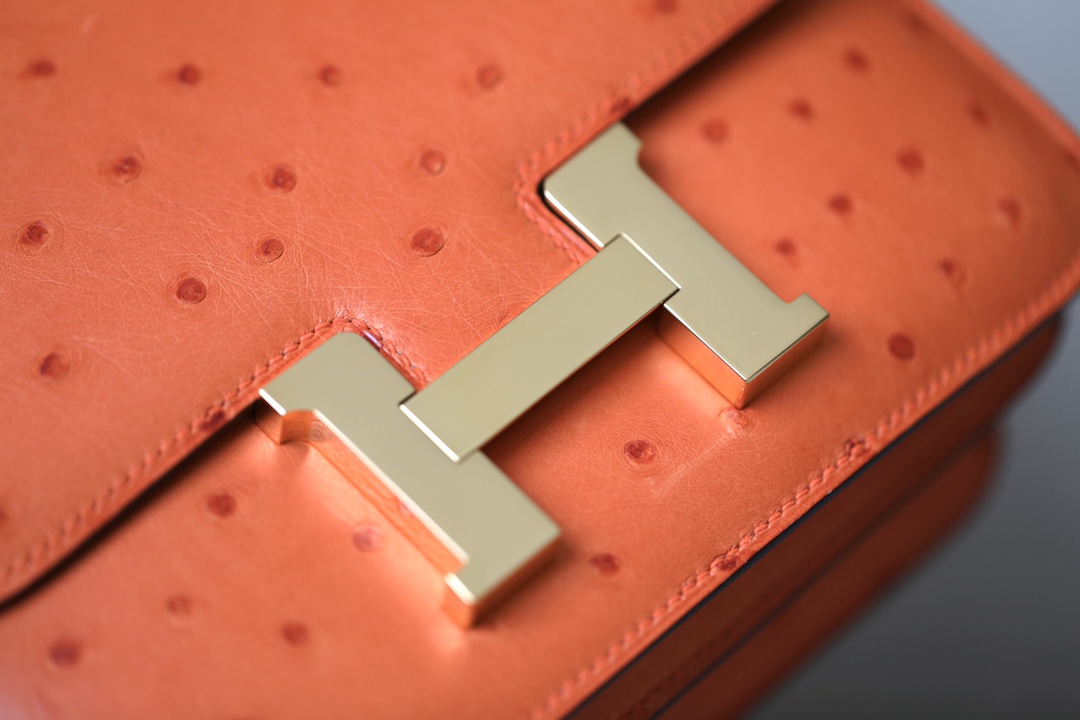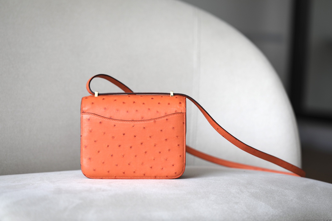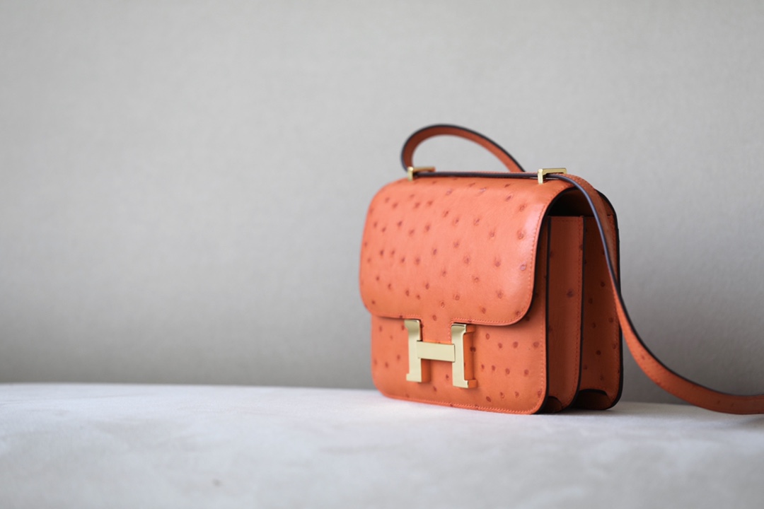 Constance 19 Ostrich Gris Perle (80) Gold Hardware