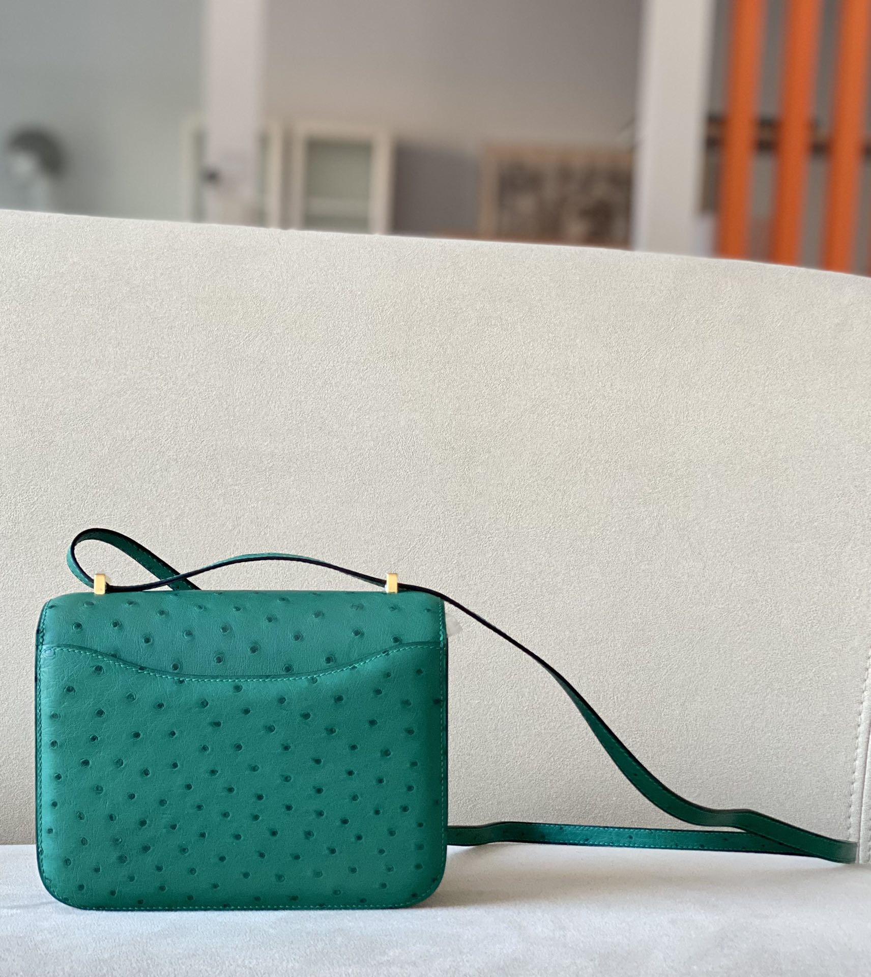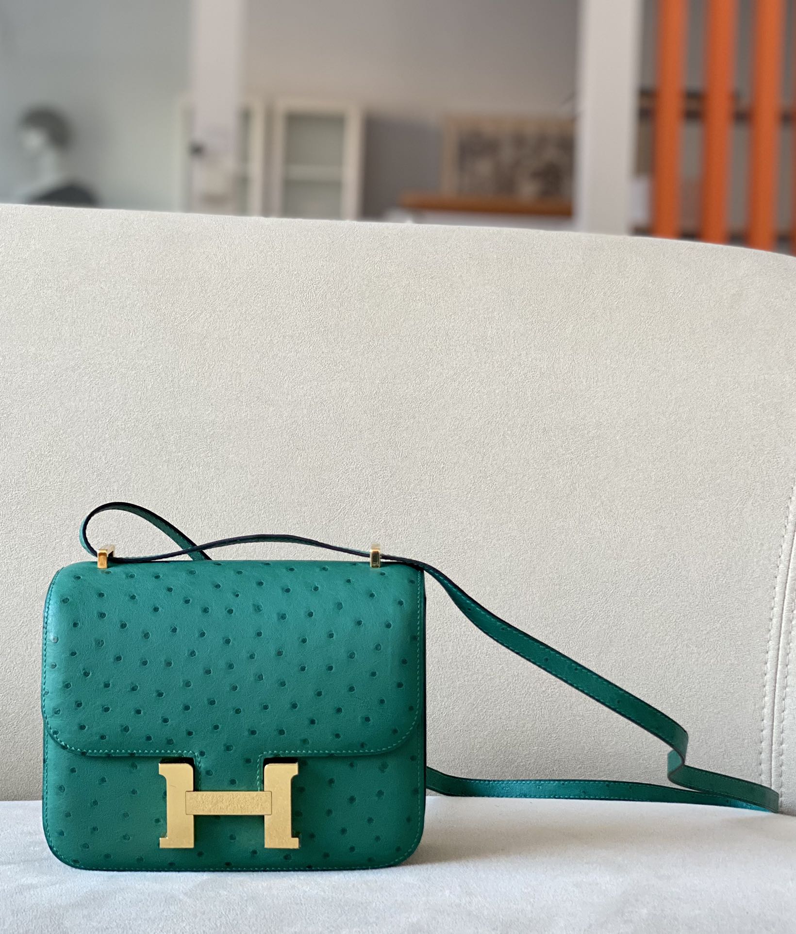 Constance 19 Ostrich Vert Vertigo (U4) Gold Hardware