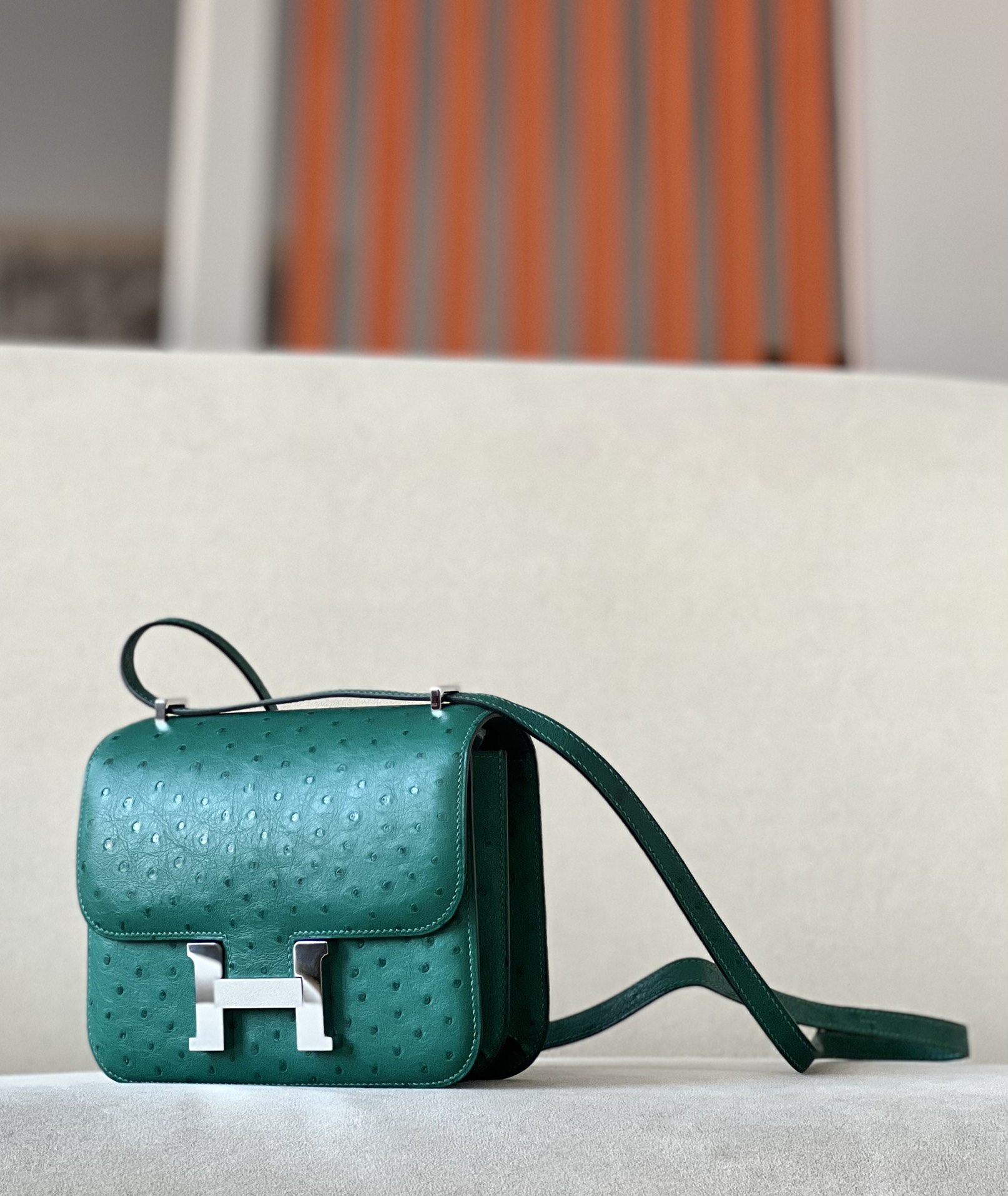 Constance 19 Ostrich Vert Vertigo (U4) Palladium Hardware