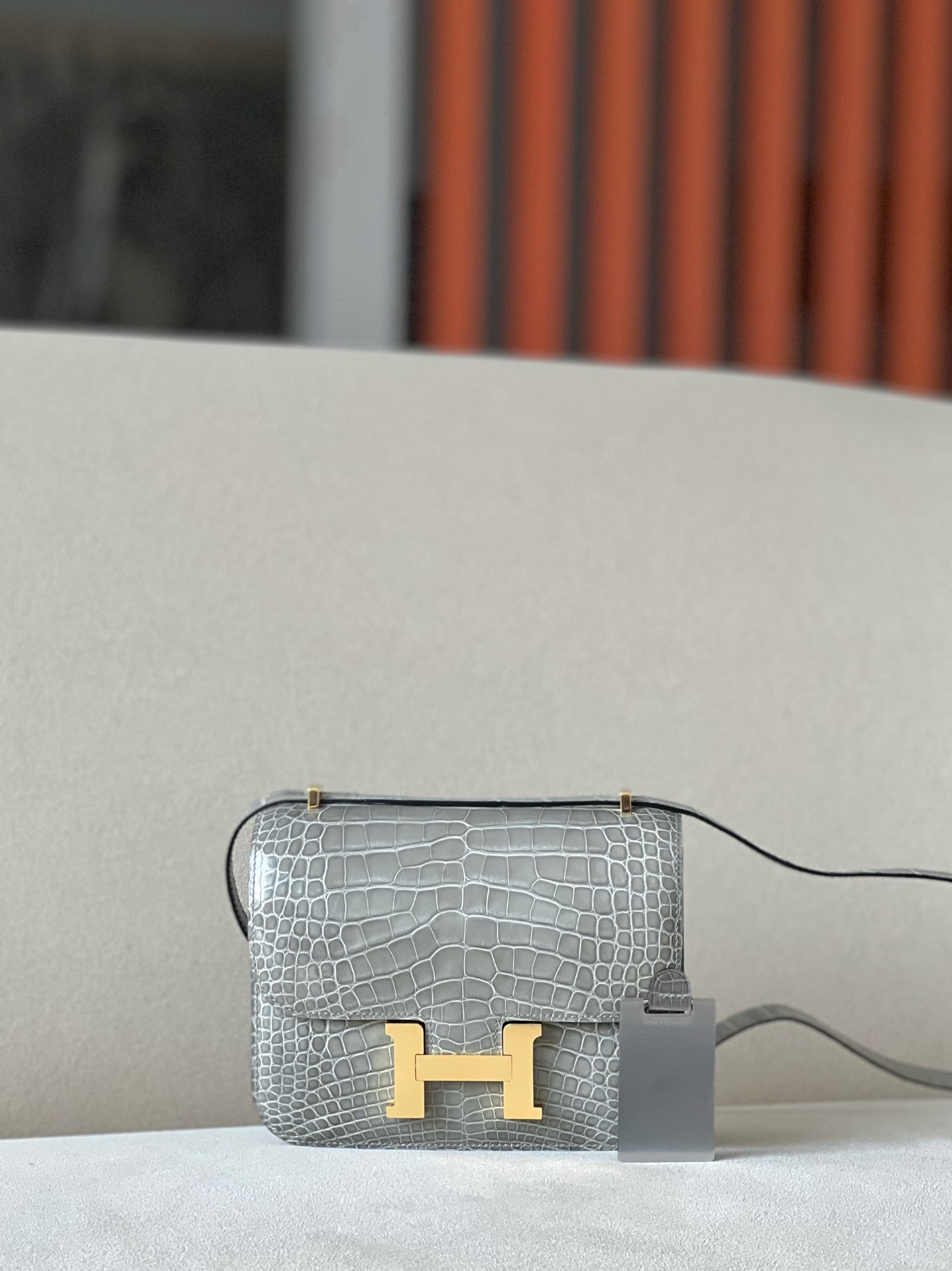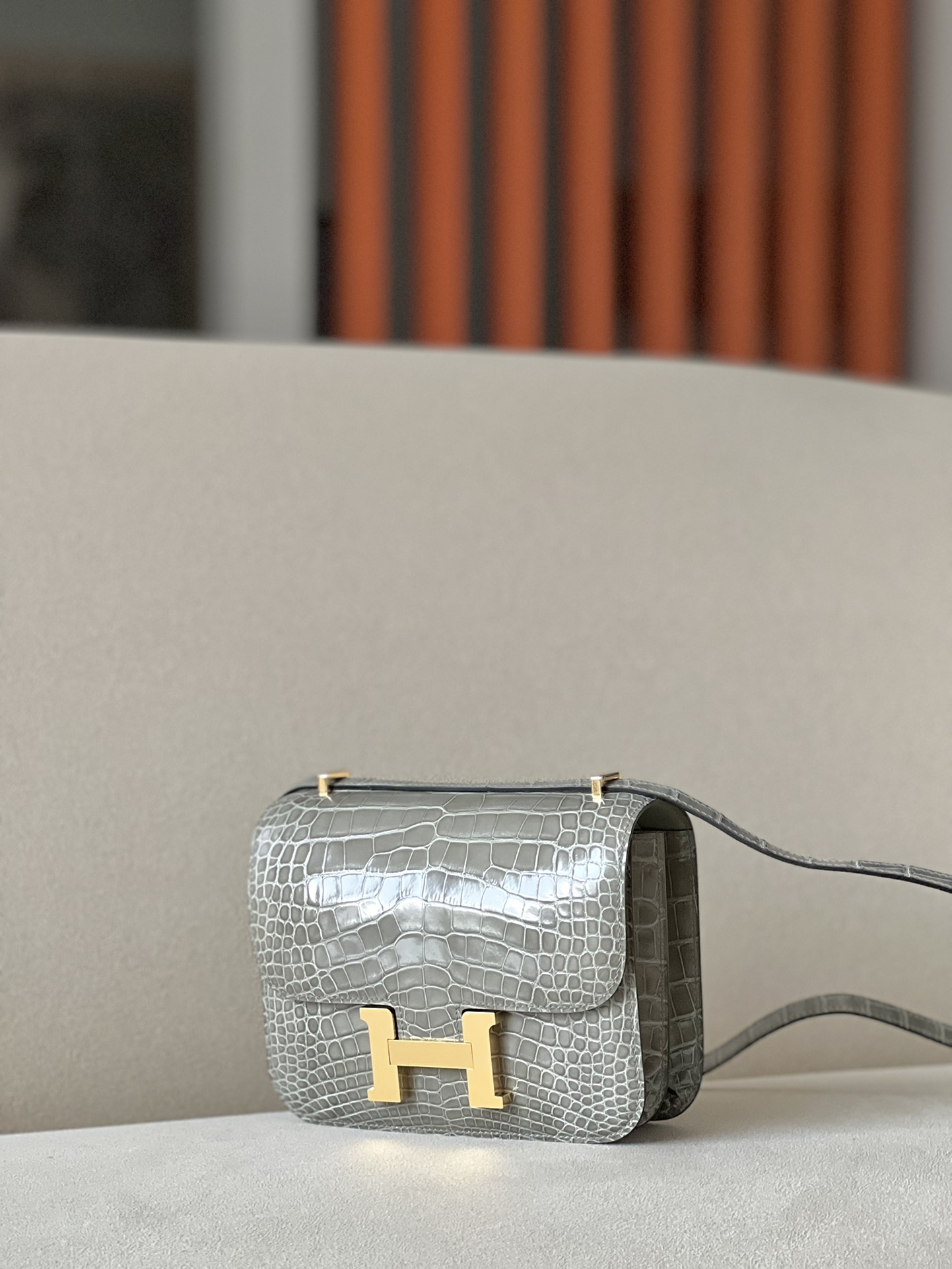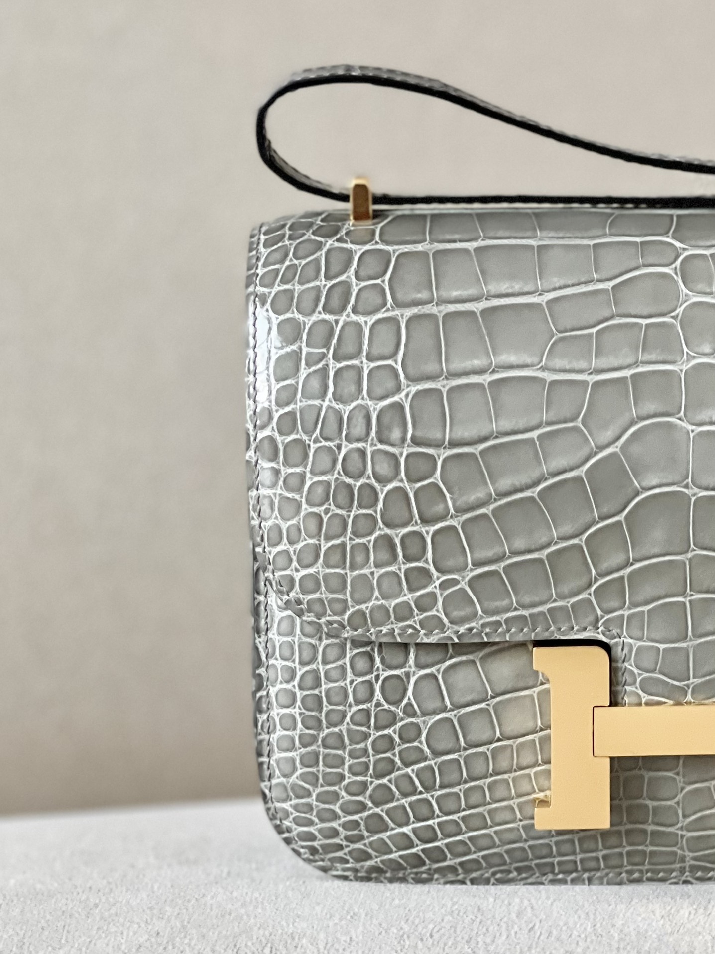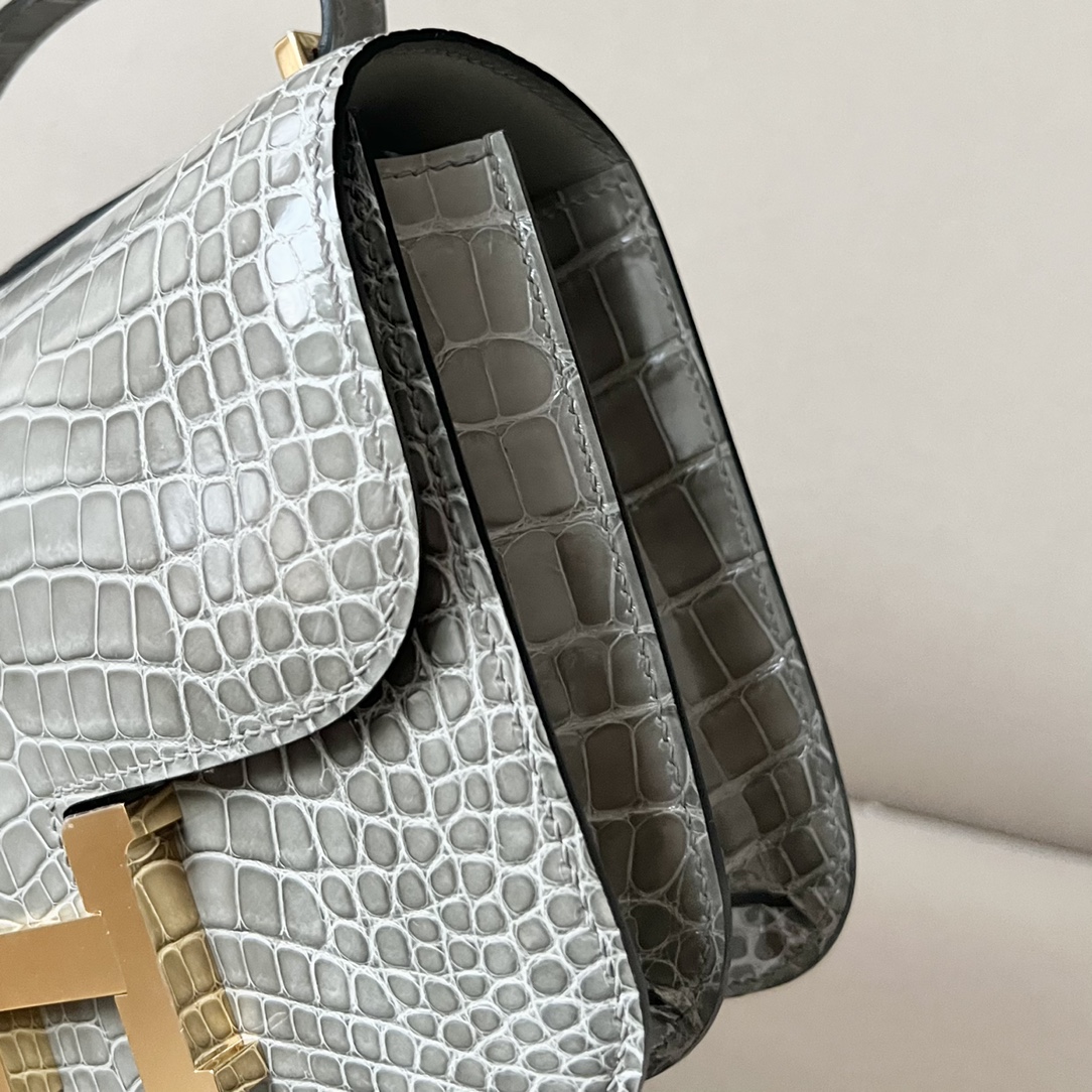 Constance 19 Shiny Alligator Gris Tourterelle (81) Palladium Hardware
