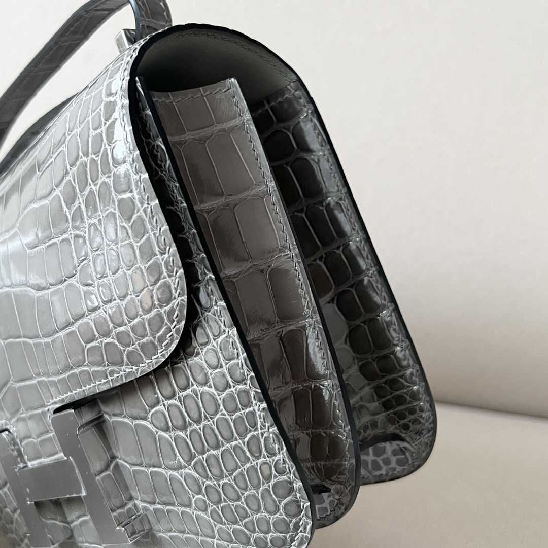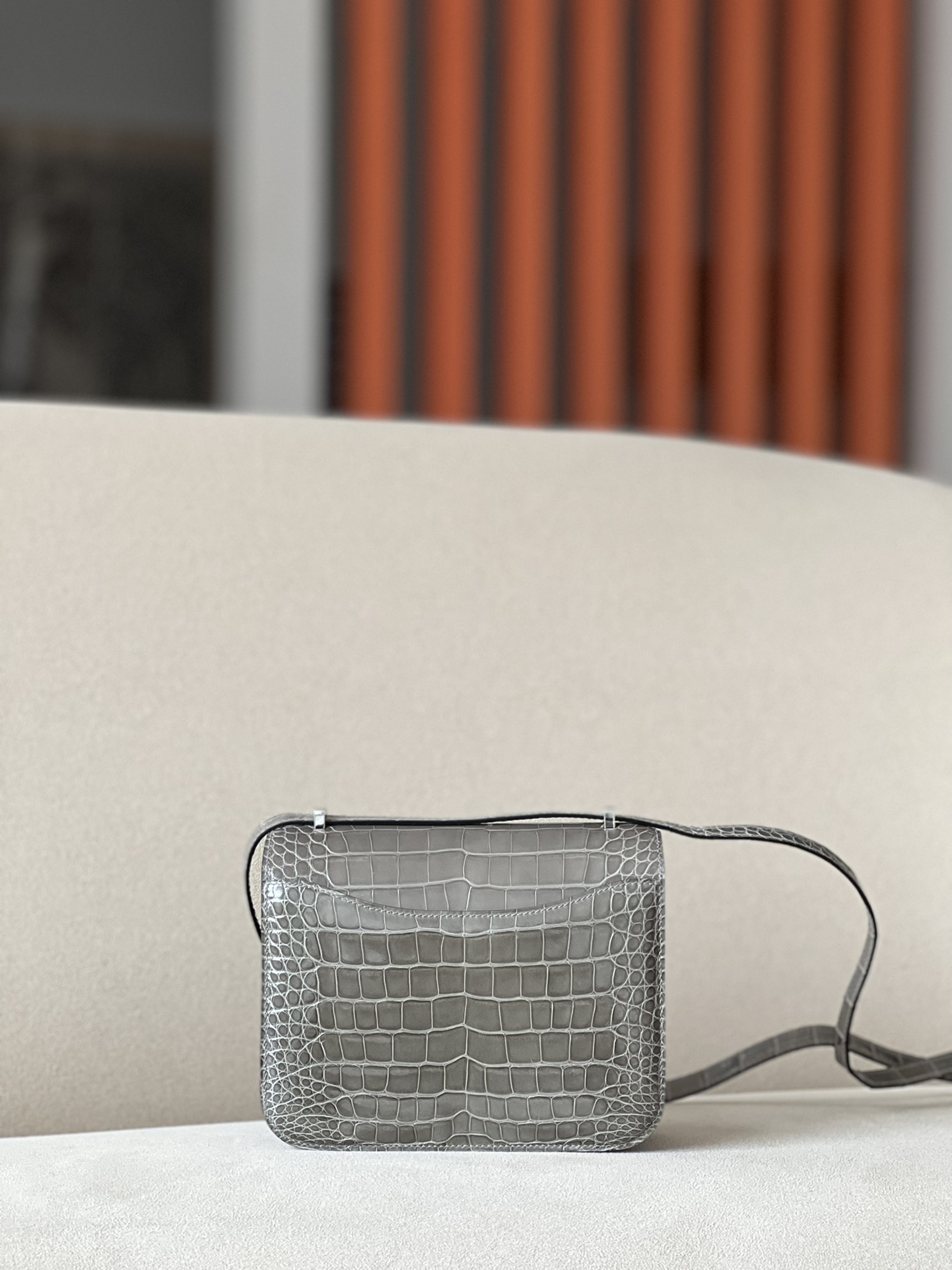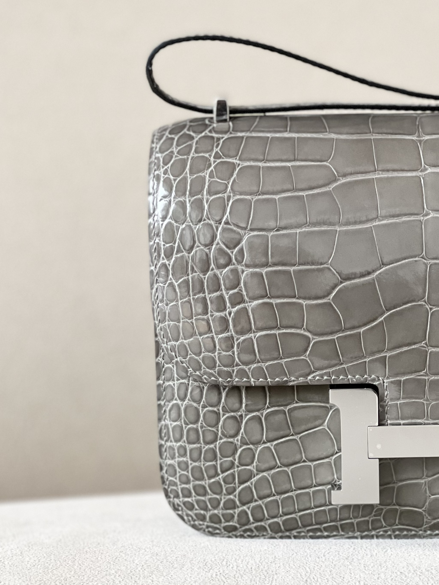 Constance 19 Shiny Alligator Gris Tourterelle (81) Gold Hardware