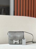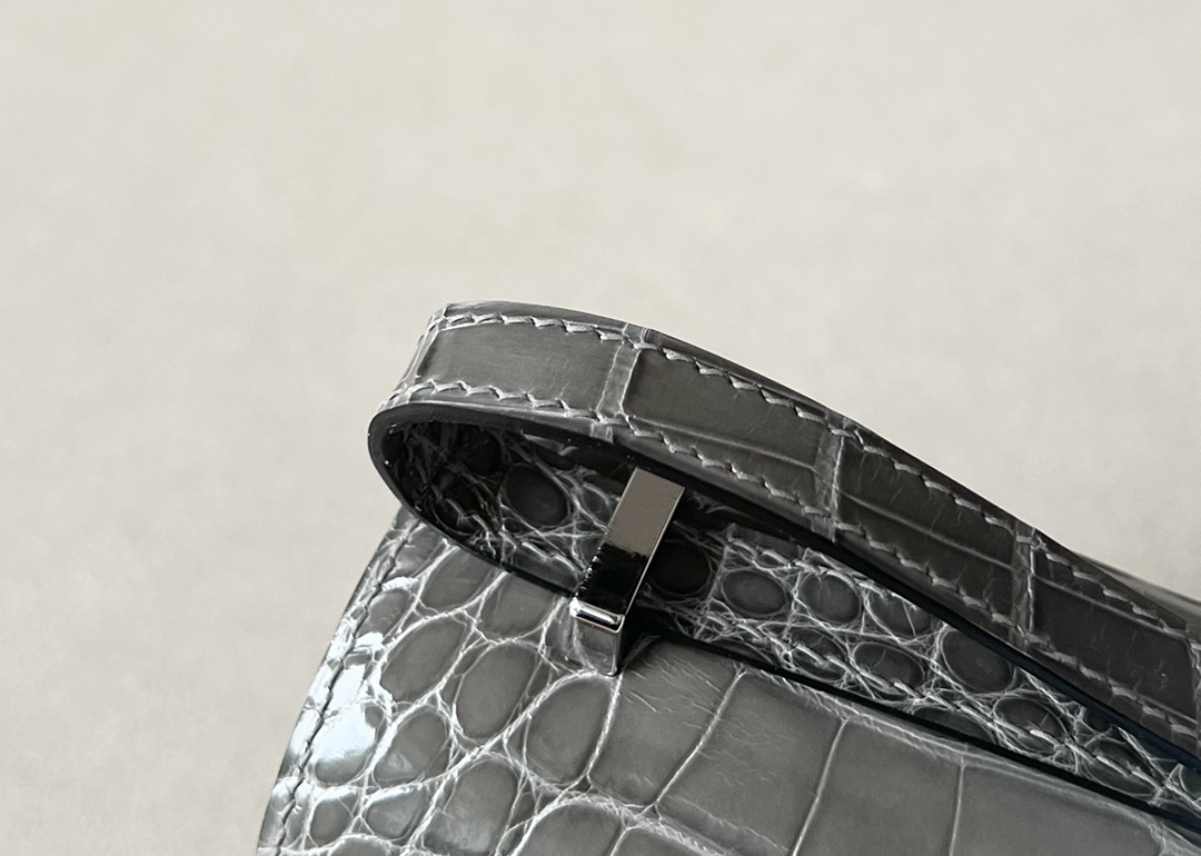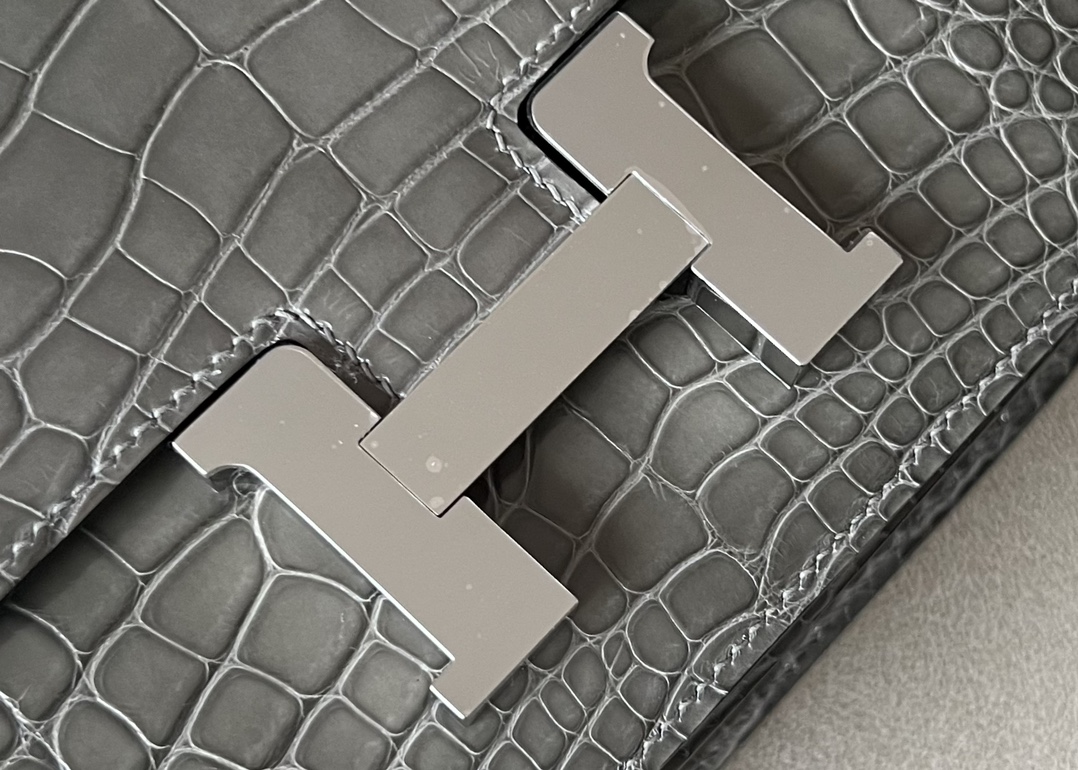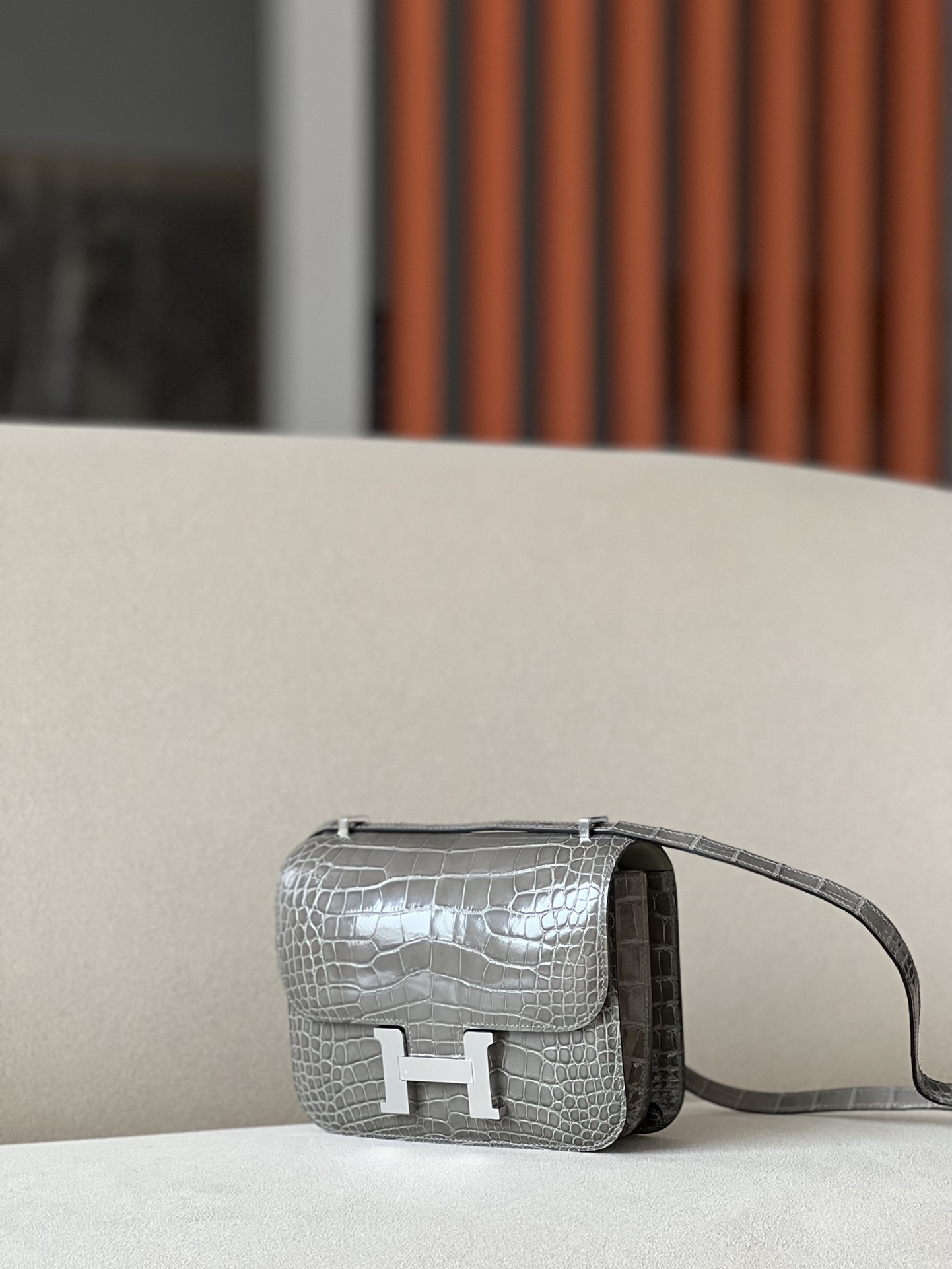 Constance 19 Shiny Alligator Gris Tourterelle (81) Gold Hardware