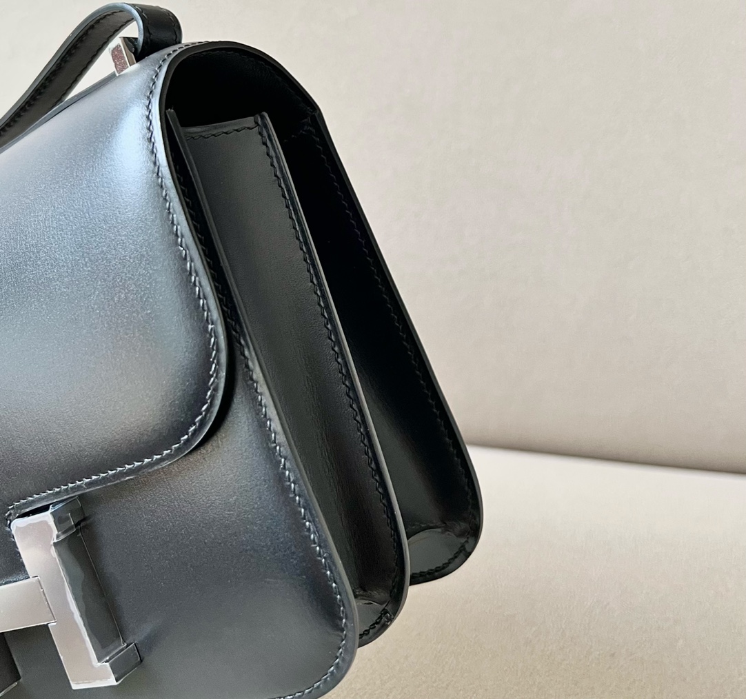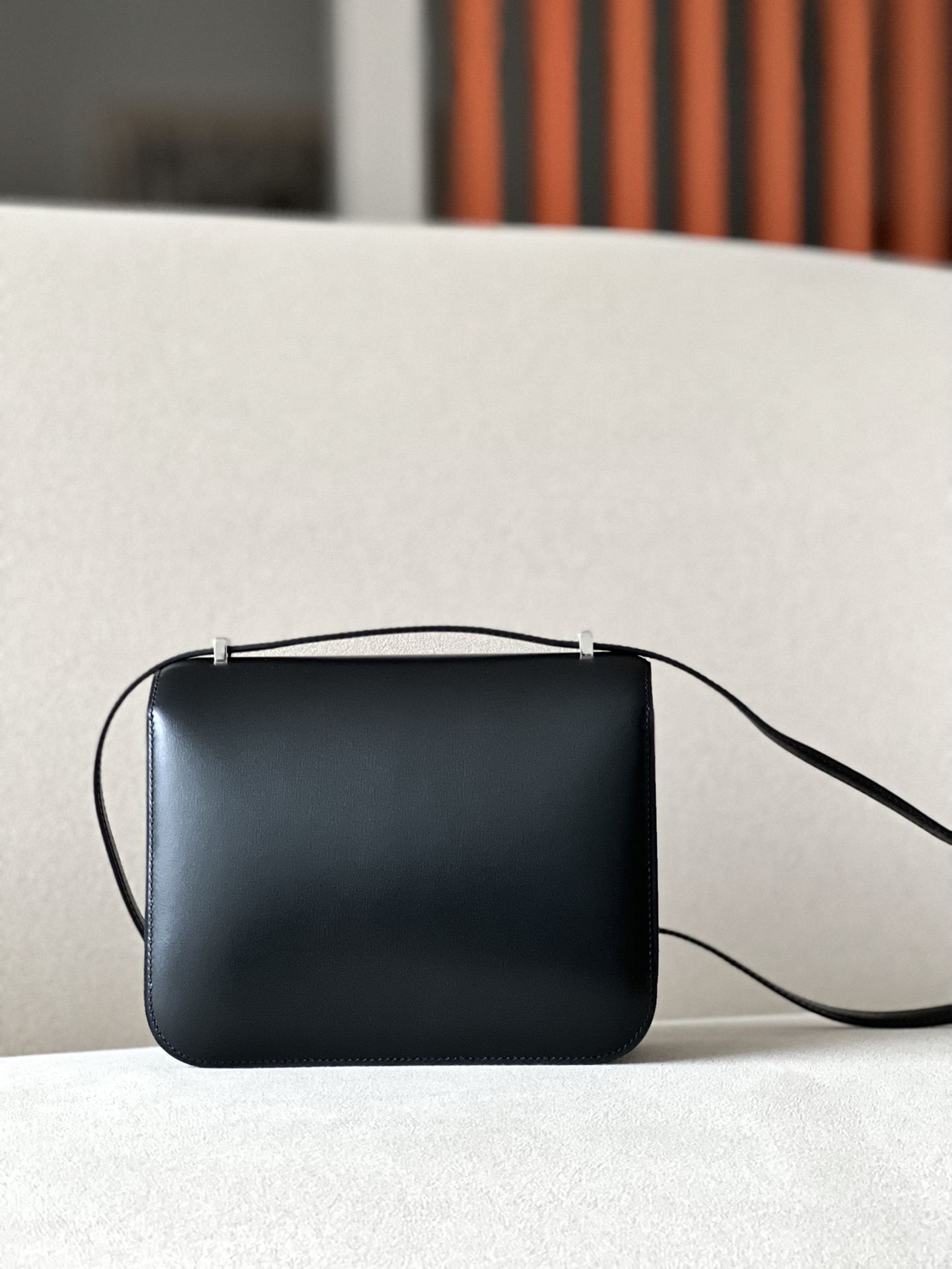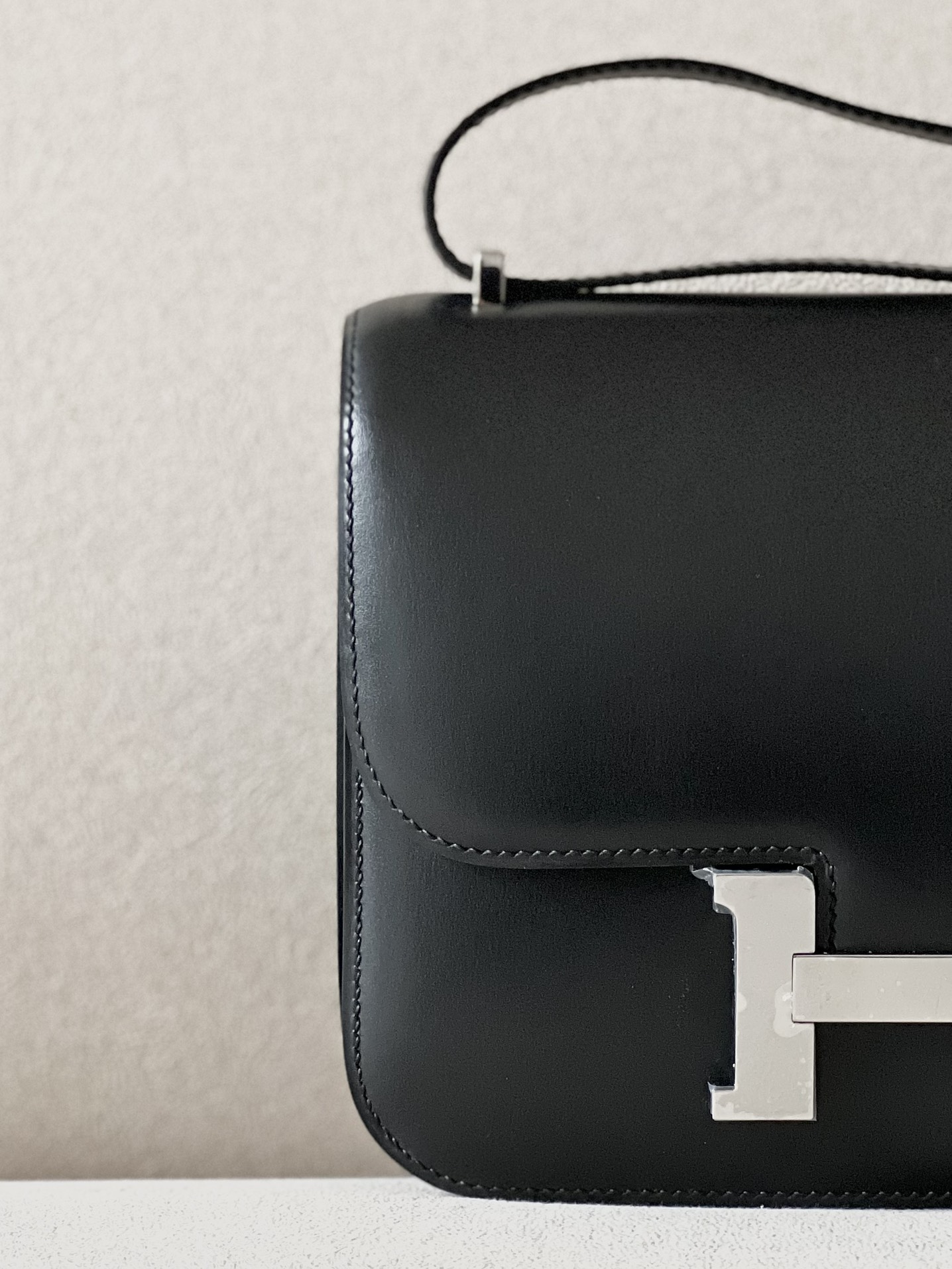 “The bag features a long shoulder strap , including an H buckle on the flap.