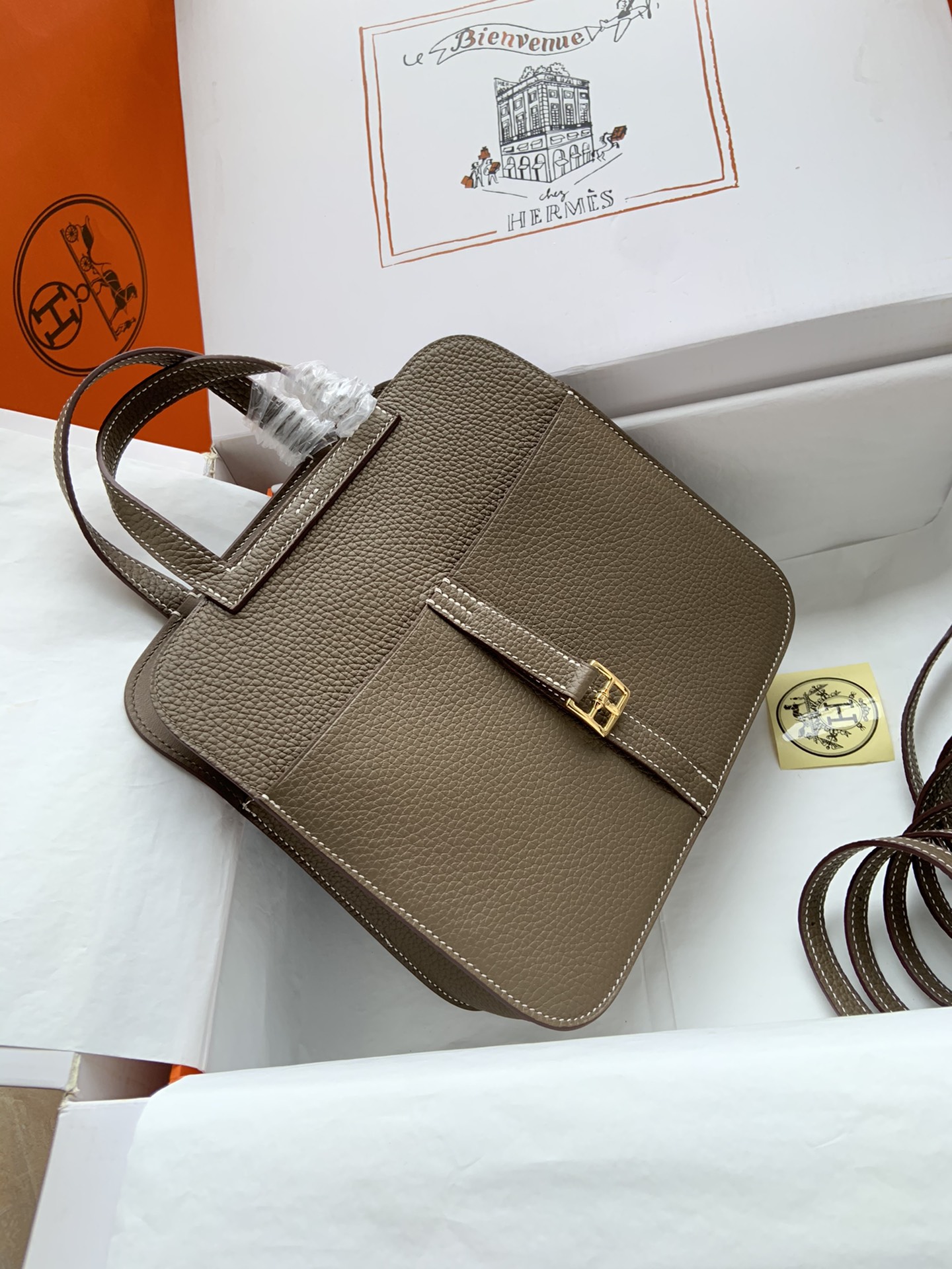 Hermes Halzan 25 Clemence Etoupe (18) Gold Hardware