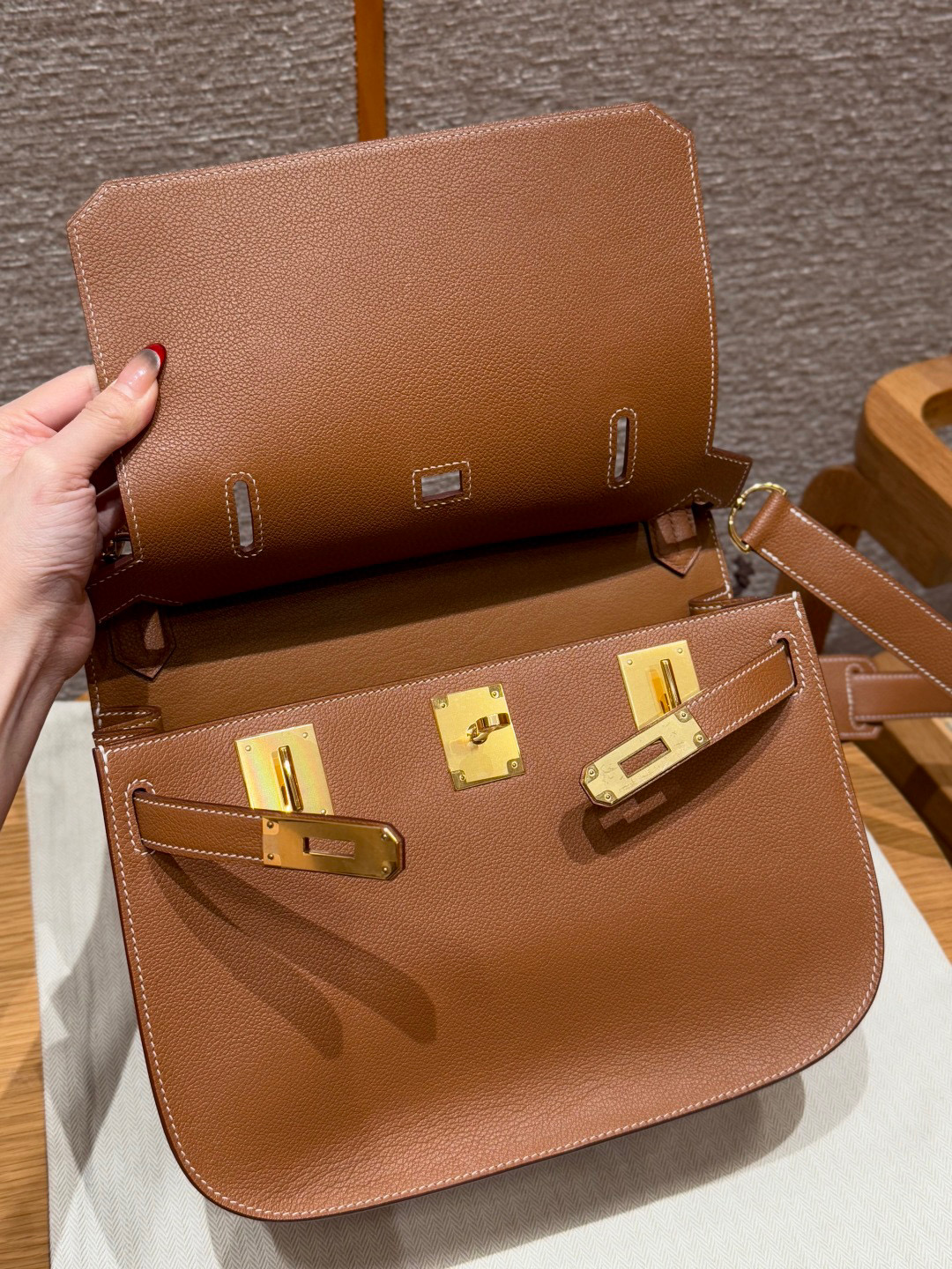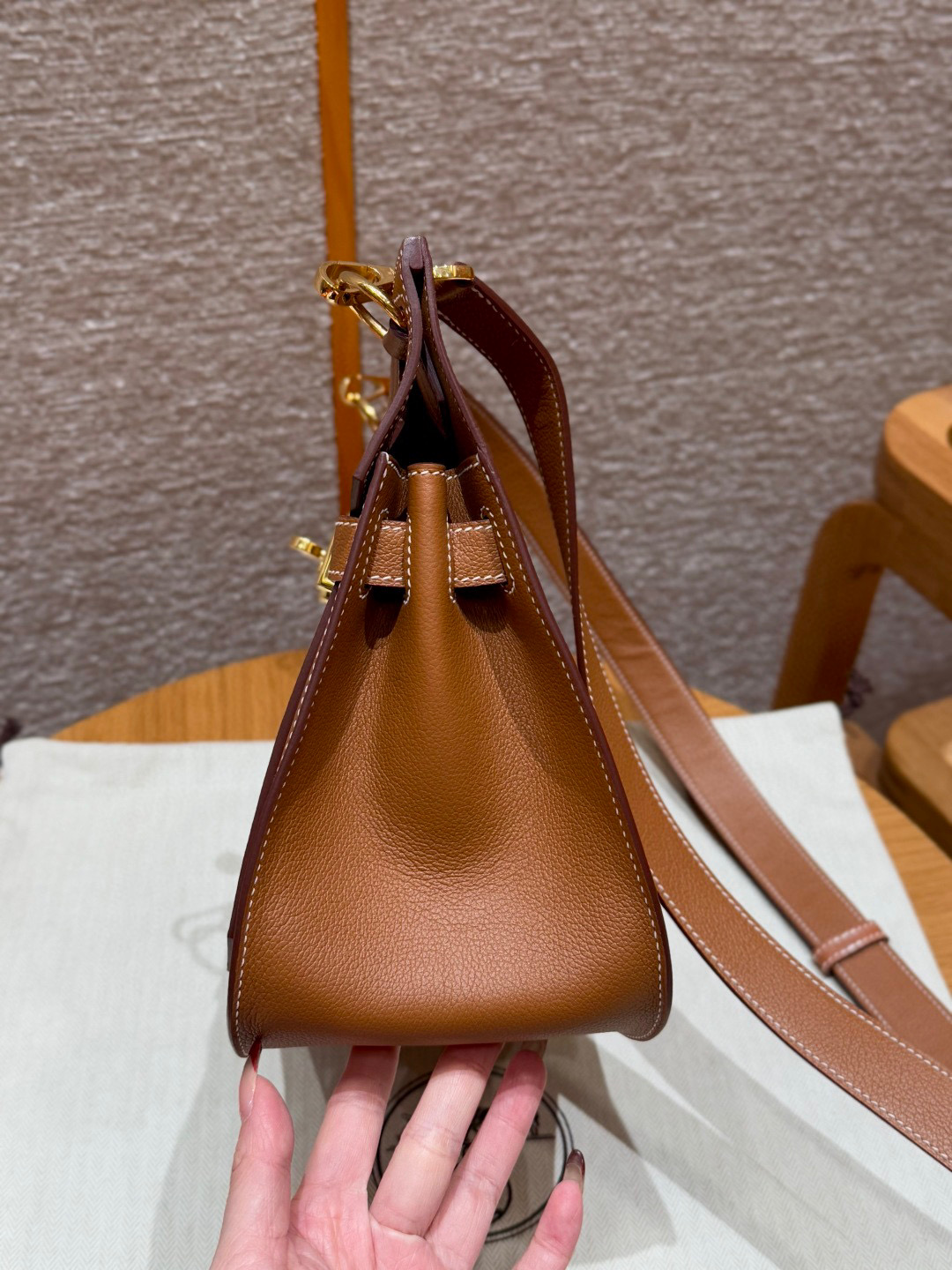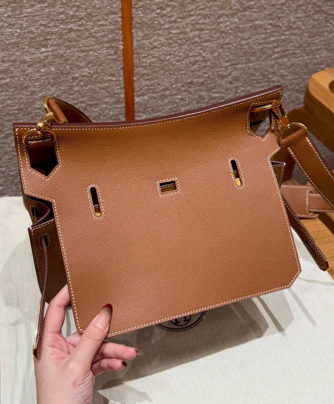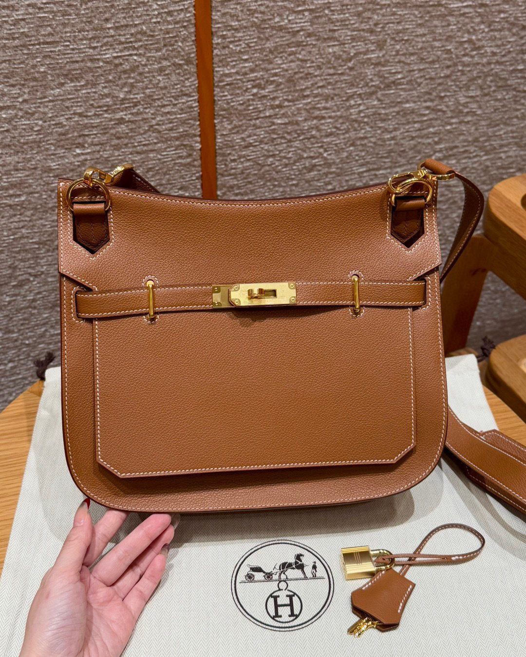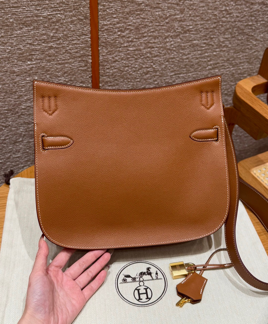 Includes dust bag, ribbon, care booklet, and box