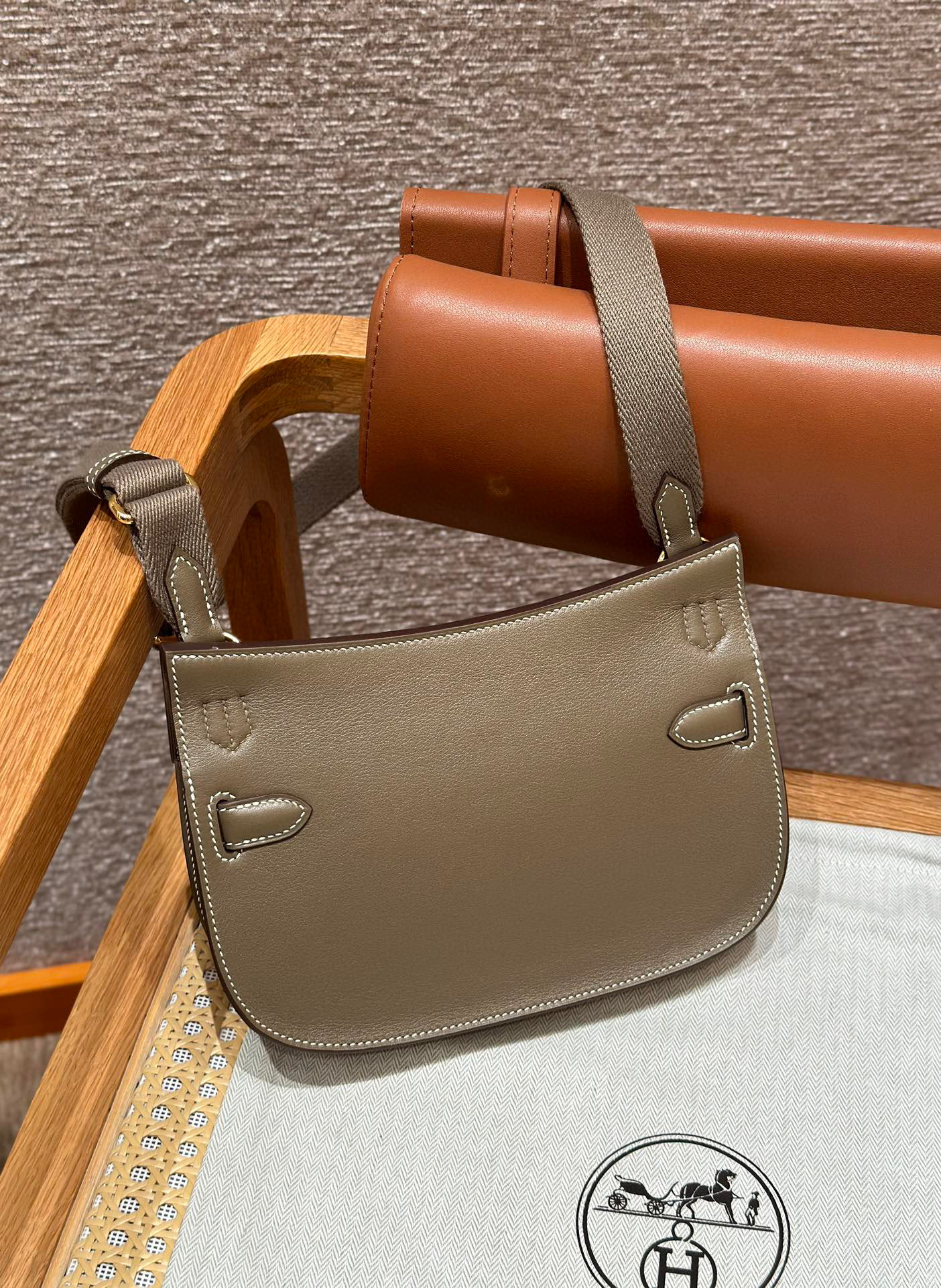 Includes dust bag, ribbon, care booklet, and box