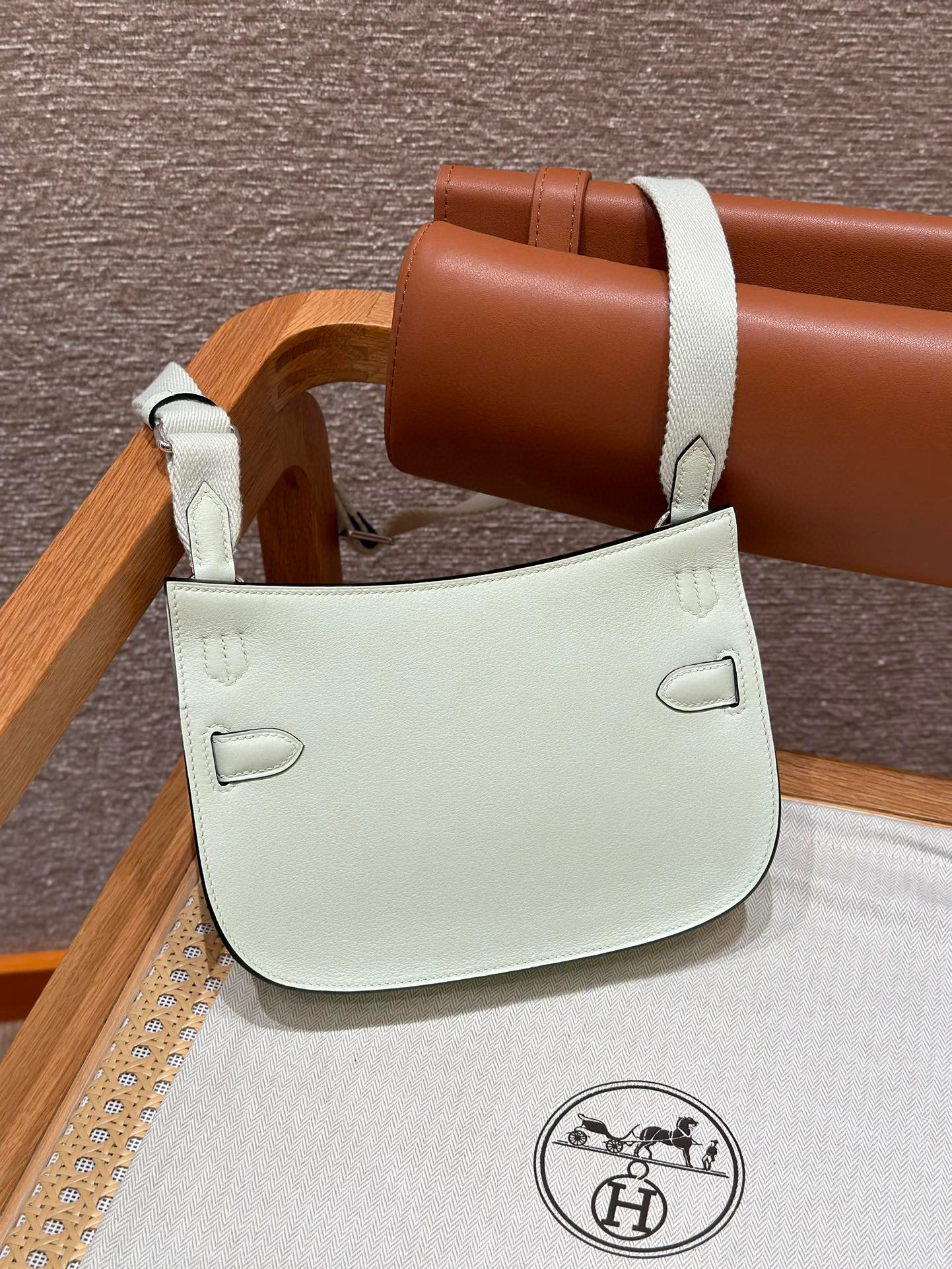 Includes dust bag, ribbon, care booklet, and box