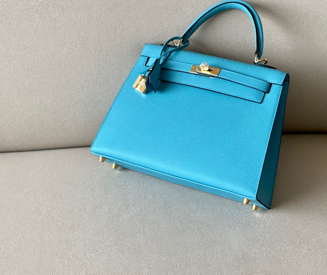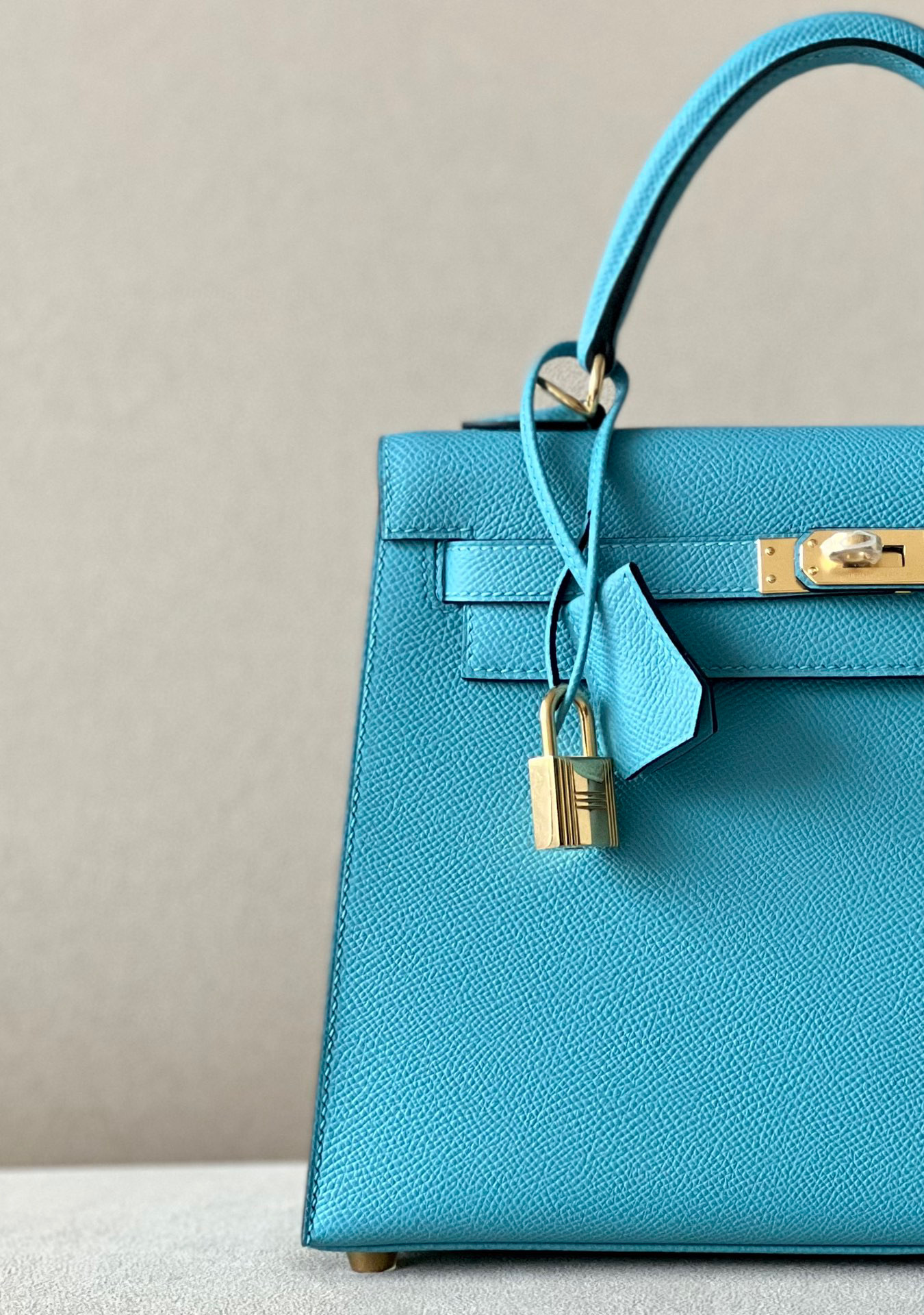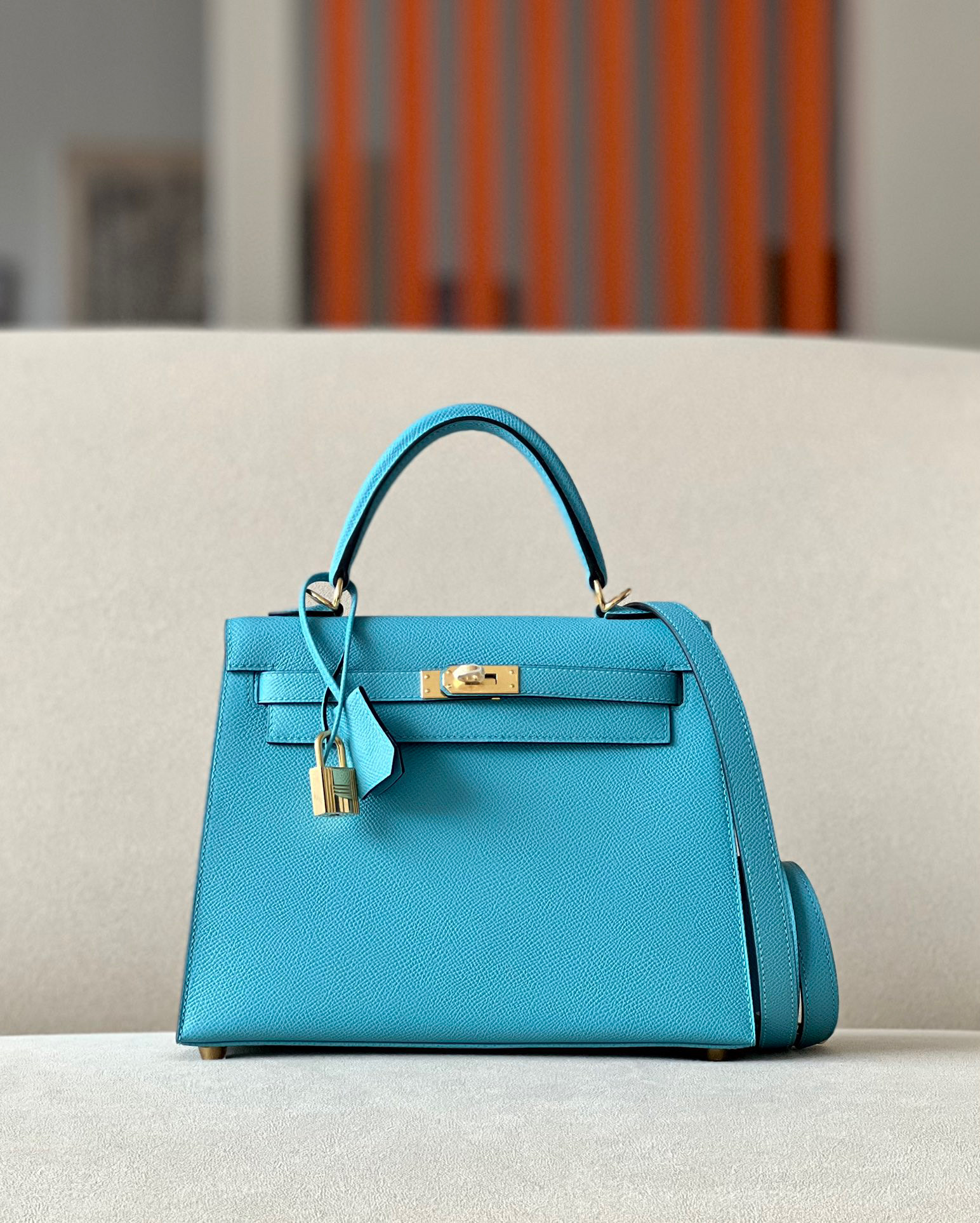 Kelly 25 Epsom Celeste (7N) Gold Hardware