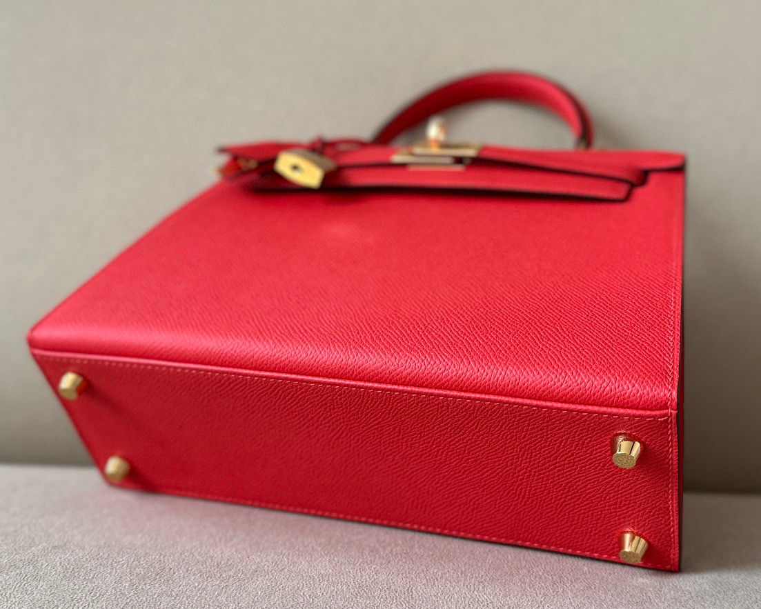 Includes lock, two keys, clochette, clochette dust bag, ribbon, care booklet, raincoat, felt protector, dust bag, and box