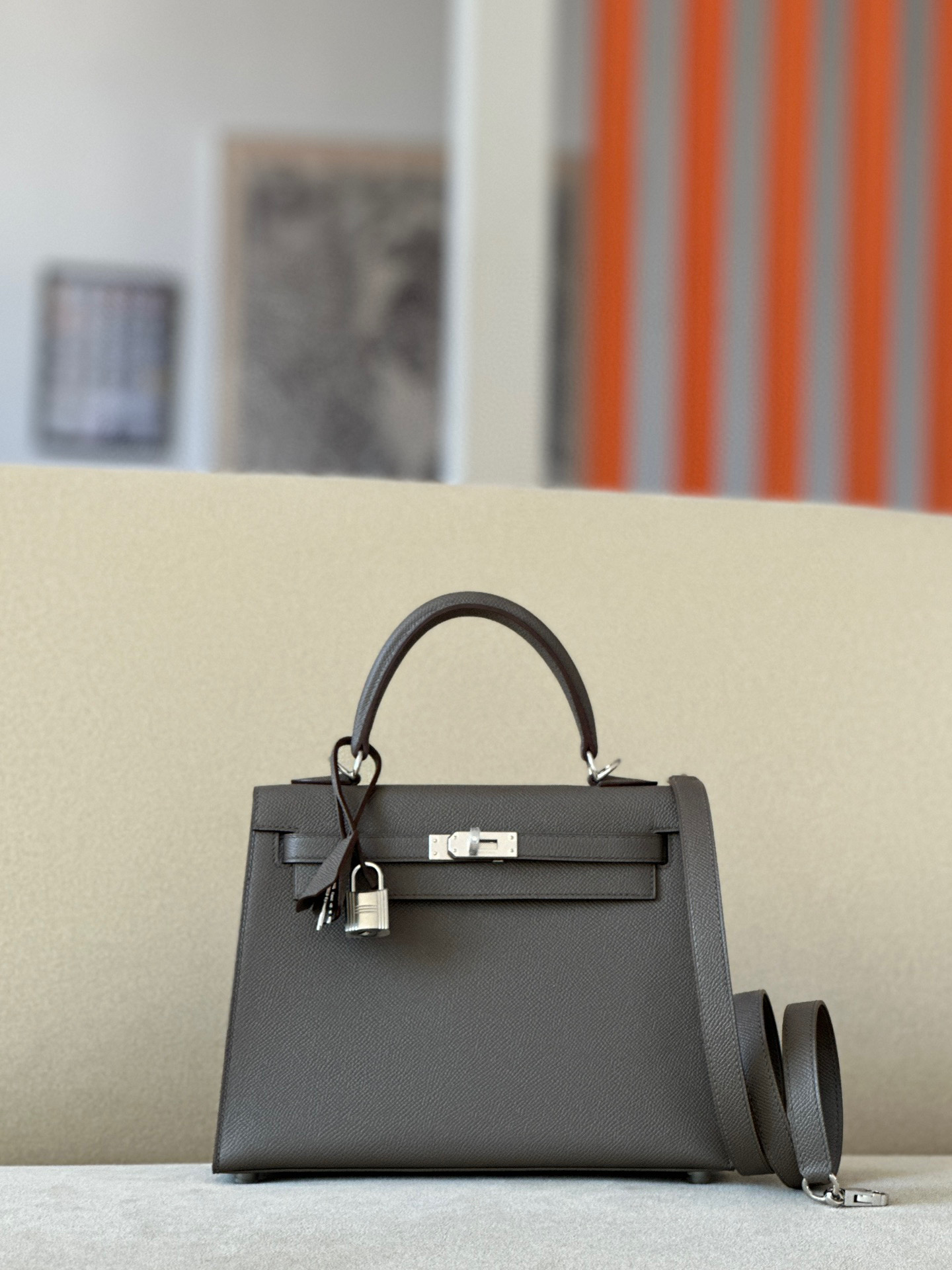 Kelly 25 Epsom Etain (8F) Gold Hardware