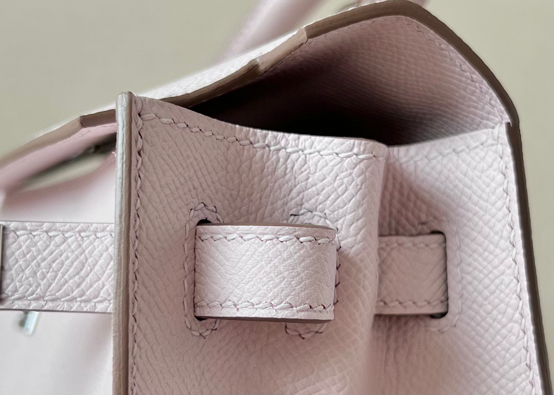 Includes lock, two keys, clochette, clochette dust bag, ribbon, care booklet, raincoat, felt protector, dust bag, and box