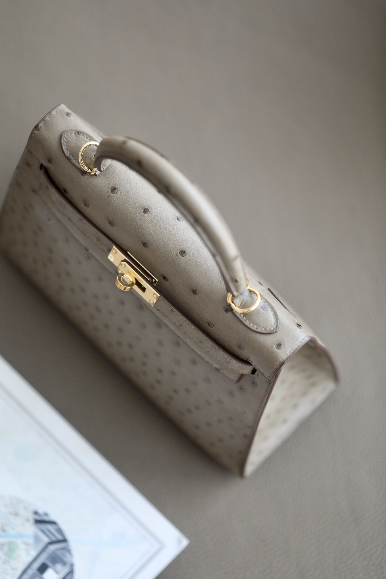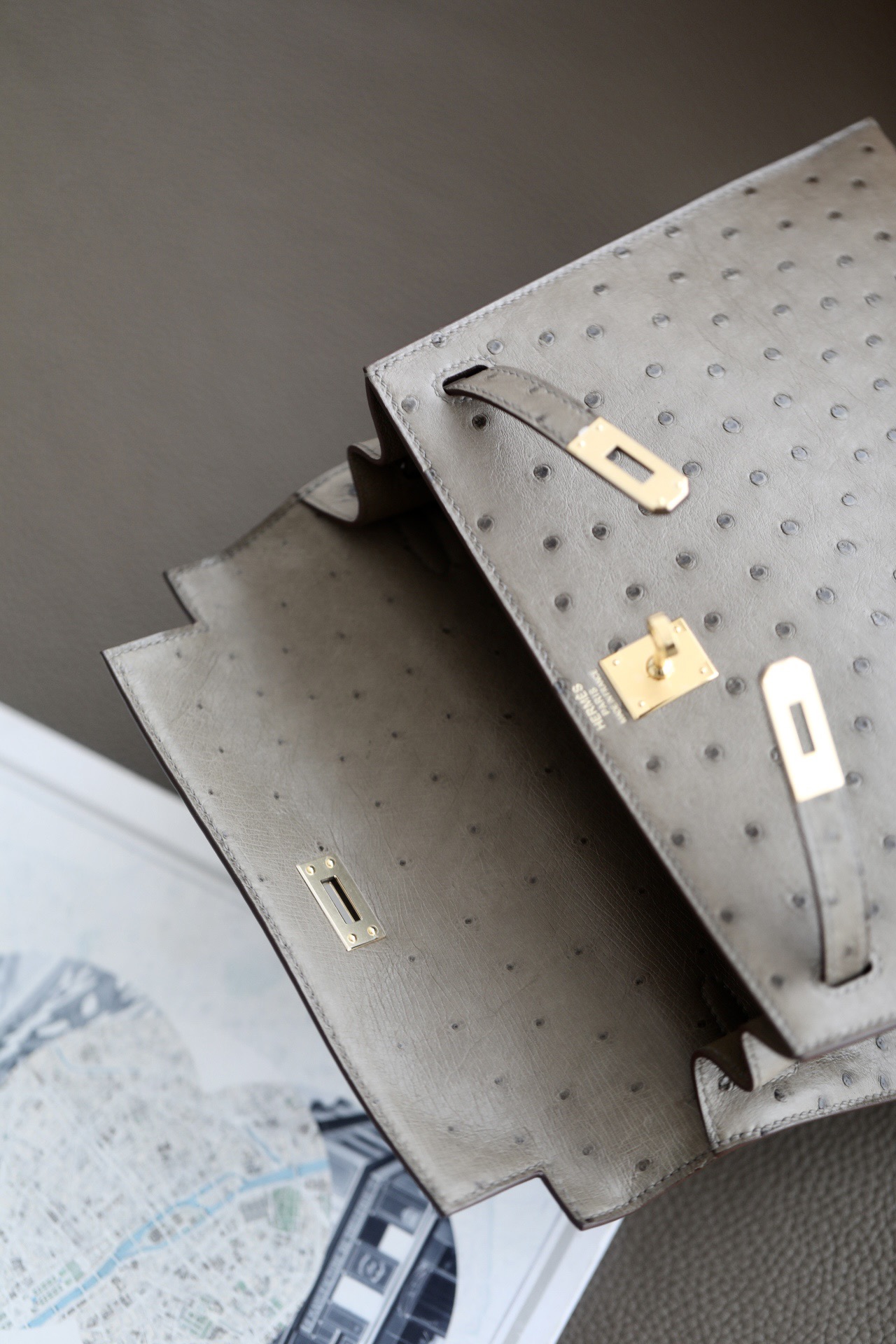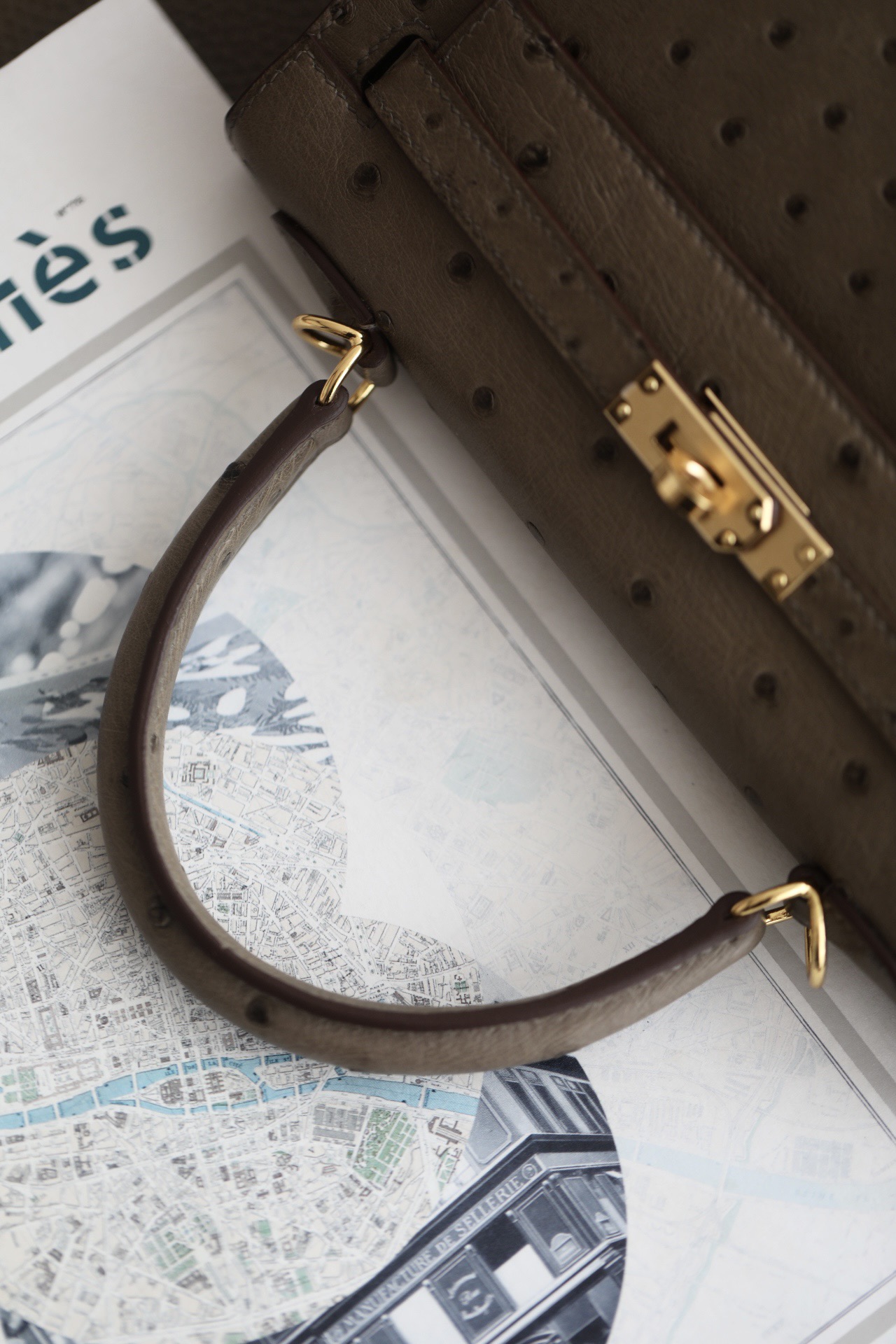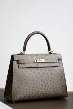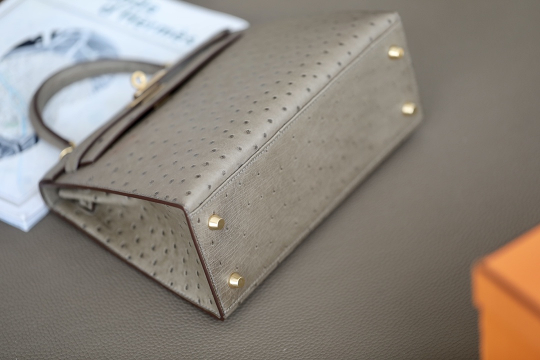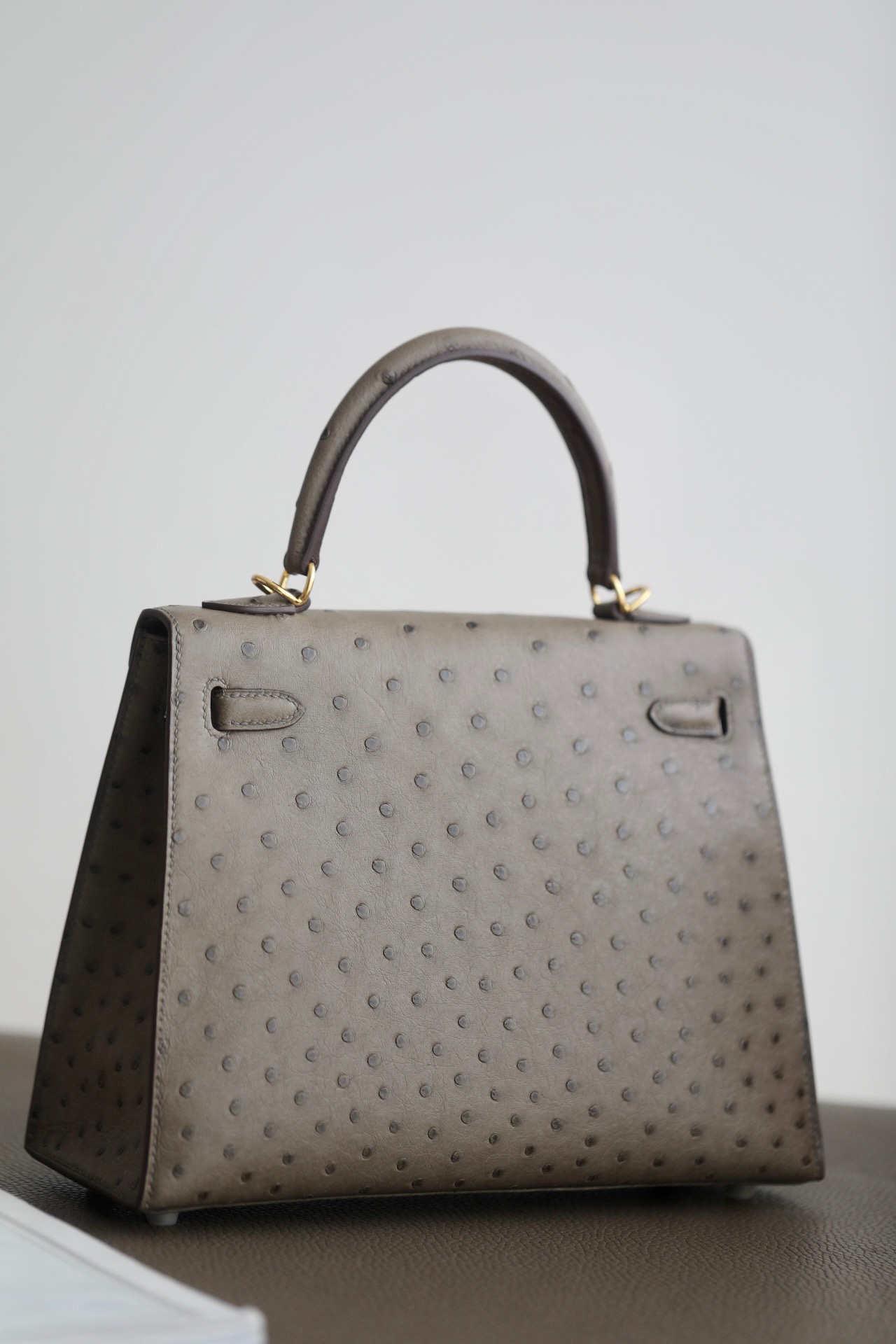 Kelly 25 Ostrich Etoupe(18) Gold Hardware