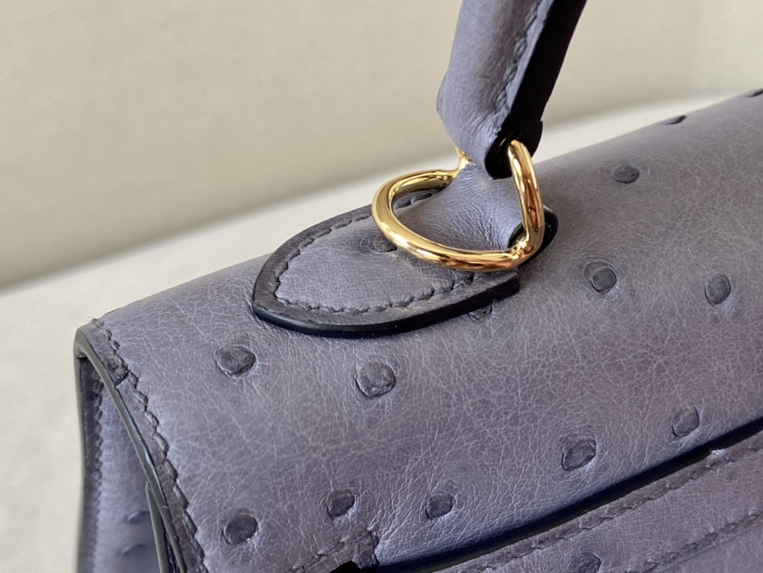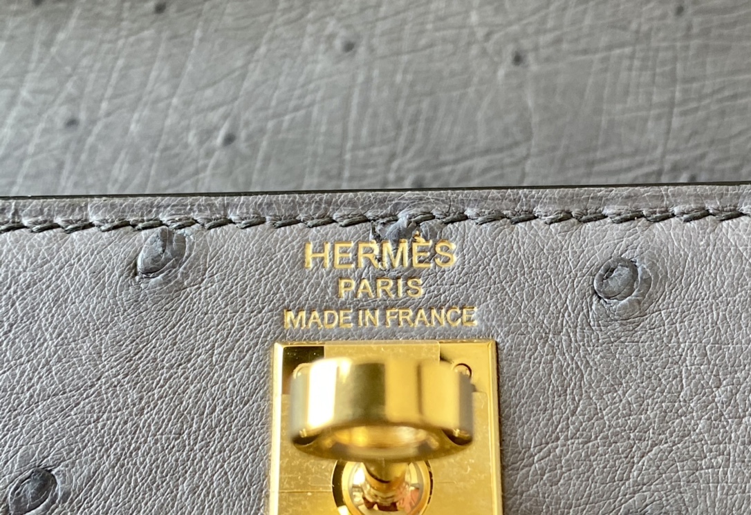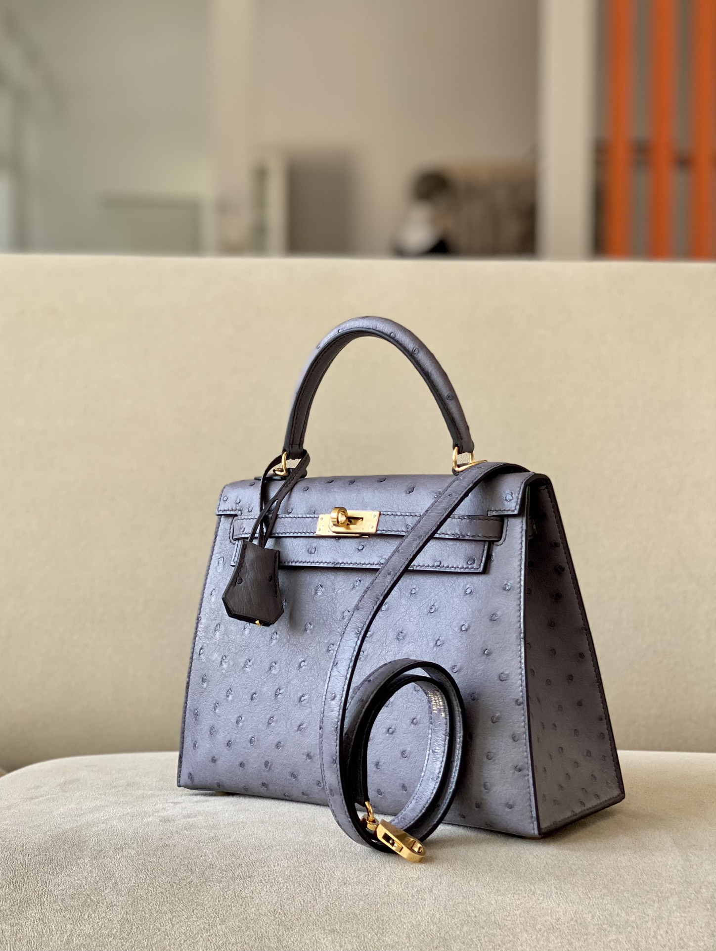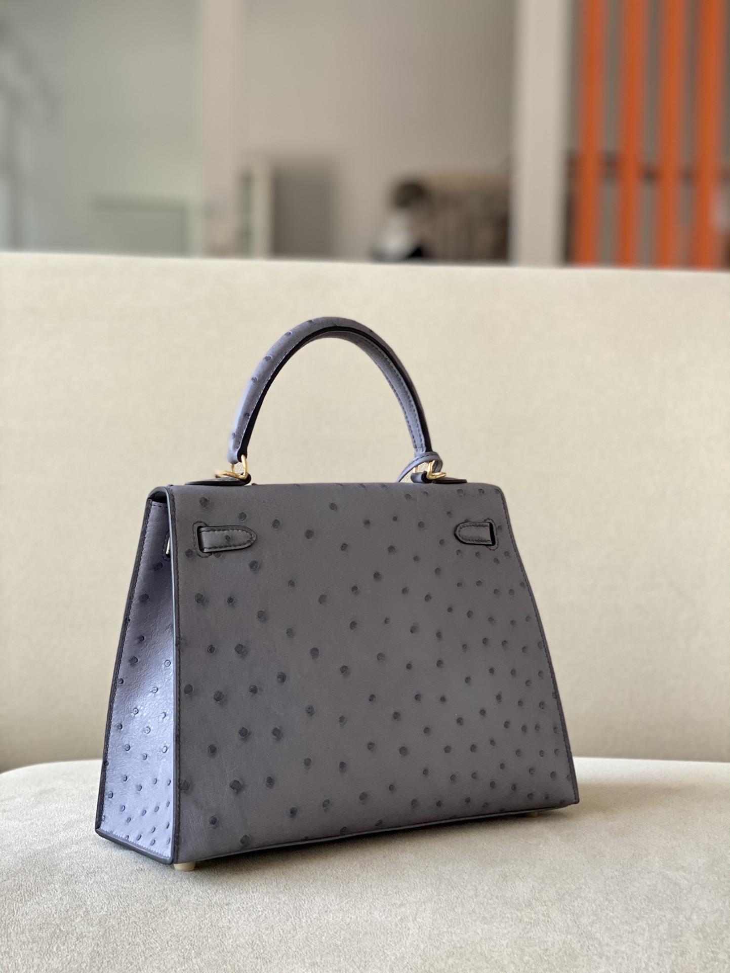 Kelly 25 Ostrich Gris Agate (82) Gold Hardware