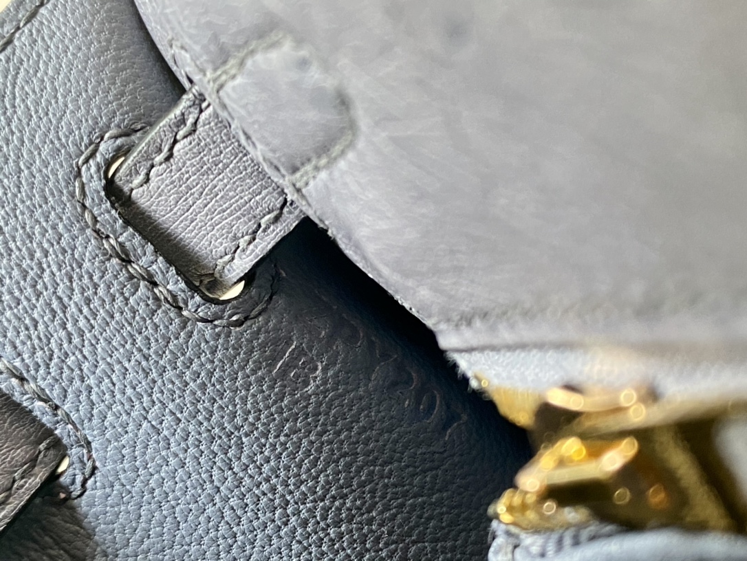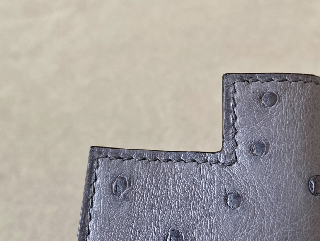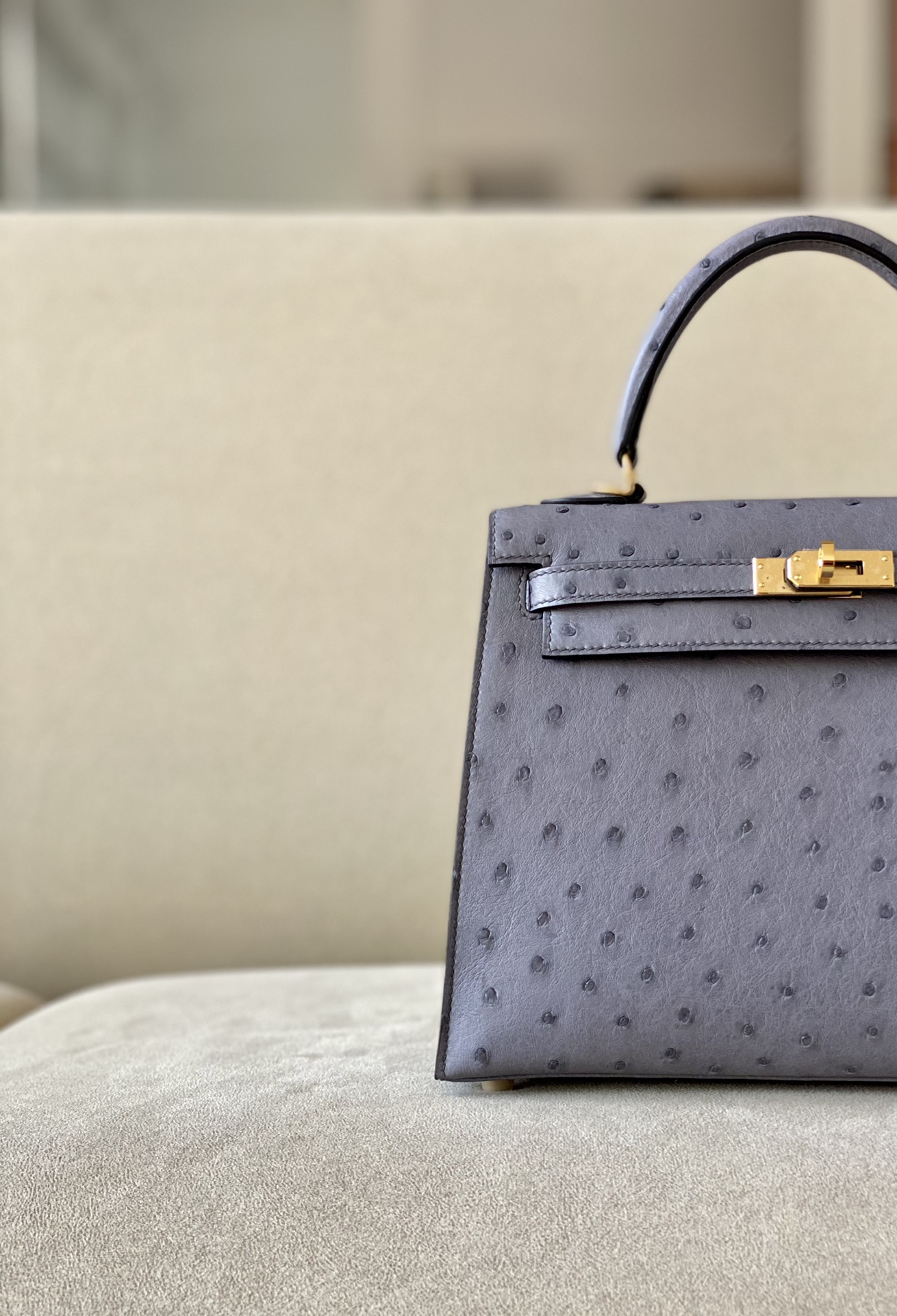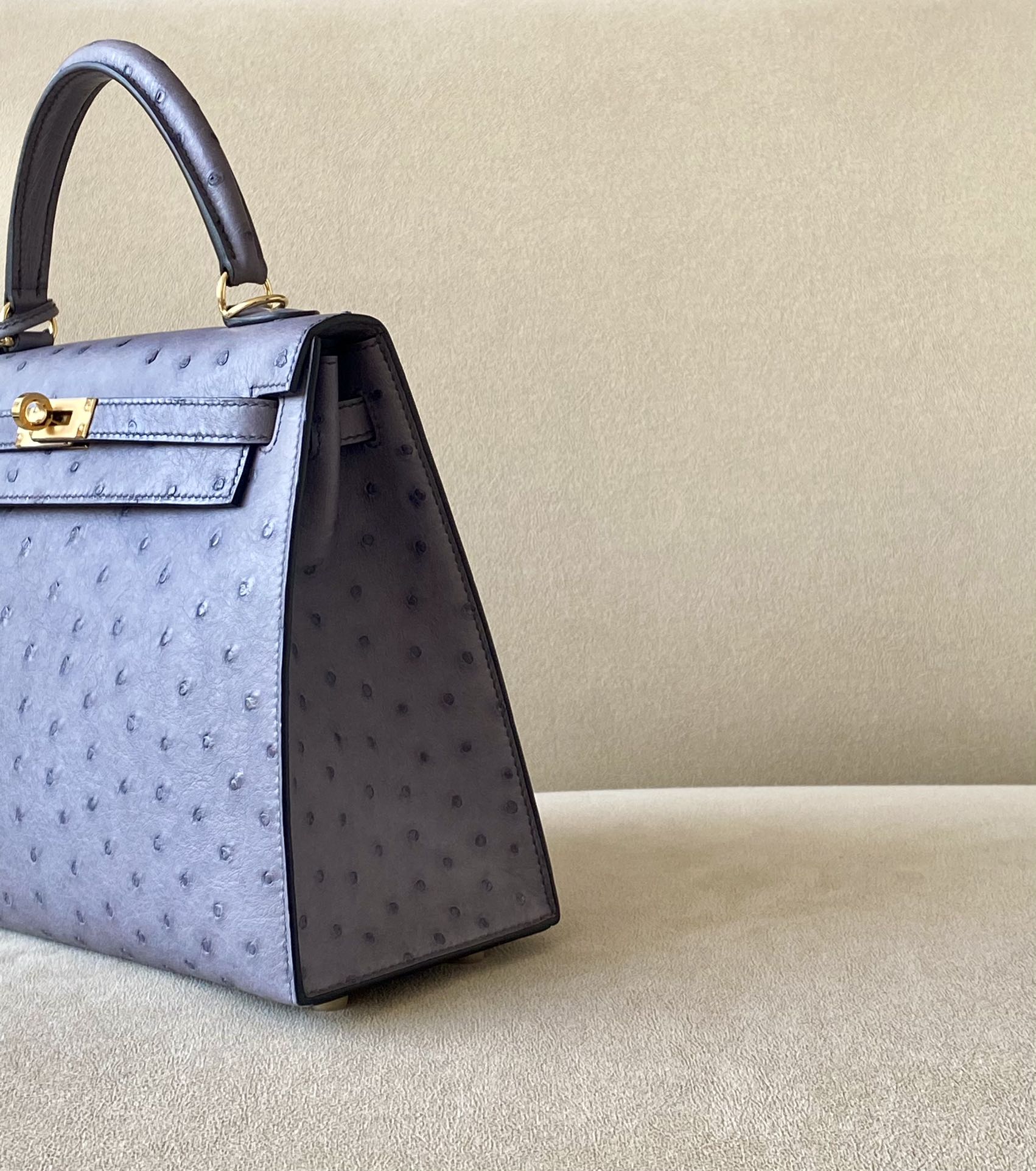 Kelly 25 Ostrich Gris Agate (82) Gold Hardware