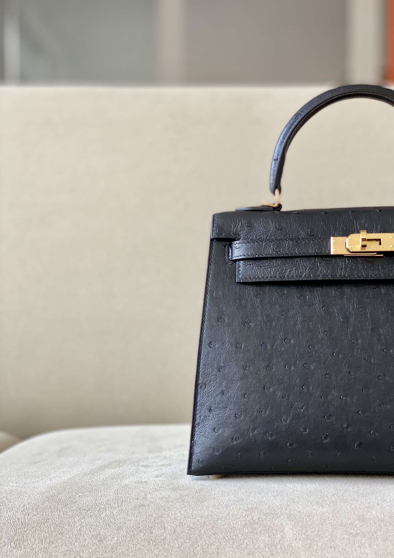 Kelly 25 Ostrich Nior(89) Gold Hardware