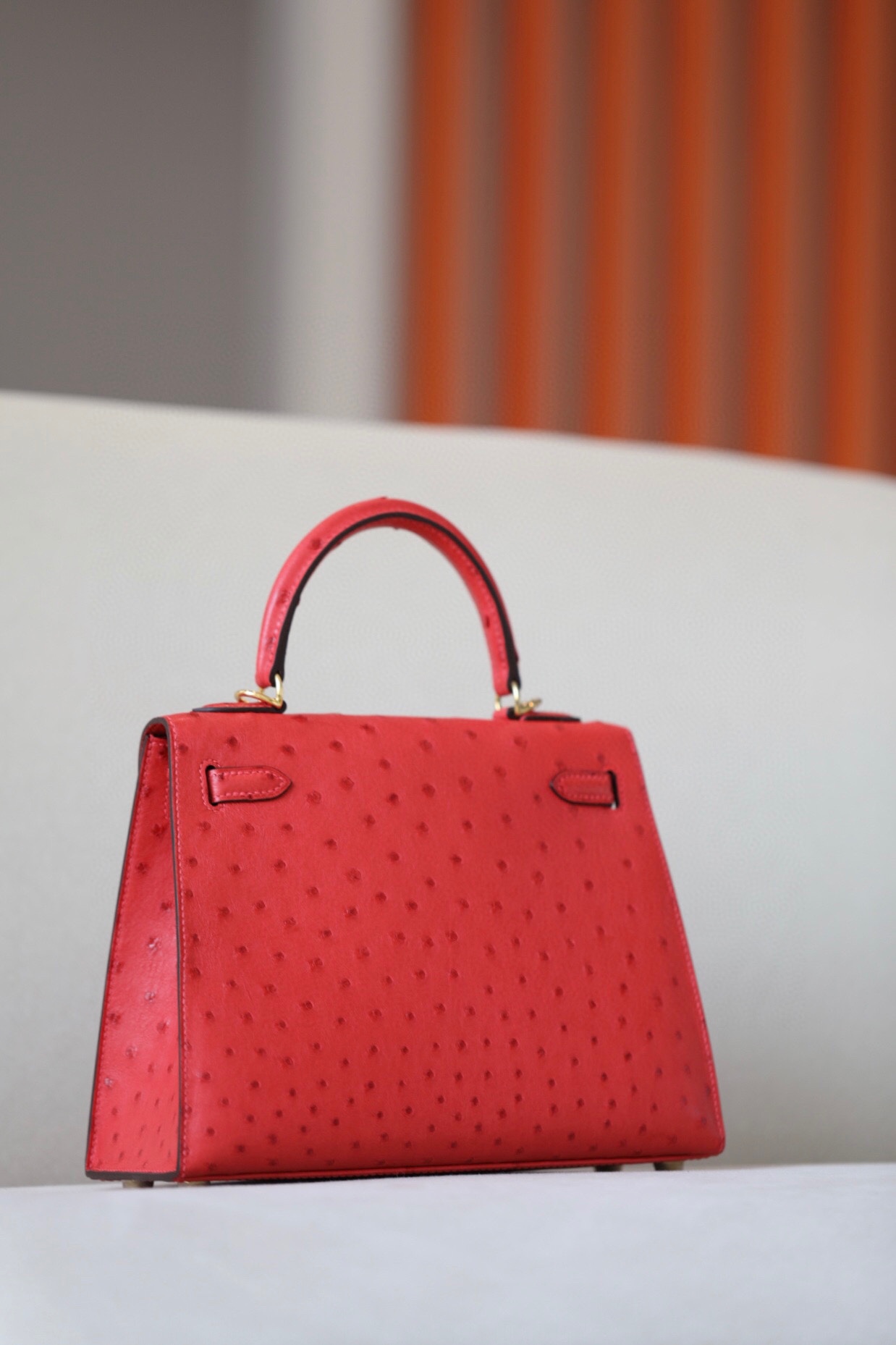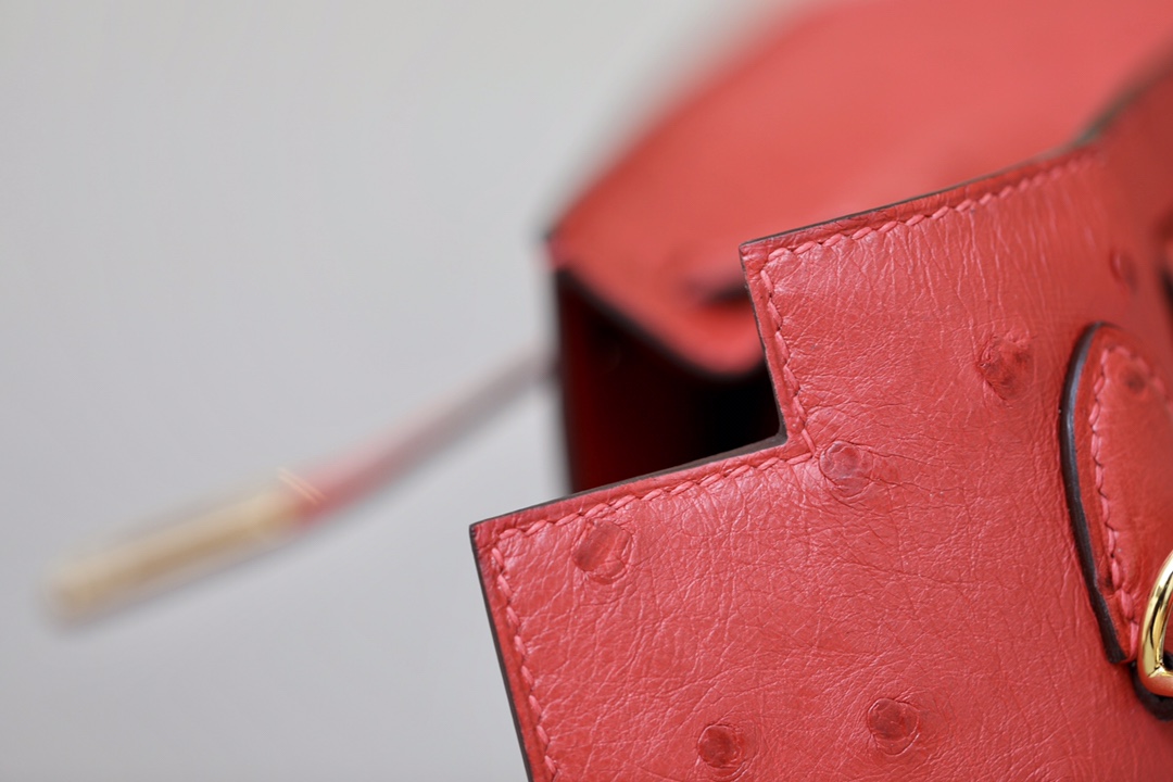 Kelly 25 Ostrich Rouge Tomate(S5) Gold Hardware